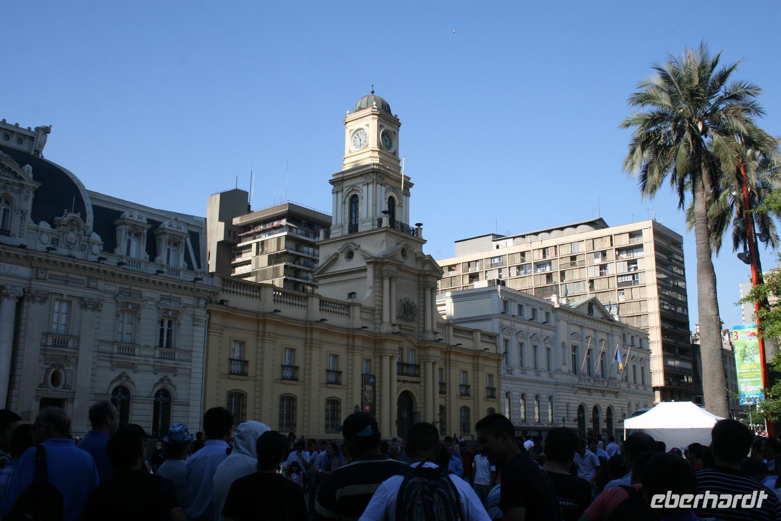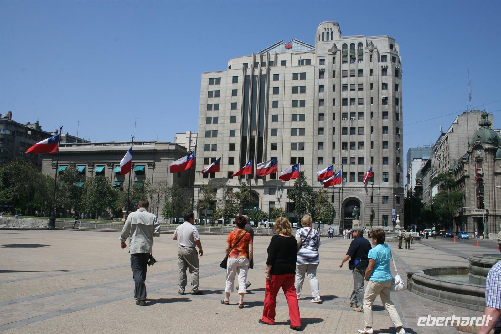 Nach einem schnellen Frühstück fuhren wir mit Vera zum Flughafen. Dort erwartete uns eine lange Schlange am Schalter unserer Fluggesellschaft LAN. Das System war ausgefallen - und ließ sich auch in kurzer Zeit nicht reparieren, sodass der Check-In und das Boarding manuell erfolgten - in so einer Situation merkt man wieder einmal, was die Technik alles erleichtert. Wir kamen an die Reihe und „nur“ eine Stunde später startete unser Flieger Richtung Neuseeland. Dort hatten wir leider nur einen kurzen Stopp, aber schon das satte Grün beim Anflug auf die Inseln war den Flug wert. In Neuseeland erfolgte noch einmal eine Kontrolle und wir stiegen wieder ein, um den Pazifischen Ozean zu überqueren und unser nächstes Ziel, Chile zu erreichen. Dabei überquerten wir die magische Datumsgrenze und erlebten den 11. November sozusagen zwei Mal. Etwas geschafft kamen wir schon in Chile an und waren auch nicht gerade glücklich über den kleinen Bus, der uns ins Hotel im Zentrum von Santiago brachte. Im Hotel gab es dann die nächste Hürde - es gab Probleme mit der Reservierung unserer Zimmer. Nach einigen Telefonaten konnte dann endlich alles geklärt werden und ich konnte die Zimmerkarten verteilen. Als Entschuldigung gab es am Abend die Getränke kostenfrei. Nach einer kurzen Pause zum Frischmachen eroberten wir die Stadt. Die vielen Bettler und generell die vielen Menschen machten uns nach dem langen Flug und dem Schlafentzug ein wenig zu schaffen und so legten wir nur einen kleinen Stopp in der Kirche San Francisco und in der Kathedrale, der größten Kirche Chiles, am Plaza de Armas ein. Danach suchten wir uns ein nettes Lokal und genossen spanische Küche. Heute freut sich jeder ganz besonders auf sein Bett. Manche hörten aus ihren Zimmern Stimmen der Demonstrationen, denn in Chile streiken seit 6 Monaten die staatlichen Universitäten für bessere Bedingungen.