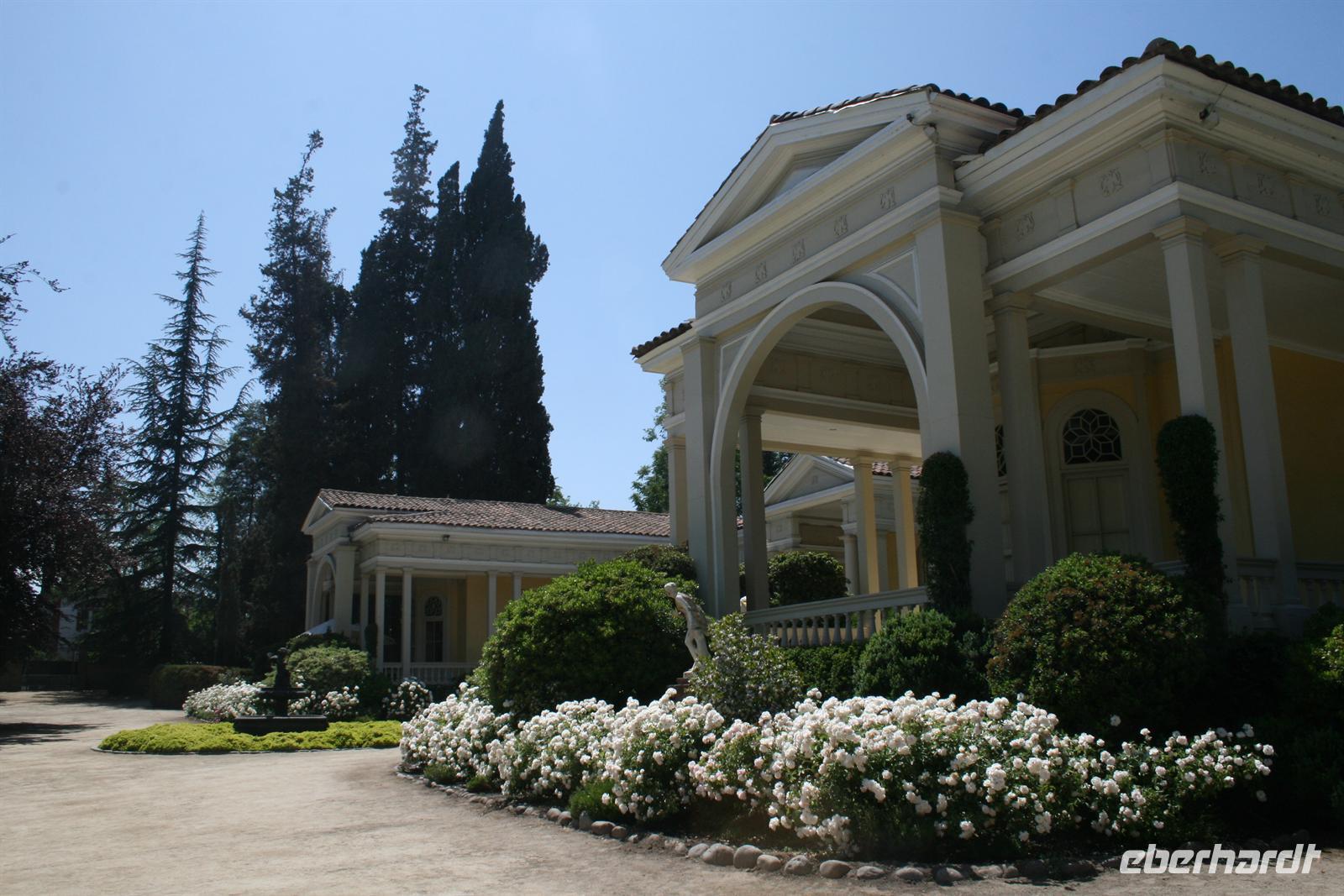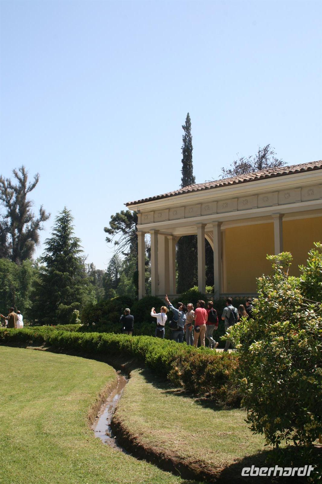 Heute Morgen sah die Welt, schon wieder anders aus, denn alle hatten eine erholsame Nacht hinter sich. Zuerst fuhren wir Richtung Süden in den kleinen Ort Pirque, wo sich das riesige Weingut Concha y Toro befindet. Die Probe hatten wir schon gemütlicher erlebt, aber die Führung in dem Landgut war sehr interessant und der von einem berühmten Landschaftsgärtner gestaltete Park absolut sehenswert. Und das Mittagessen im Anschluss ganz in der Nähe im Tesoros de Chile war ein Genuss. Im
