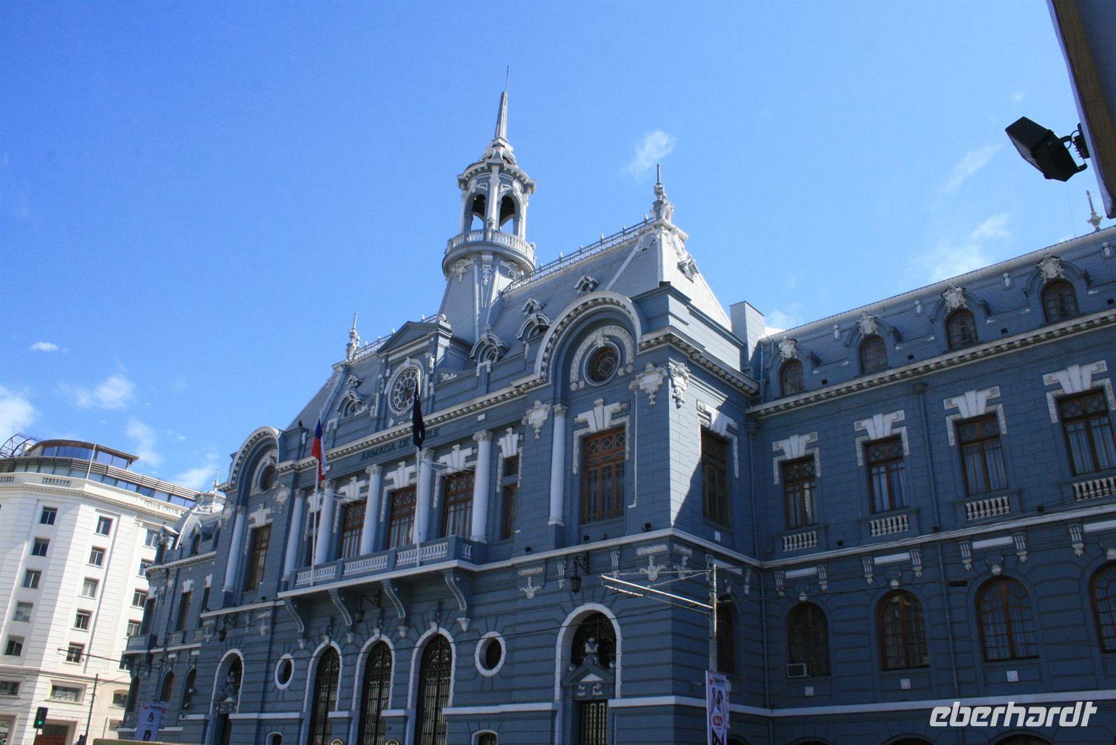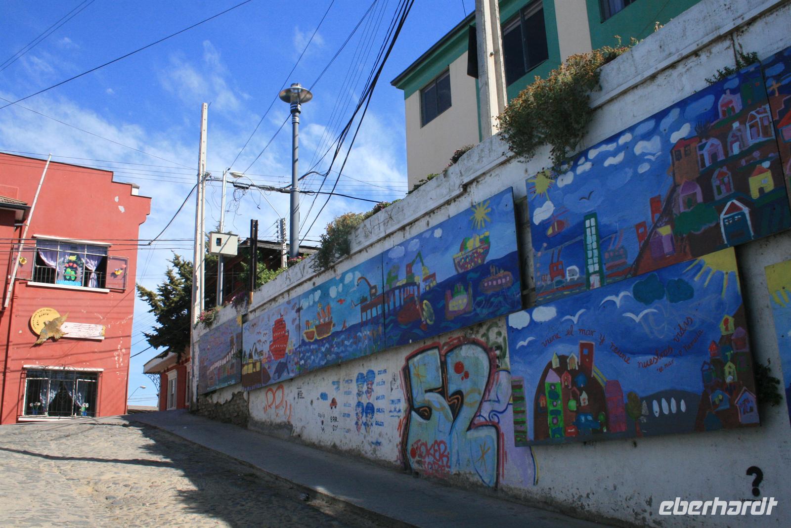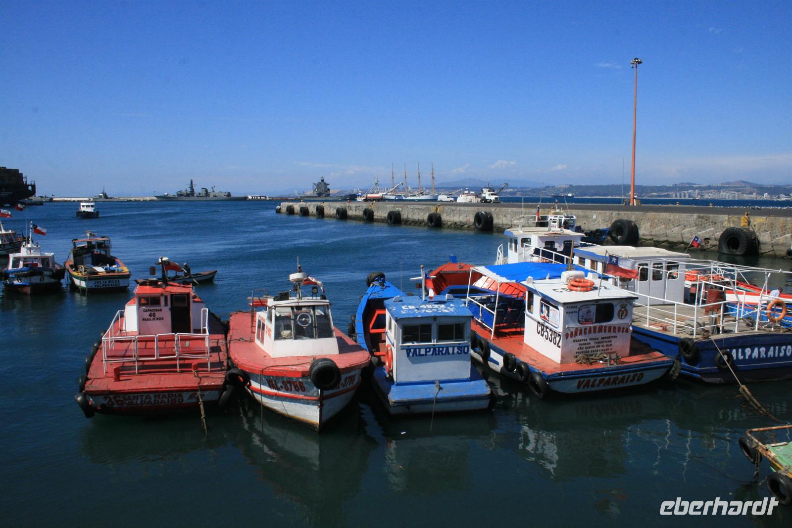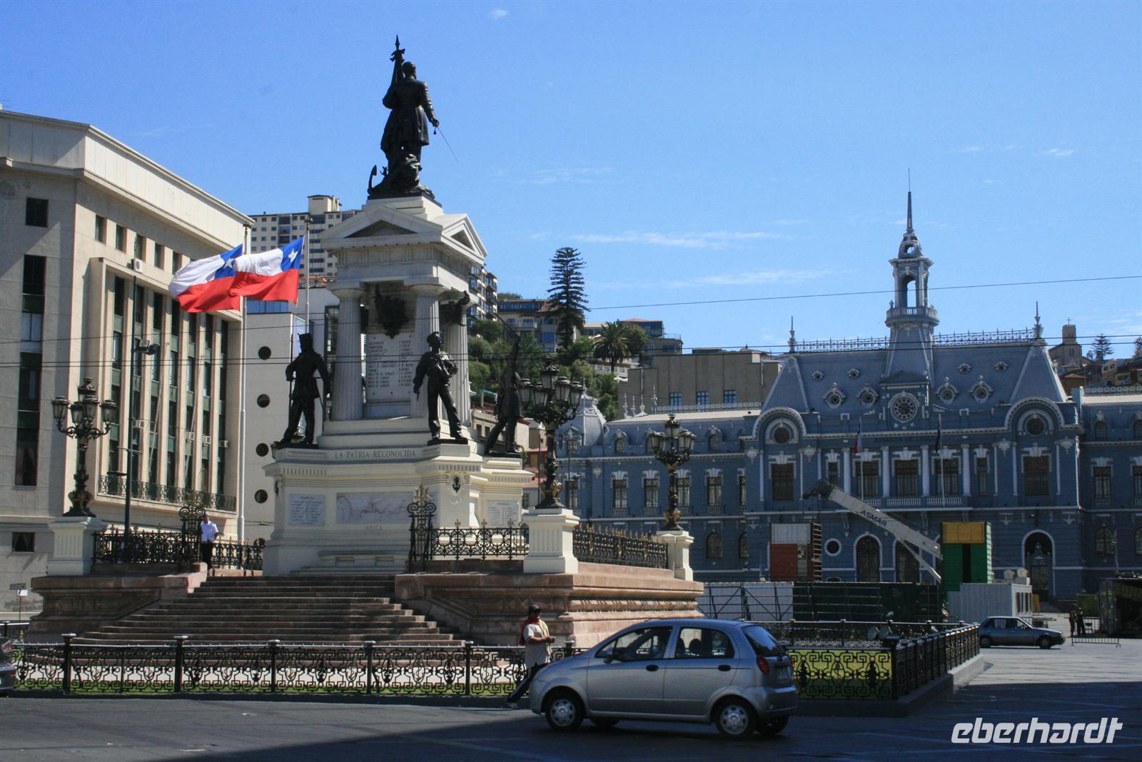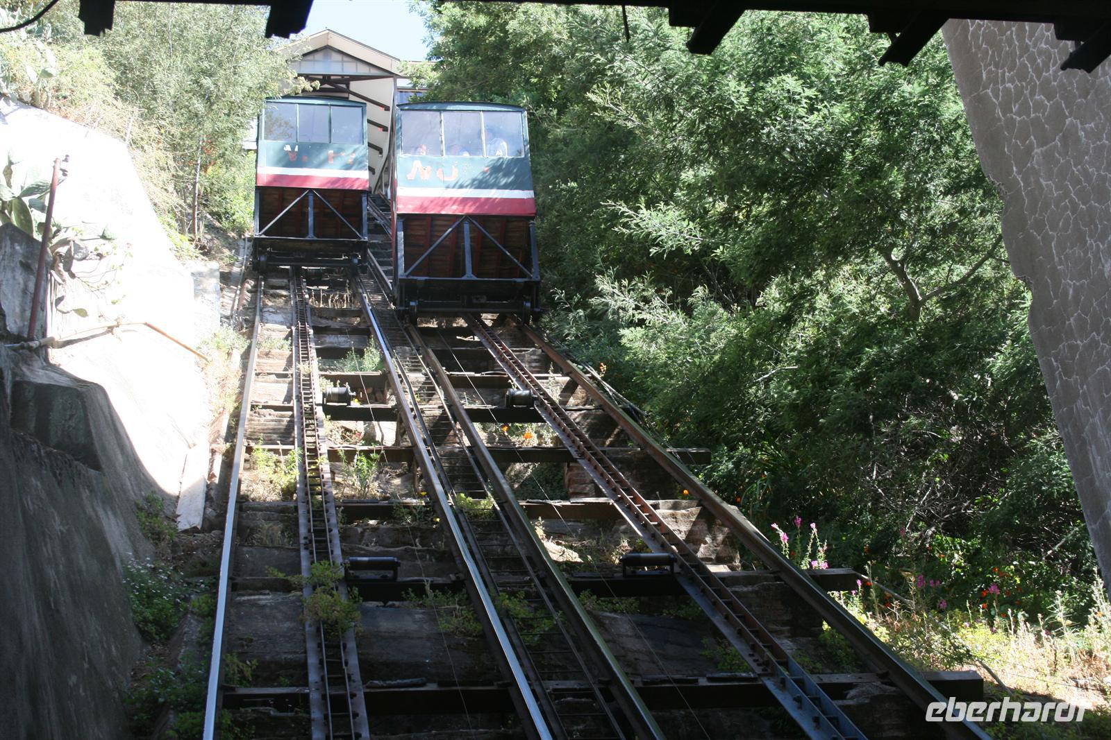 Und man kann sehr gut nachvollziehen, wie dieser herrliche Blick über den Garten zum Meer hinaus sein Schreiben beeinflusst hat. Nach diesem Besuch fuhren wir in ca. einer Stunde nach Valparaiso, um unser Mittagessen zu genießen. Wobei Genuss sicher der falsche Ausdruck ist, das Buffet war reichhaltig, aber die Geräuschkulisse sehr hoch und die Stimmung nicht gediegen. Ich hoffe, dass der Wein, der in Chile sehr lecker ist, ein wenig zu positiver Stimmung beigetragen hat. Danach legten wir einen Stopp am Hafen von Valparaiso ein und spazierten zur ältesten Standseilbahn der Welt, die noch manuell betrieben wird. Wenn die Fahrt auch nur sehr kurz ist, ist sie umso beeindruckender und der Blick über Valparaiso ist schön. Wir fuhren nach Vina del Mar, zu dem es quasi keine Grenze gibt, denn die 2 Städte verschmelzen miteinander. Wir sahen aus dem Bus die hübsche Blumenuhr sowie wichtige Bauwerke des Ortes. Einen Fotostopp legten wir an der einzigen Statue der Osterinsel auf dem Festland ein. Das gegenüberliegende Geschäft mit Schmuck aus Kupfer und Lapislazuli konnte auch einige unserer Gäste begeistern. Der abschließende kurze Spaziergang im Park Quinta Vergara zeigte uns noch einmal die schöne grüne Seite der Küstenstädte. Der heutige Tag war lang, und da auch das Abendessen recht spät war, trafen wir uns nicht zum Essen, sondern einem kleinen Umtrunk mit chilenischem Wein in der Bar - lecker lecker .