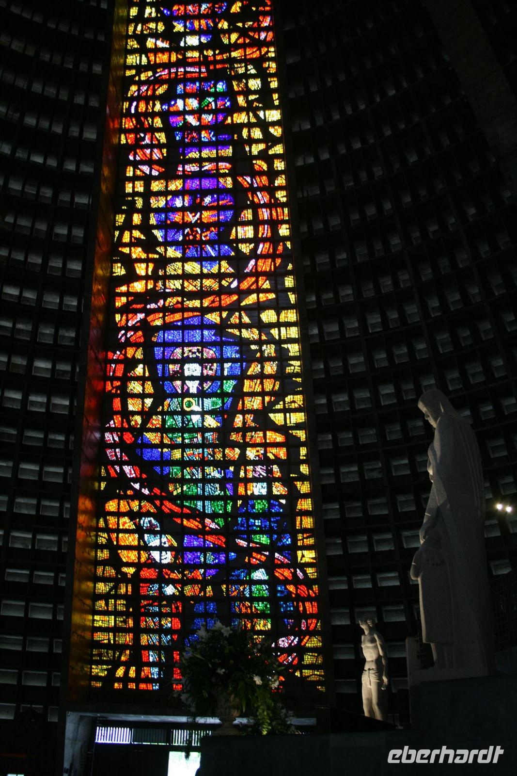 Wir begannen den Tag mit einem Rundgang durch die Altstadt Rios, besuchten den Sambra-Drome, bei dem vor allem ein bestimmtes T-Shirt für Aufregung sorgte und hielten kurz am Macarana-Stadion, dass allerdings aufgrund von Renovierungsarbeiten derzeit nicht von innen besichtigt werden kann. Nach einem Stopp im Hotel, um das Gepäck in einem Zimmer unterzubringen und die anderen Zimmer auszuchecken, genossen wir unser Mittagessen heute in der Confeiteria Colombo, einem Café von 1894, in dem uns ein vorzügliches Buffet angeboten wurde. Das Ambiente vermittelte ebenfalls das Gefühl früherer Tage in Rio. Gut gestärkt sahen wir dann einige restaurierte Häuser der Altstadt und beendeten den Rundgang an der modernen Kathedrale San Sebastian. Wir holten unser Gepäck im Hotel ab und hatten erstaunlicherweise recht wenig Verkehr auf dem Weg zum Flughafen. Der Check-In dauerte dann allerdings wieder ein wenig, da man für die Einreise nach Amerika einige zusätzliche Fragen beantworten musste. Die Ausreise ging recht zügig und somit hatten wir reichlich Zeit im Sicherheitsbereich. Wir schauten uns einige Bilder der Reise an und vor allem der vorherige Abend bei der Samba-Show sorgte noch einmal für Entzückung. Auf dem Flug wurde noch ein spätes Abendessen serviert und wir versuchten alle, ein bisschen Schlaf zu bekommen. Der Service war der schlechteste, aber der Flug selbst war in Ordnung und nach knapp 9 Stunden kamen wir in Amerika an.