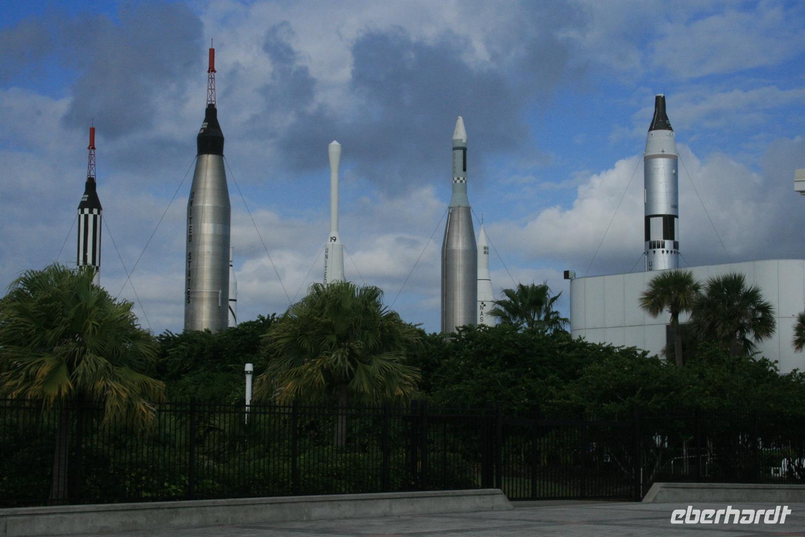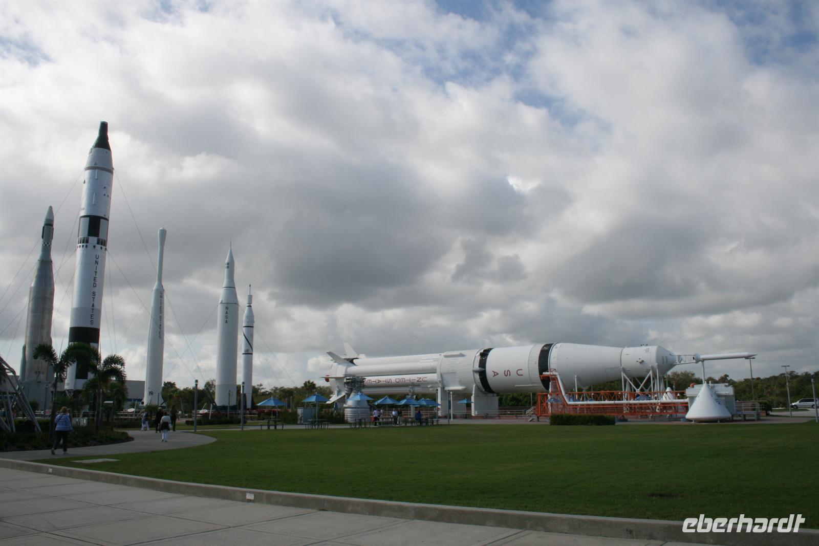 Zumindest wettertechnisch begann dieser Tag sehr vielversprechend und auch das gute Frühstück sorgte für gute Laune. Nur eine kurze Fahrt war es bis zum Weltraumbahnhof. Wir schauen uns zuerst im I-Max-Kino den 3D-Film „Hubble“ an, bei dem man neben tollen Erklärungen in Deutsch (Antonio hatte uns Audio-Geräte für eine deutsche Übersetzung des Films besorgt) auch faszinierende Einblicke in die Arbeit der Astronauten und unseren Weltraum erhält. Kurze Zeit später erwartete uns eine Überraschung: ein Mittagessen mit einem ehemaligen Astronauten. Bis es soweit war, spazierten wir noch ein wenig durch den Rocket-Garden, wo Modelle von ehemaligen Raketen ausgestellt sind.