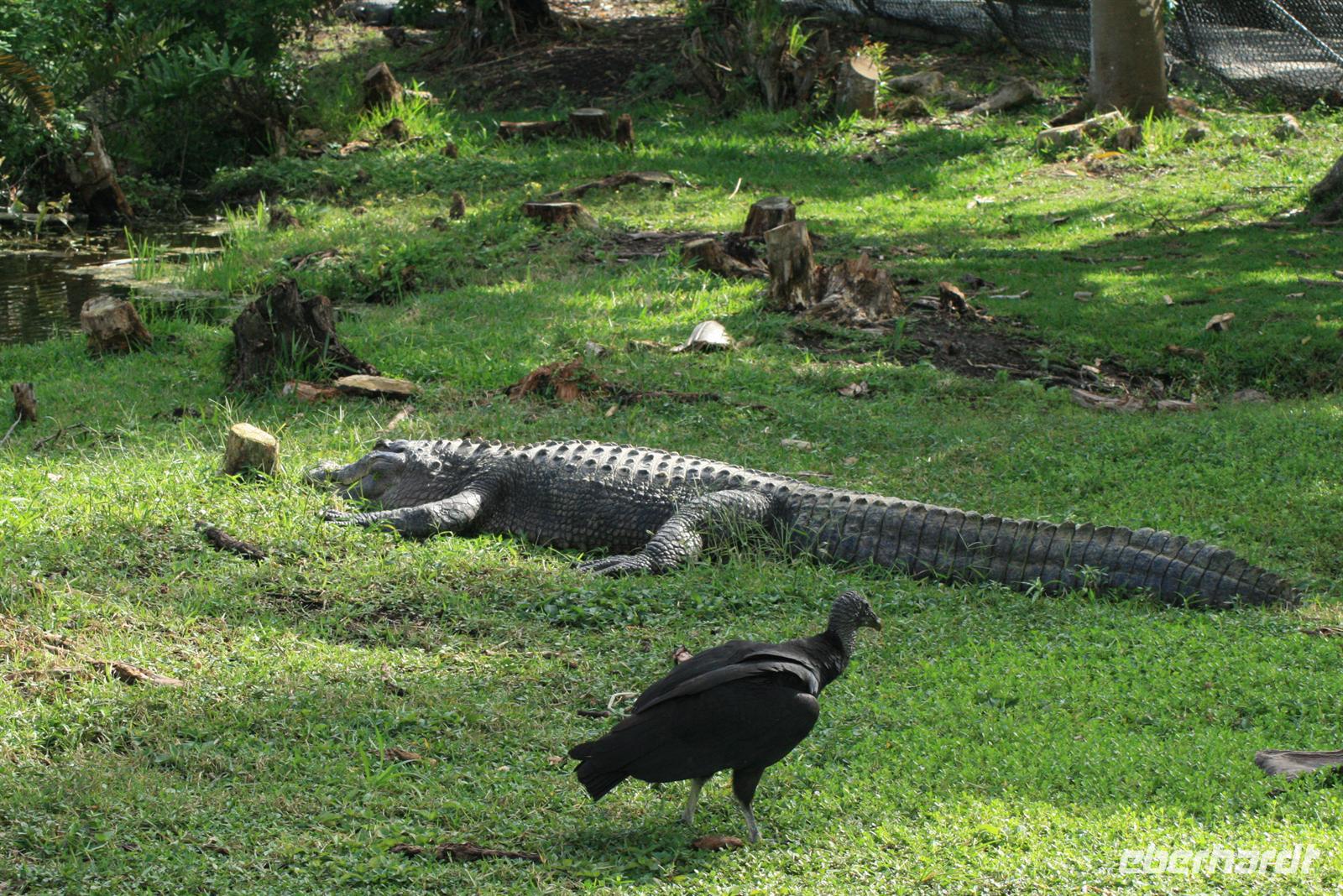 Zum Glück sind die Behörden der Bahamas sehr offen und so konnte ich mich auch noch in Nassau an diesen tollen Blumen erfreuen. Natürlich wurde der „Feiertag“ auch begossen - auf unserem Weg in die Everglades. In den Everglades hatten wir ein Propellerboot reserviert, das über das Sumpfgebiet schwebt und so Beobachtungen von Tieren wie Alligatoren, Krokodilen, Schildkröten und natürlich diversen Vögeln ermöglicht. Im Anschluss bekamen wir einige Erklärungen zu den Alligatoren und genossen noch einmal den Blick in die Everglades. Natürlich meldete sich auch heute noch einmal Petrus und schickte uns zu Beginn der Bootsfahrt einen kräftigen Regenschauer. Wir antworteten mit quietschgelben Regencapes und ließen uns unsere Laune nicht verderben. Ein Stopp am Miccosukee Indianerdorf erlaubte ein paar Einblicke in ihre Kultur. Leider kann man die Indianer in ihren richtigen Dörfern nicht besuchen.