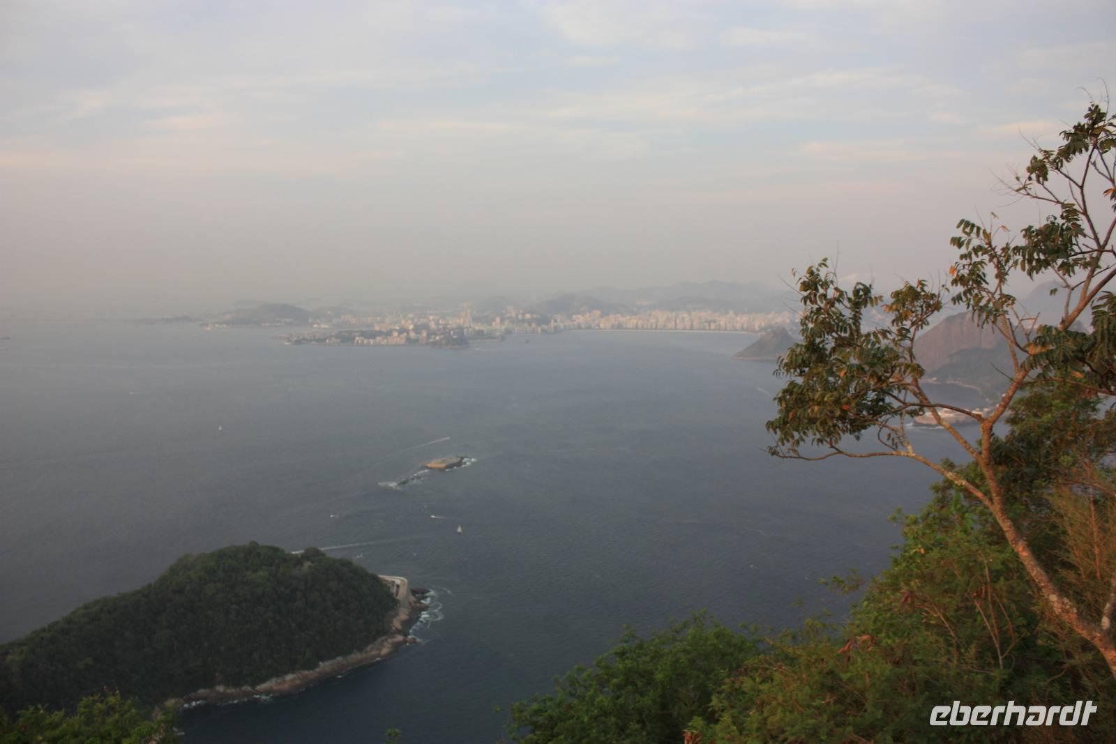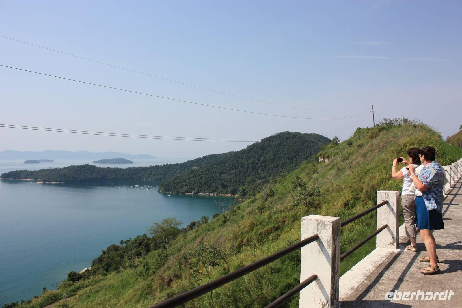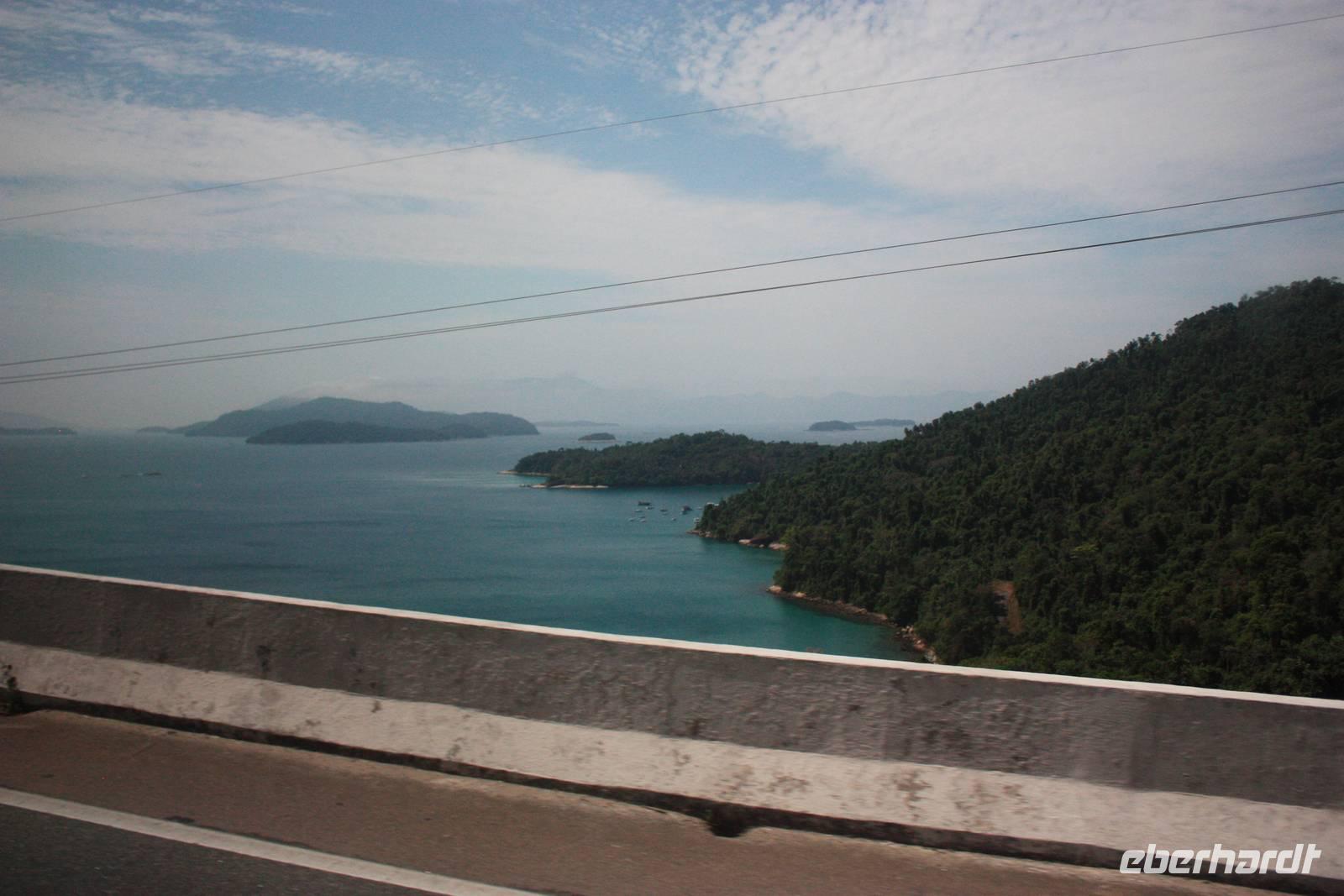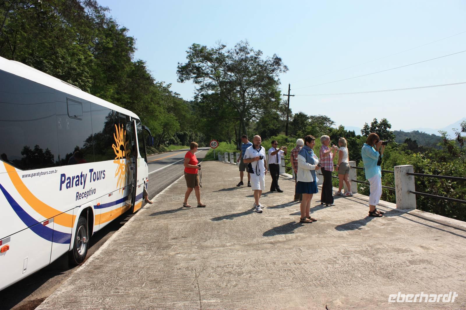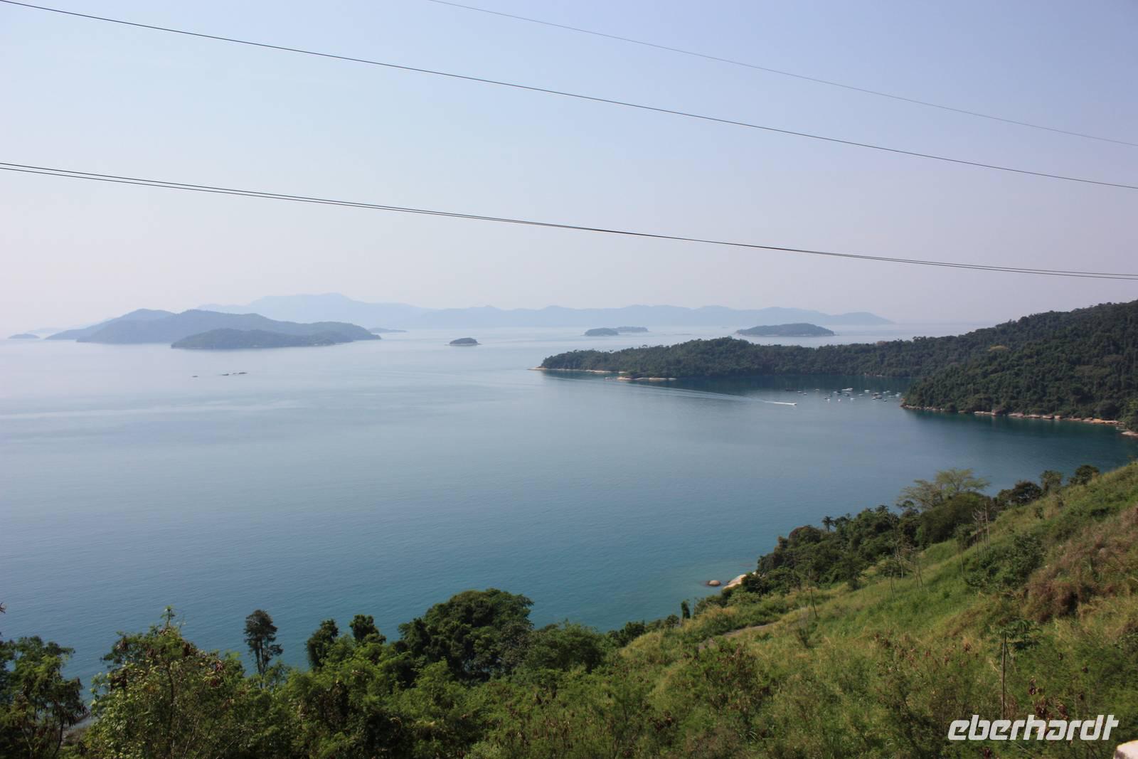 Nach dem Frühstück geht aus auch direkt los. Diesmal haben wir einen freundlichen Buschauffeur, der für uns, auf halber Strecke zwischen Paraty und Rio, eine kurze Fotopause mit herrlichem Blick auf eine der Buchten einlegt.