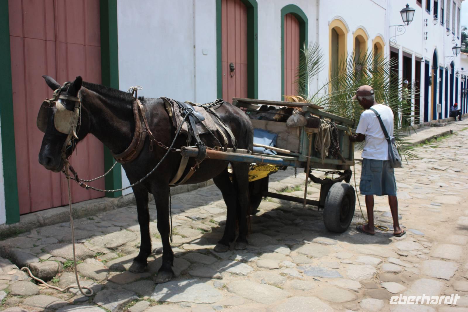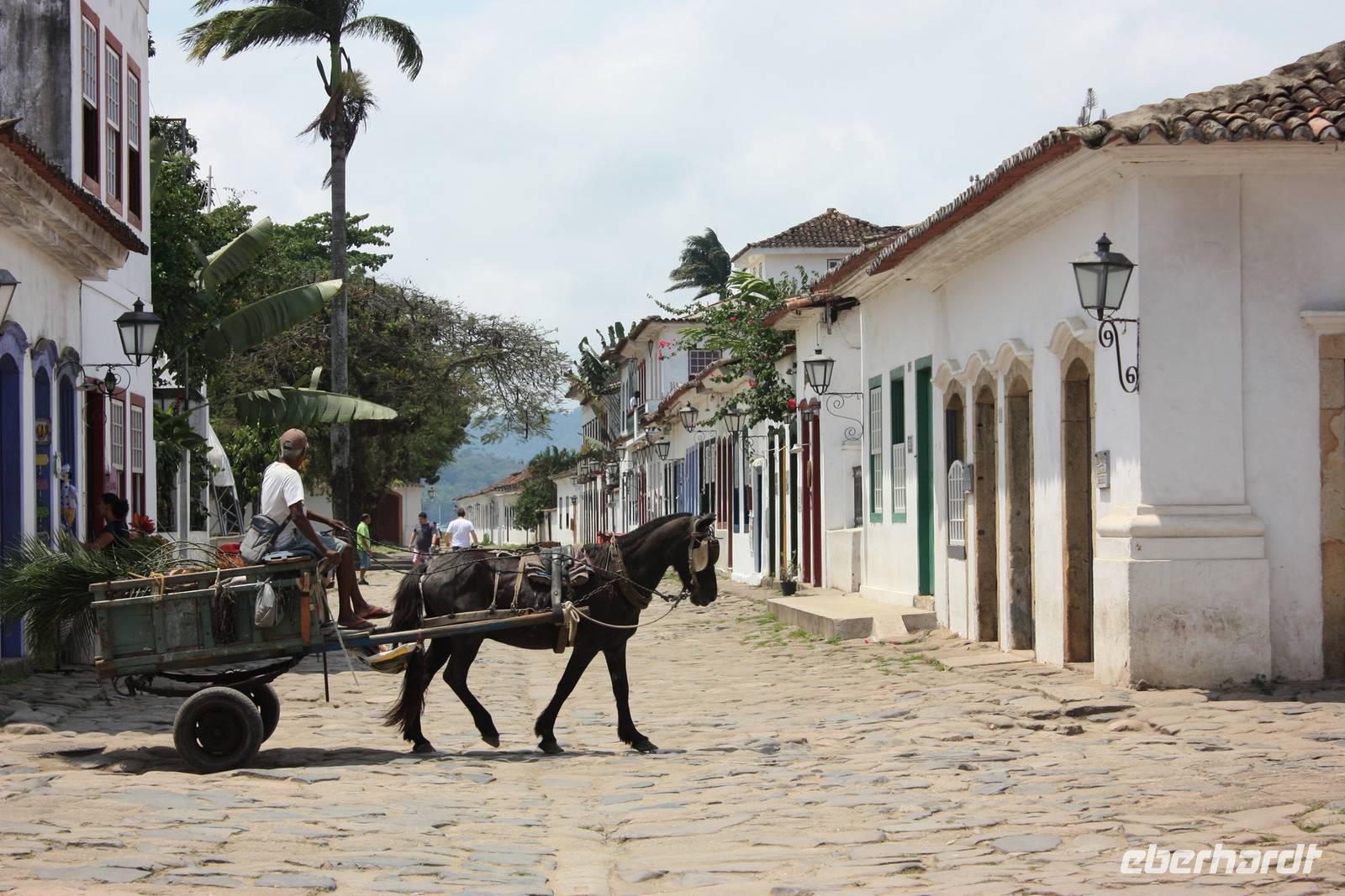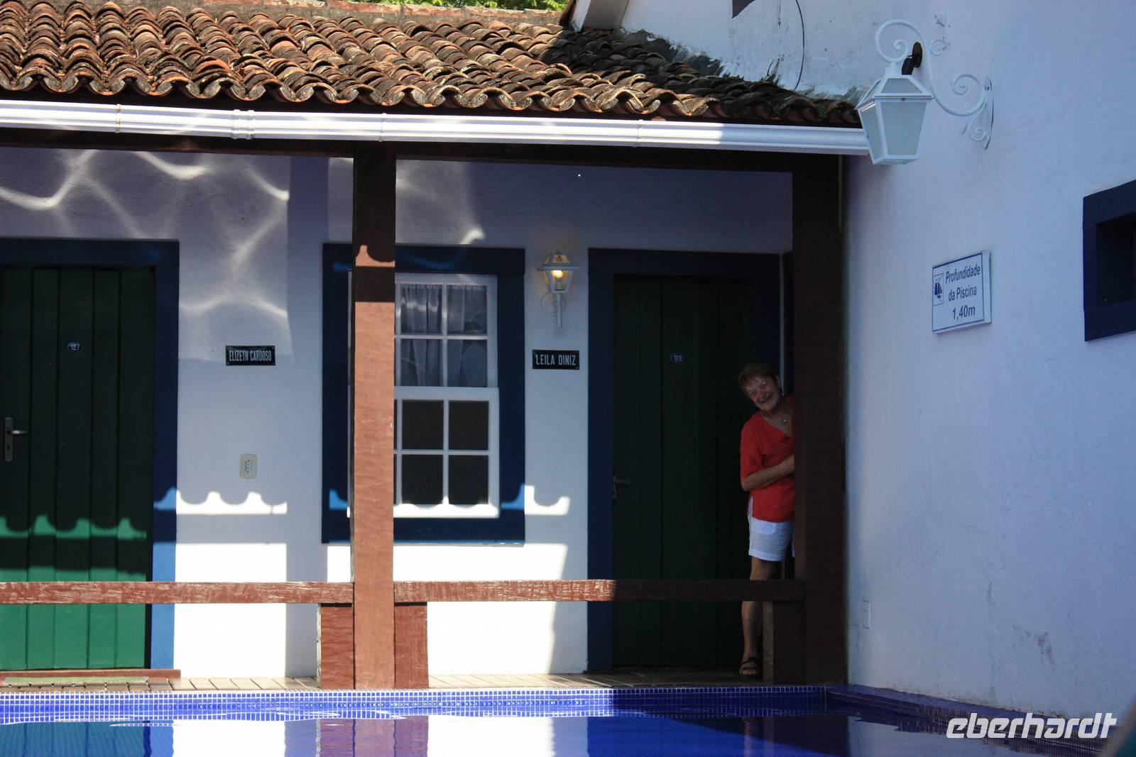 In Paraty endlich angekommen werden wir erst einmal gut durchgerüttelt bis wir die Pousada Porto Imperial in der sehr gut erhaltenen Altstadt erreichen. Die Straßen scheinen noch aus Napoleons Zeiten zu seinen und erschweren uns sogar etwas das Laufen.