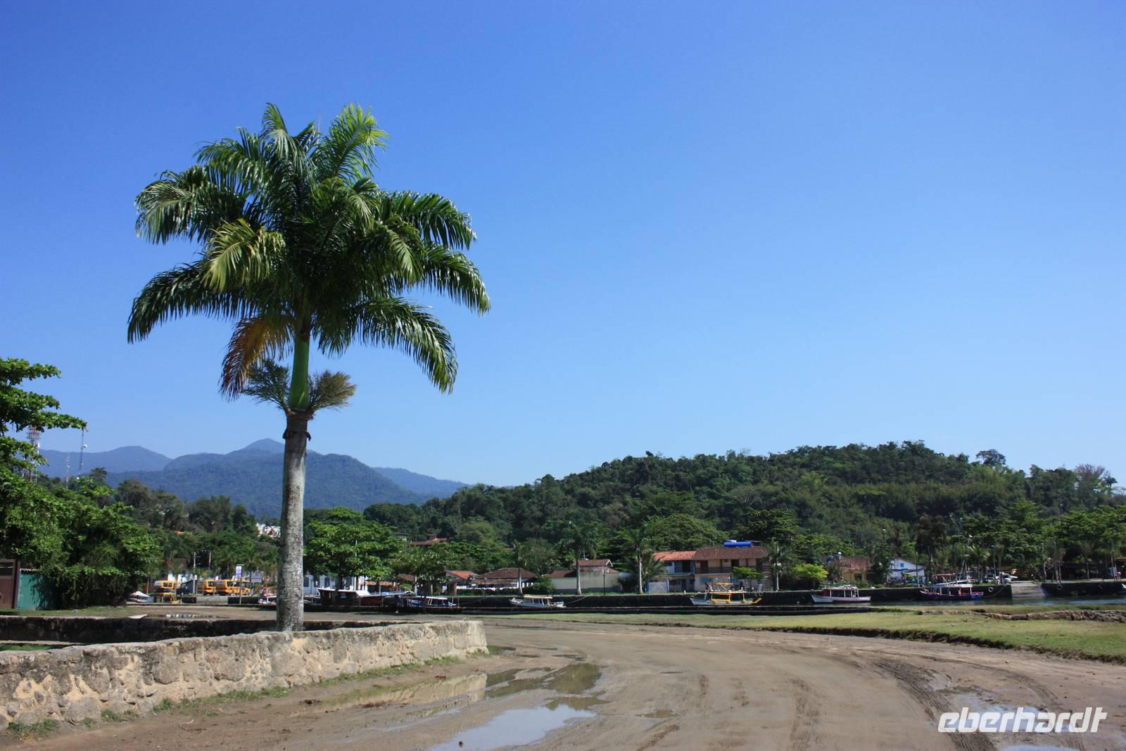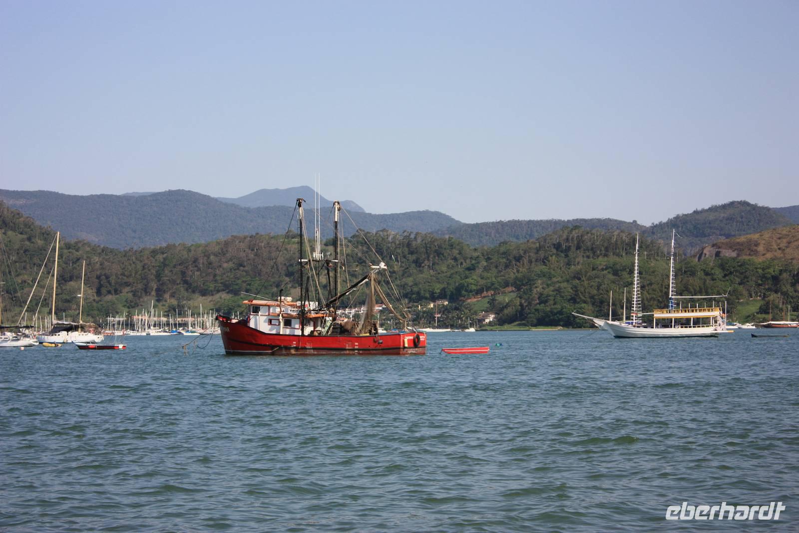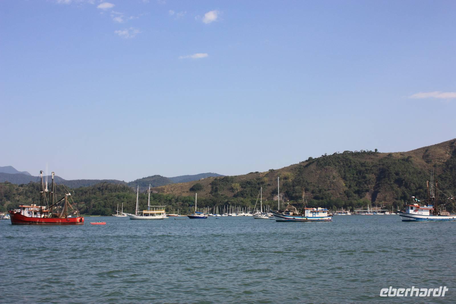 Auf dem Weg nach Paraty hangeln wir uns von Bucht zu Bucht, immer begleitet vom Küstenwald zu unserer Rechten. Hier wachsen bis zu 40m hohe Bäume, allerdings nicht vergleichbar mit den 70m hohen Giganten, die wir noch im Amazonasgebiet kennenlernen dürfen. Maik erzählt auf der Fahrt hier und da schon etwas über die Orte, wie zum Beispiel dem Ort Angra dos Reis auf halber Stecke, benannt nach dem Feiertag der heiligen drei Könige.
