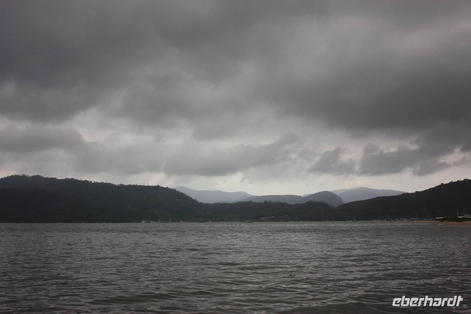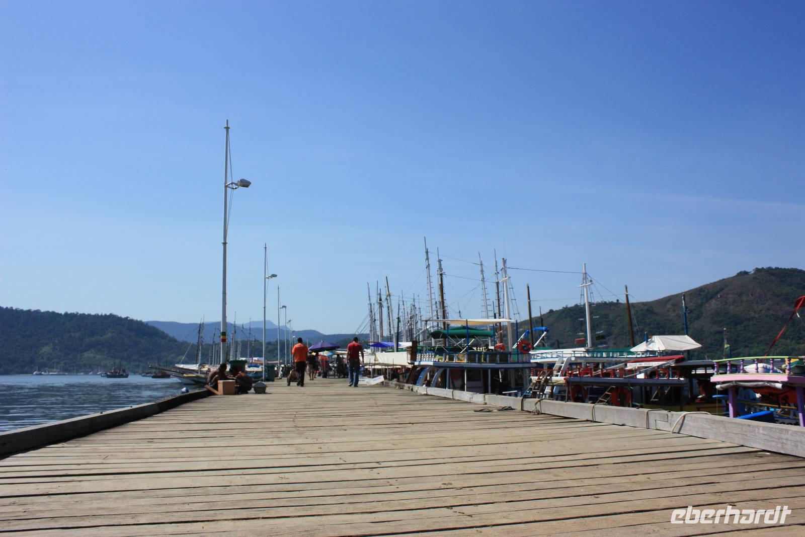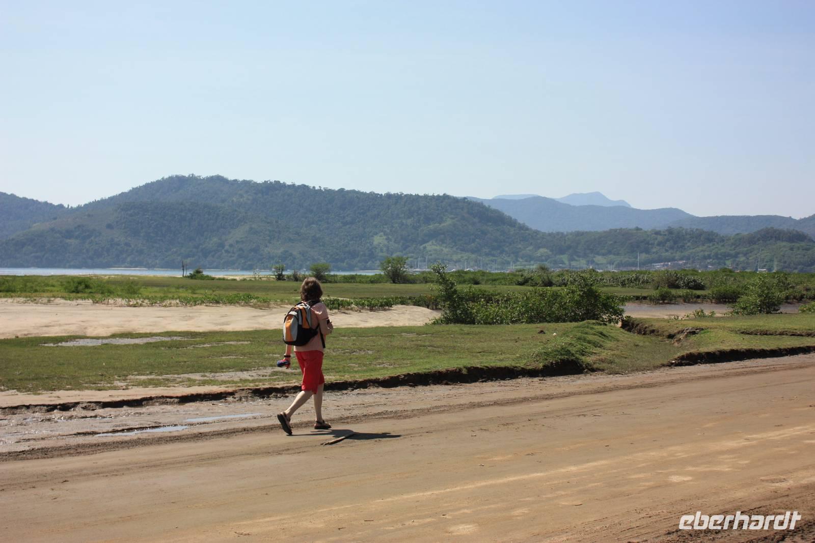 Auf dem Weg nach Paraty hangeln wir uns von Bucht zu Bucht, immer begleitet vom Küstenwald zu unserer Rechten. Hier wachsen bis zu 40m hohe Bäume, allerdings nicht vergleichbar mit den 70m hohen Giganten, die wir noch im Amazonasgebiet kennenlernen dürfen. Maik erzählt auf der Fahrt hier und da schon etwas über die Orte, wie zum Beispiel dem Ort Angra dos Reis auf halber Stecke, benannt nach dem Feiertag der heiligen drei Könige.