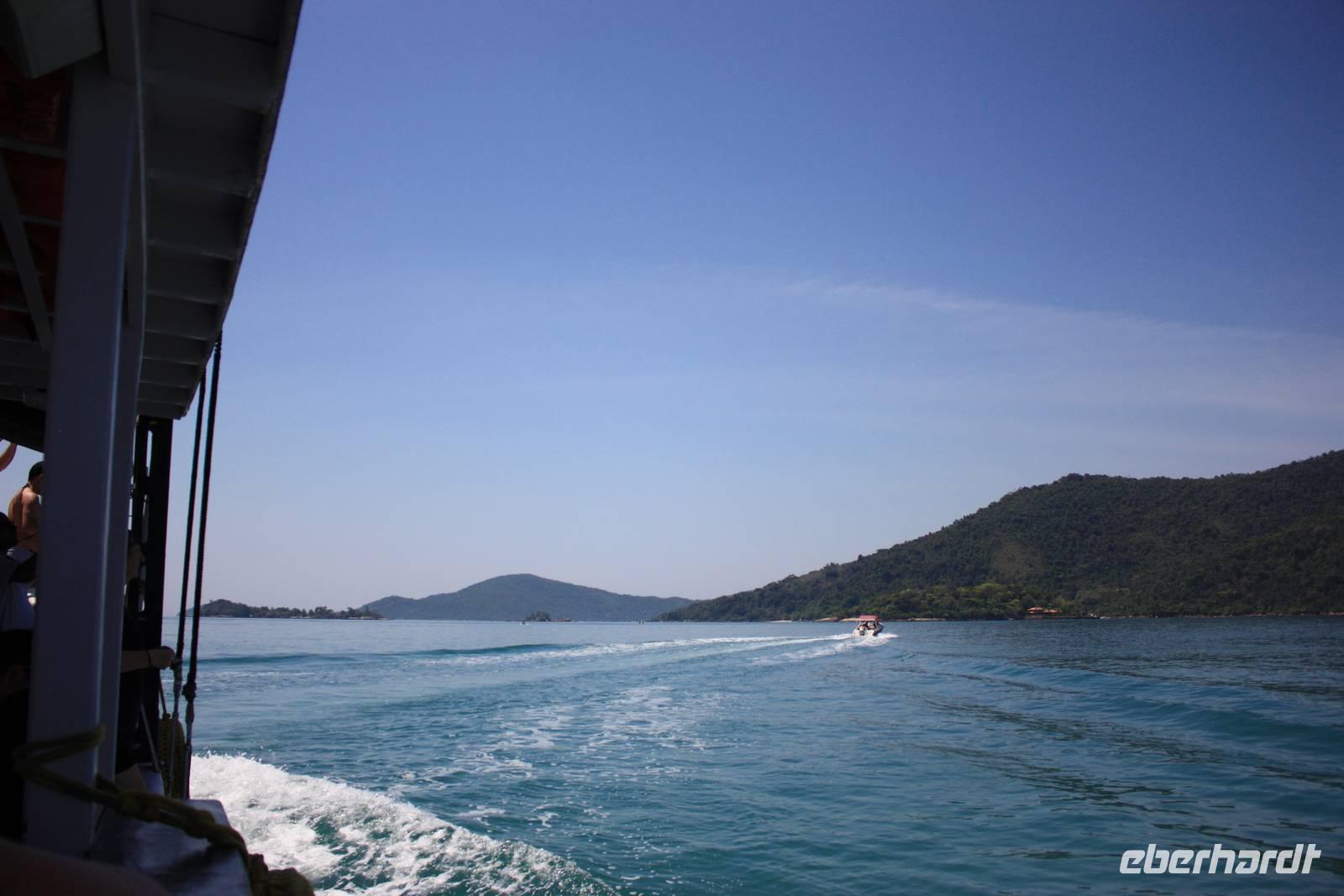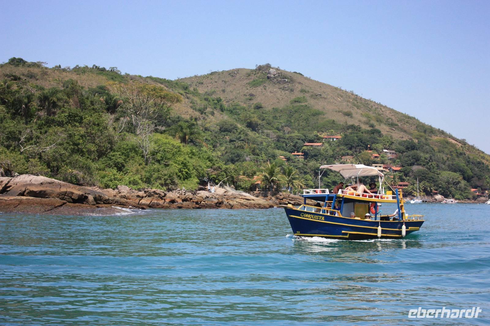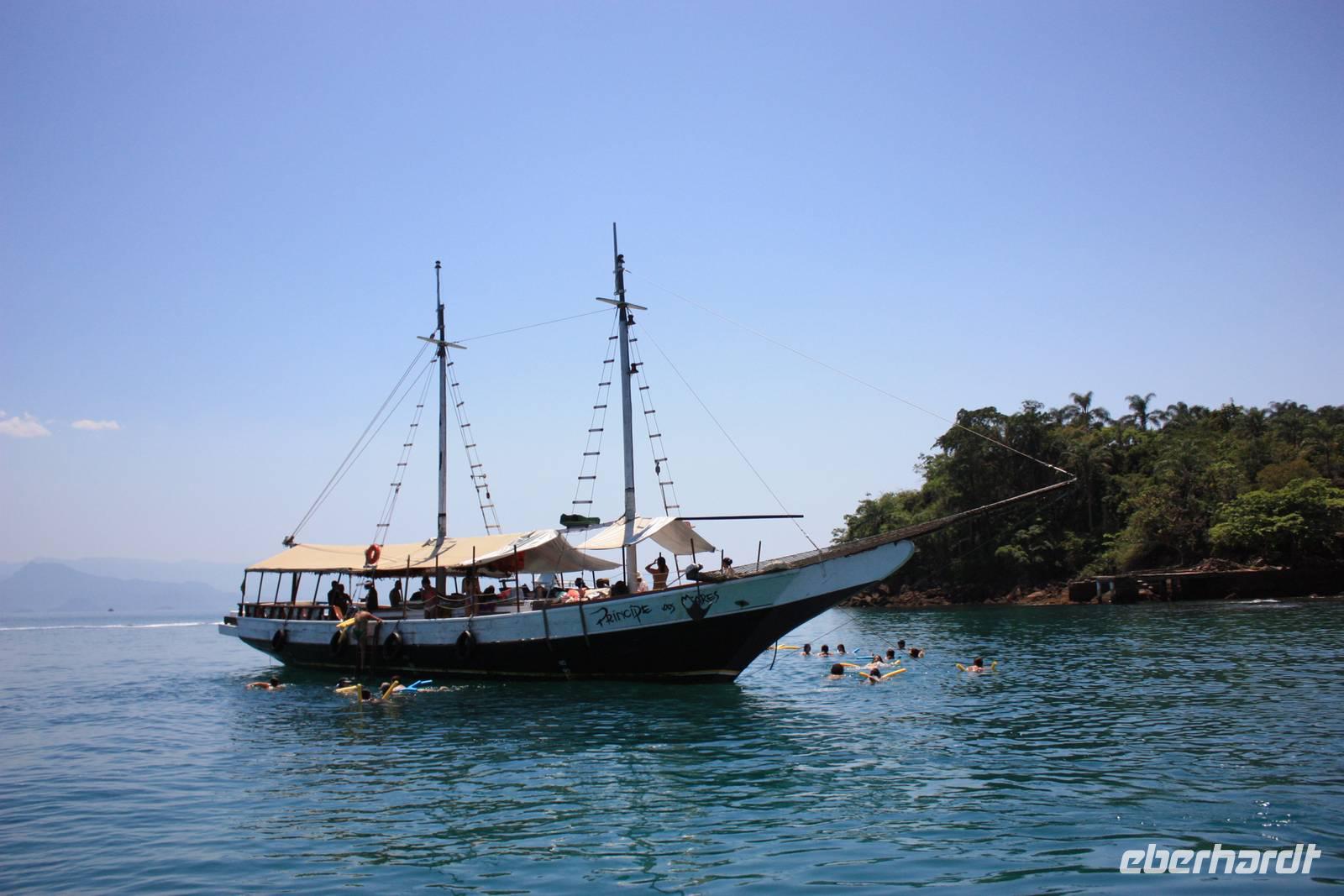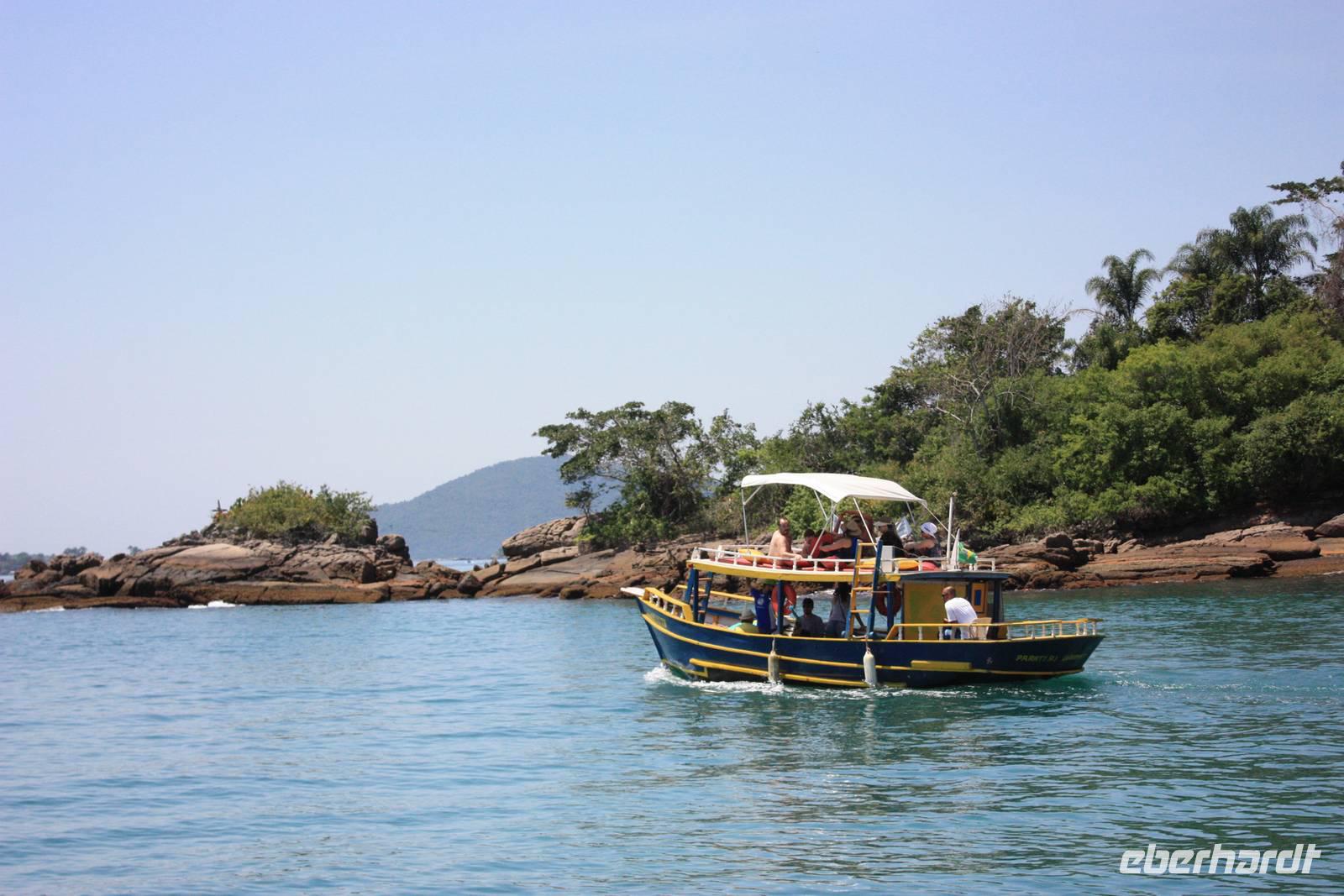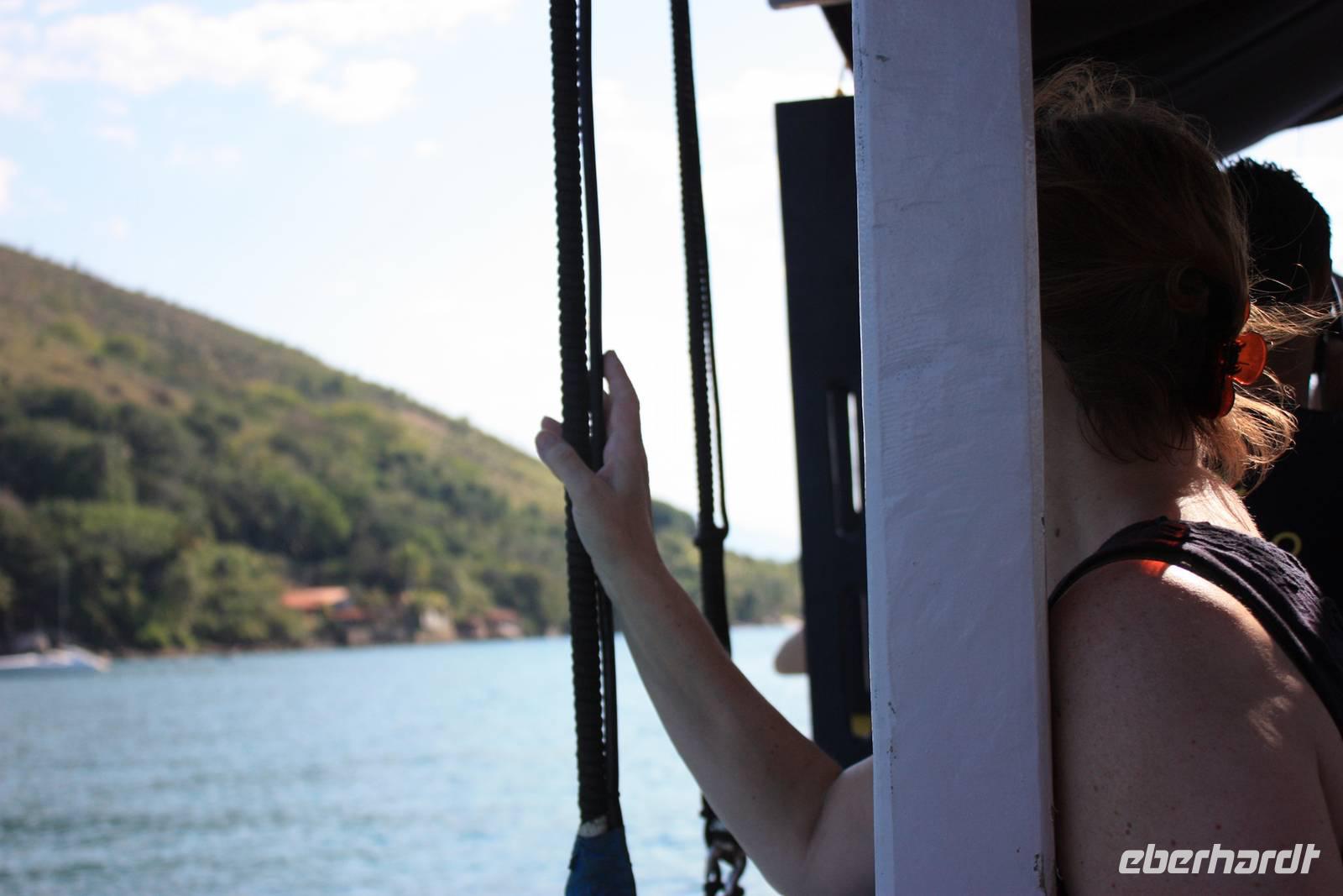Mit dem Boot geht es heute zu den vielen traumhaft schönen Buchten, die die Umgebung von Paraty zu bieten hat. Wir genießen die strahlende Sonne und den warmen Fahrtwind während die Landschaft an uns vorbei zieht und immer wieder neue kleine Inseln auftauchen.