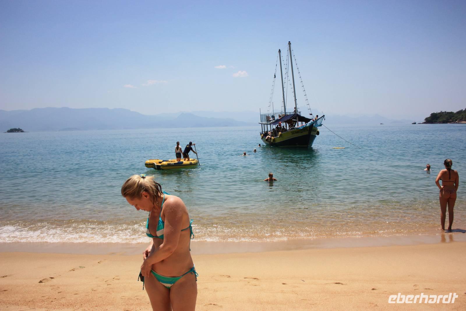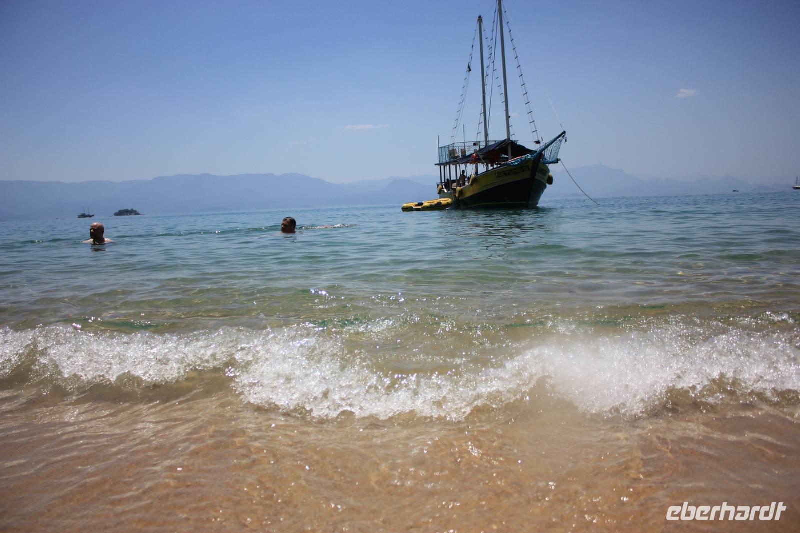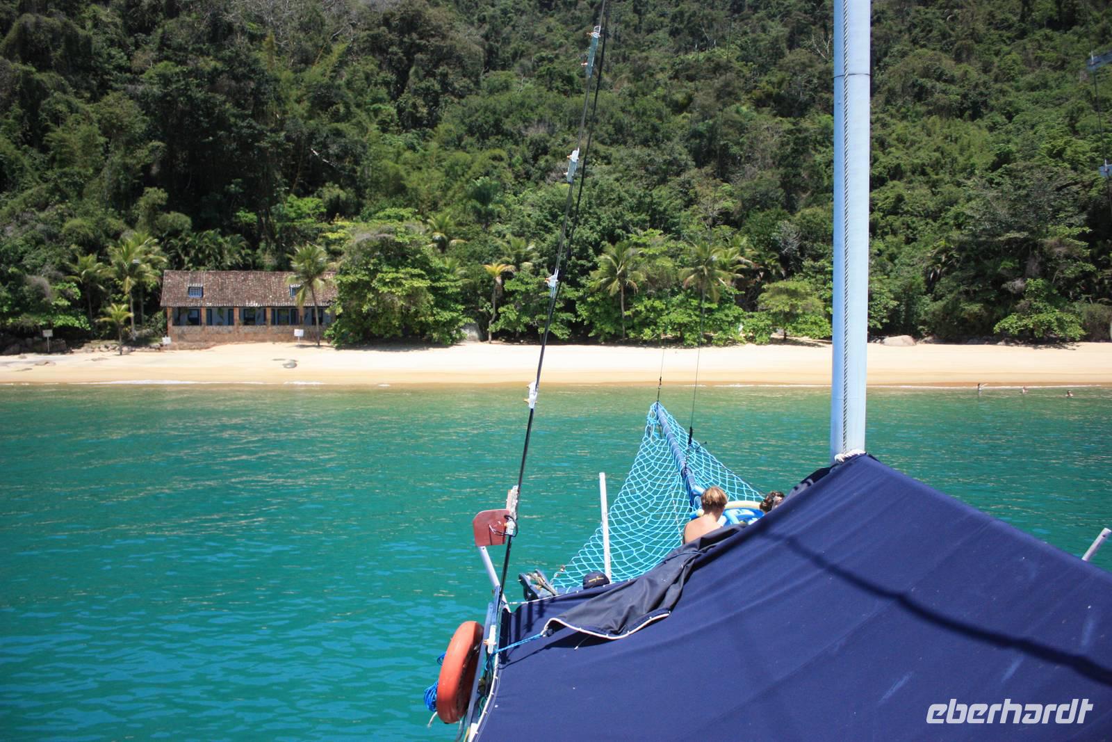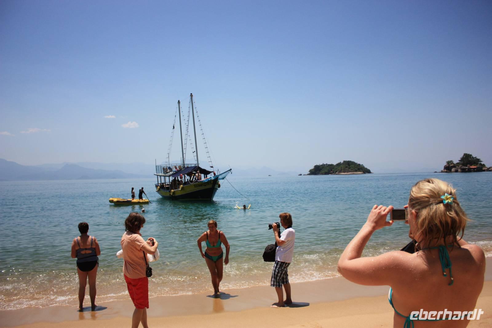 Mit dem Boot geht es heute zu den vielen traumhaft schönen Buchten, die die Umgebung von Paraty zu bieten hat. Wir genießen die strahlende Sonne und den warmen Fahrtwind während die Landschaft an uns vorbei zieht und immer wieder neue kleine Inseln auftauchen.