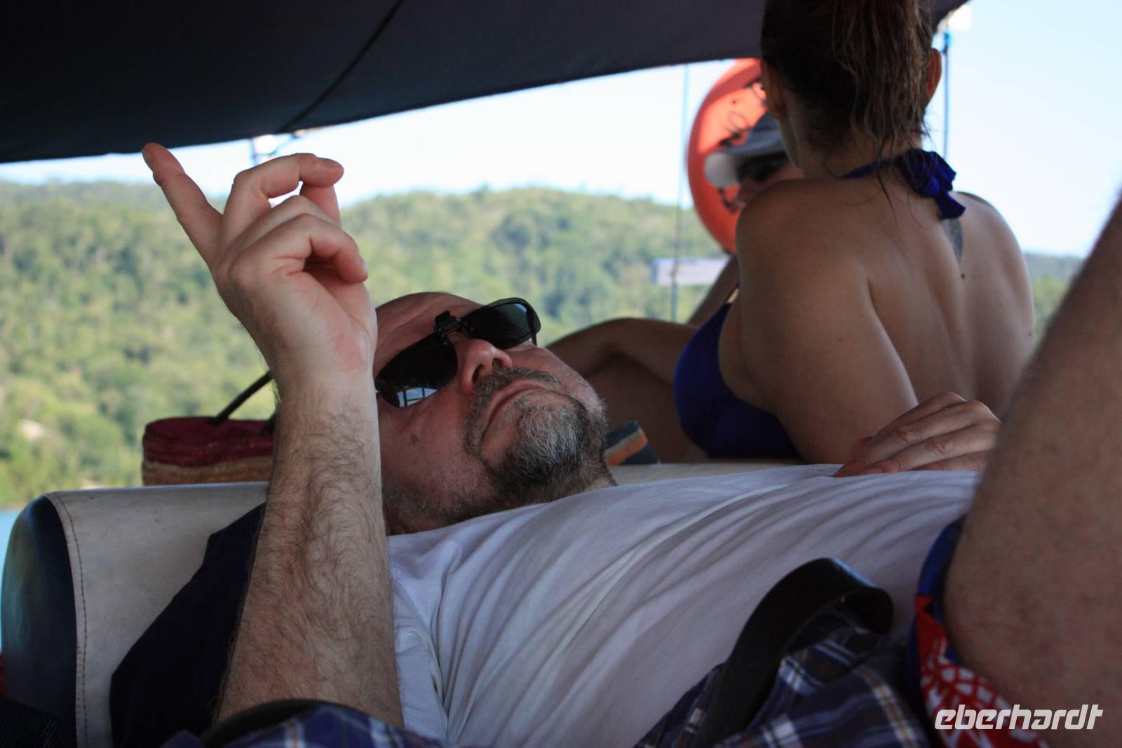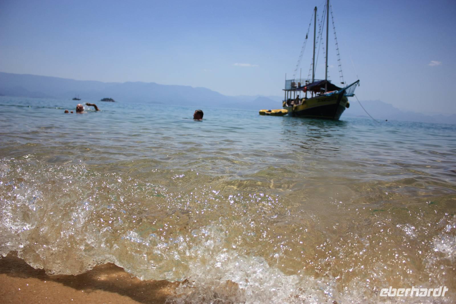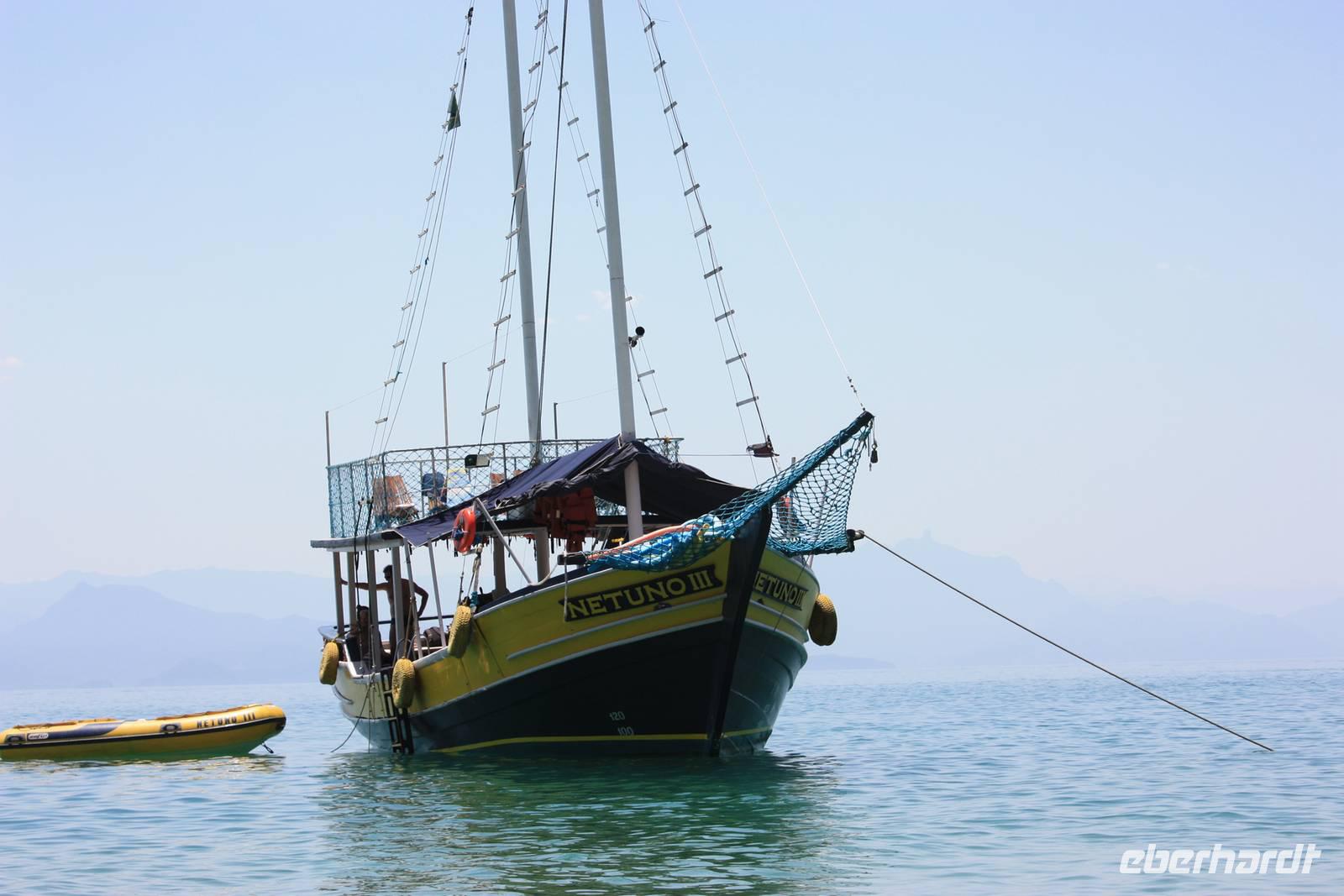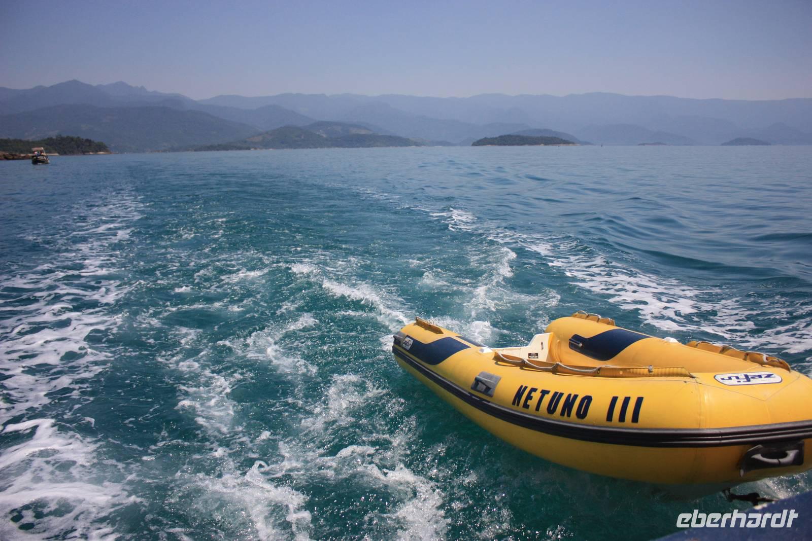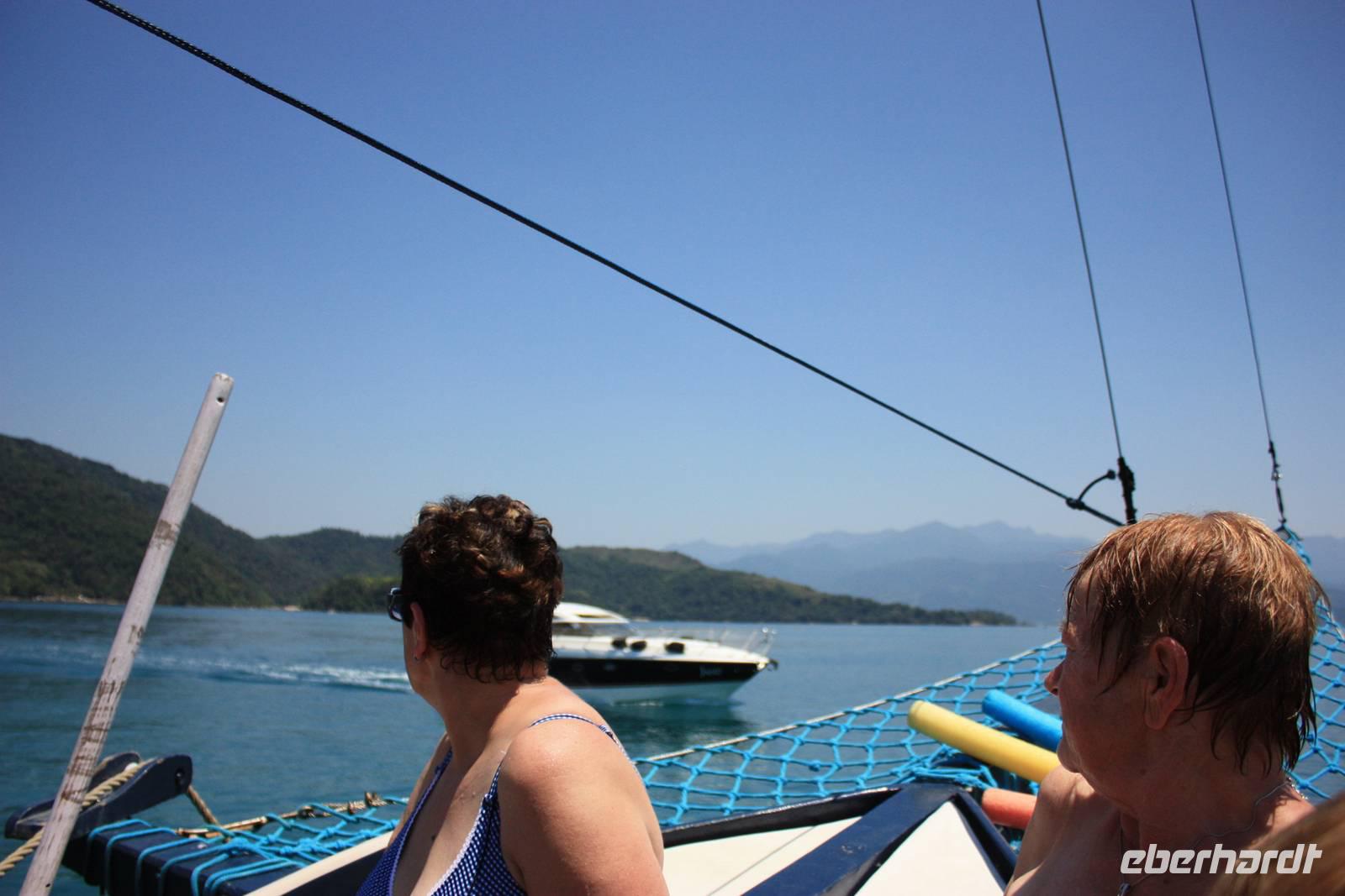 Mit dem Boot geht es heute zu den vielen traumhaft schönen Buchten, die die Umgebung von Paraty zu bieten hat. Wir genießen die strahlende Sonne und den warmen Fahrtwind während die Landschaft an uns vorbei zieht und immer wieder neue kleine Inseln auftauchen.