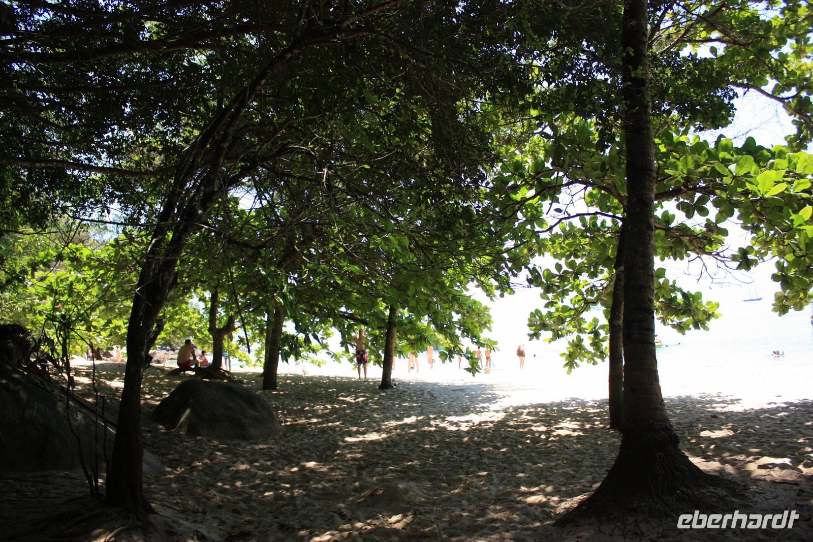 Unser erster Stopp ist die Ilha Comprida. Kleine gestreifte Fische tummeln im Wasser und wecken unsere Neugier. Schnorchel und Taucherbrillen liegen bereit für die Tierbeobachter unter uns. Die meisten möchten jedoch nur eine Abkühlung im frischen Nass. Geschützt durch die vielen Inseln, können kalte Meeresströmungen die Küste nicht erreichen und so genießen wir herrlich angenehme Wassertemperaturen.