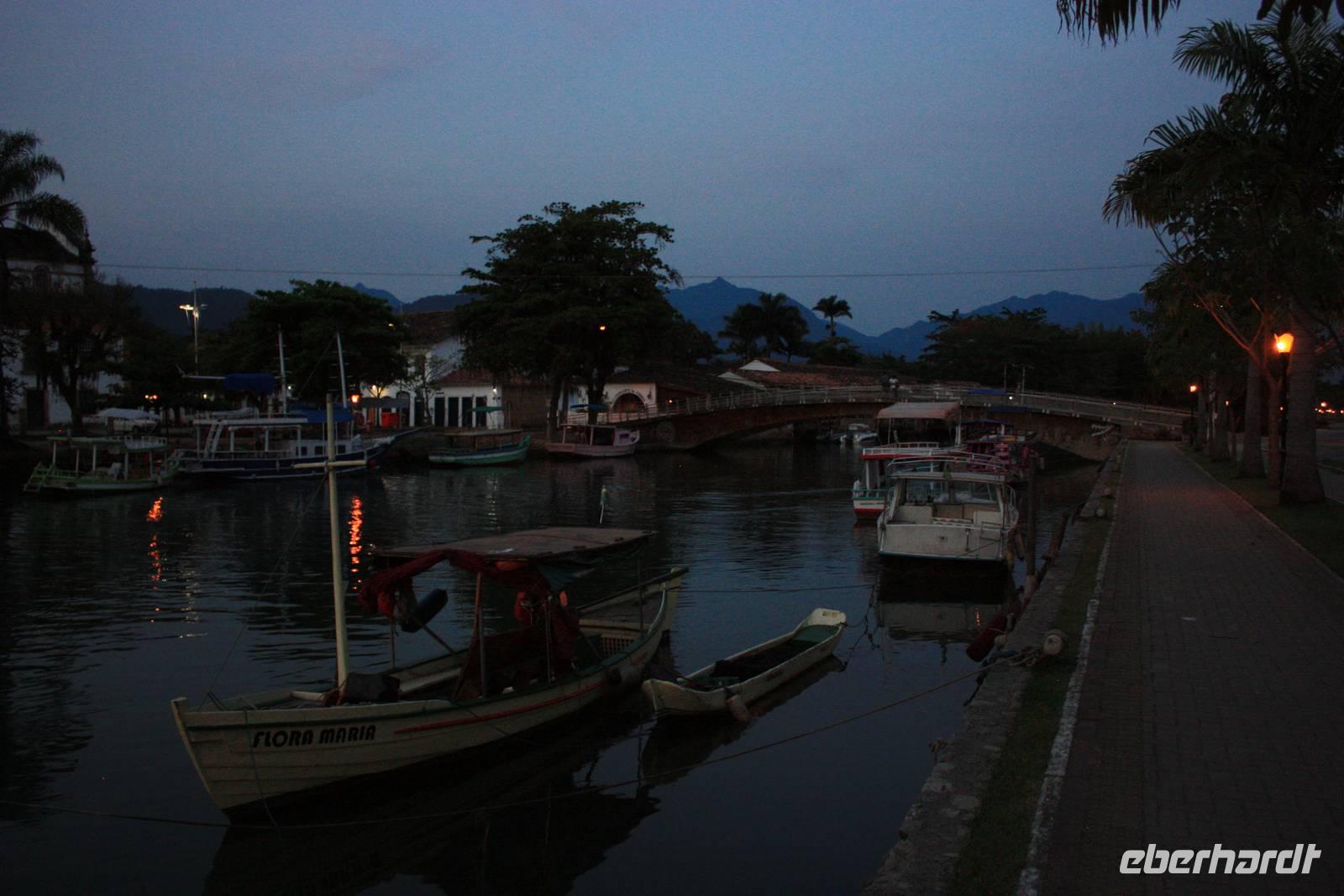 Wer Augen und Ohren noch ohne Mühen offen halten kann, geht nicht gleich zur Pousada zurück, sondern genießt die Vielzahl an atmosphärischen Livemusiken. Zwischen Bossa Nova und Samba tummelt das Nachtleben Paratys. Doch während es in Deutschland schon halb 3 nachts ist, winkt auch hier unser Bettzipfel. Boa noite!
