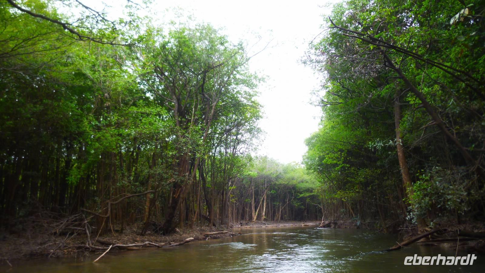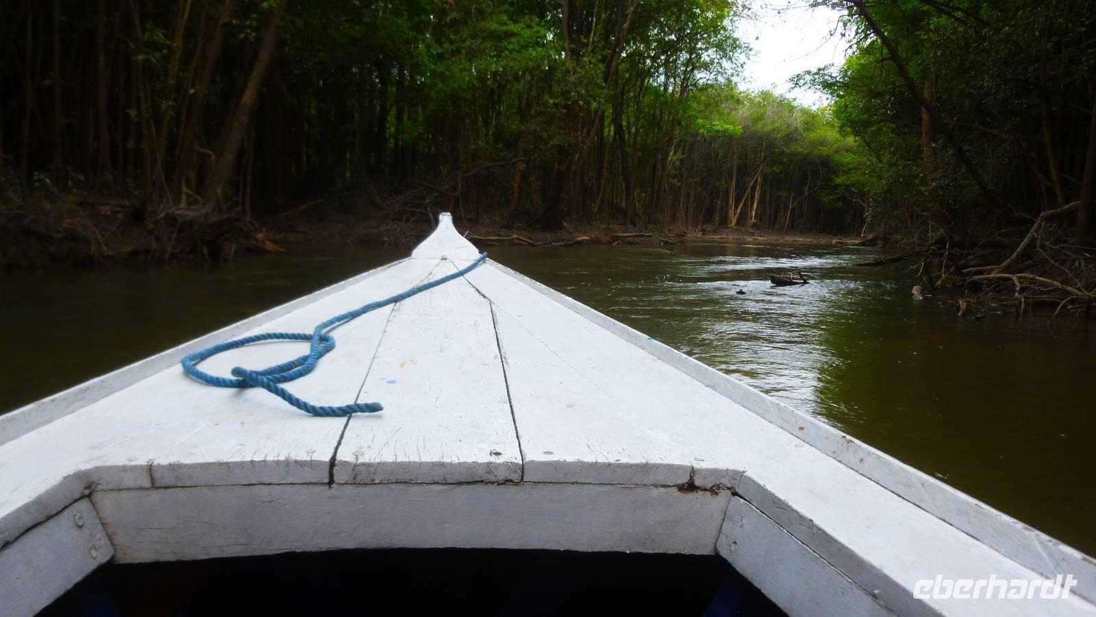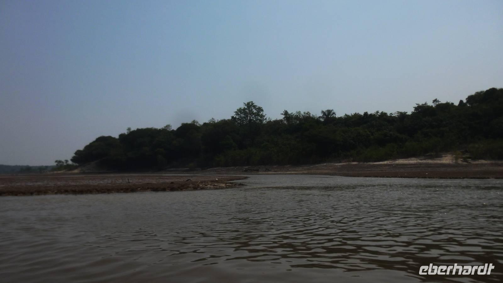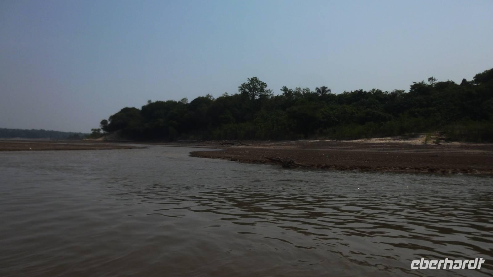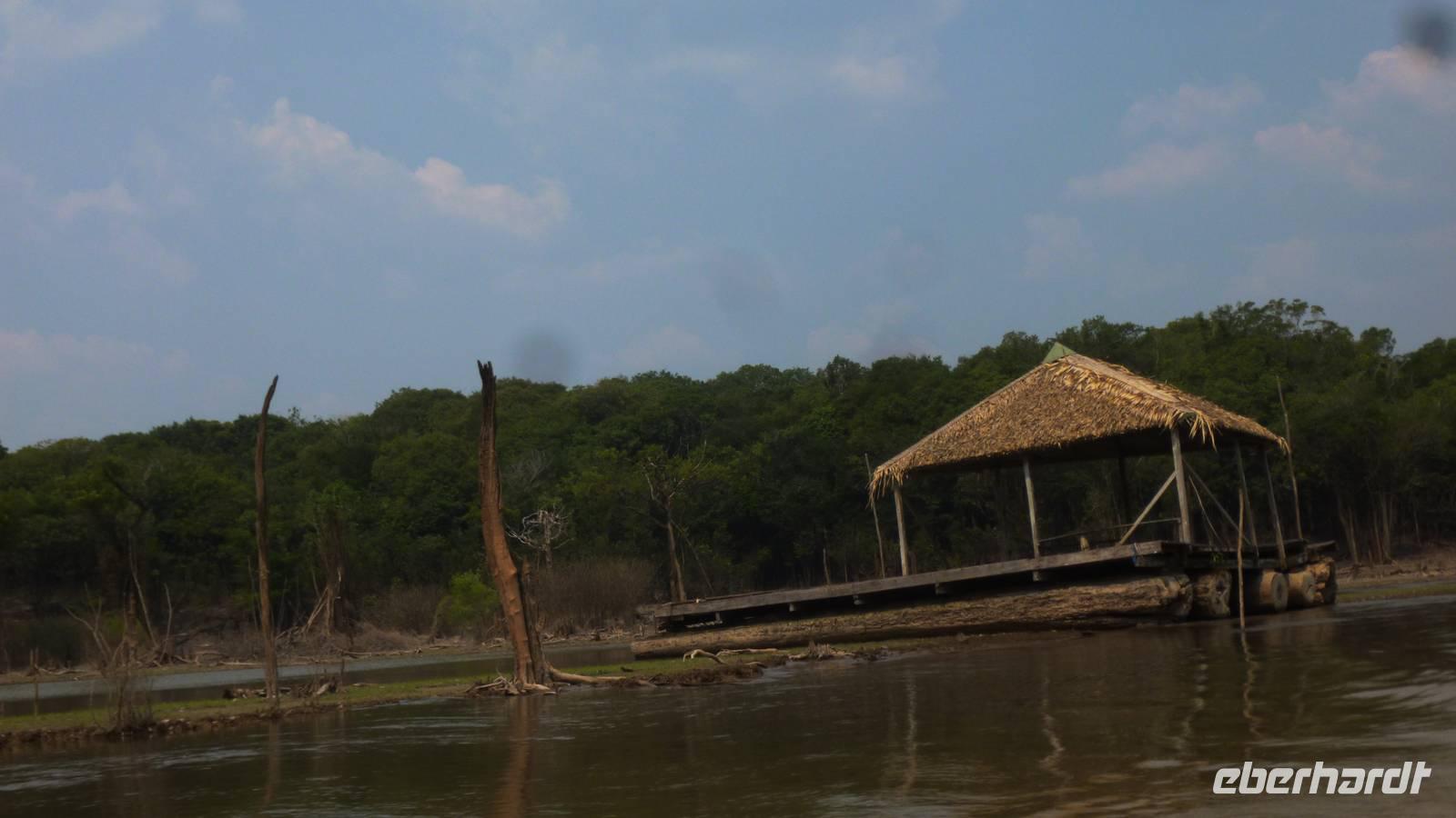 Nach einer kleinen Pause zur Verdauung steht Baden auf dem Plan. Wir fahren mit zwei Booten immer tiefer ins Labyrinth des Puraqueqara bis wir schließlich eine schöne klare Stelle zum Baden finden. Die Strömung ist zwar stark, aber nur da wo es tief ist. Bei den schwülen Temperaturen tut eine Abkühlung im Fluss wirklich gut. Erfrischt fahren wir zurück zur Lodge und genießen die Freizeit.