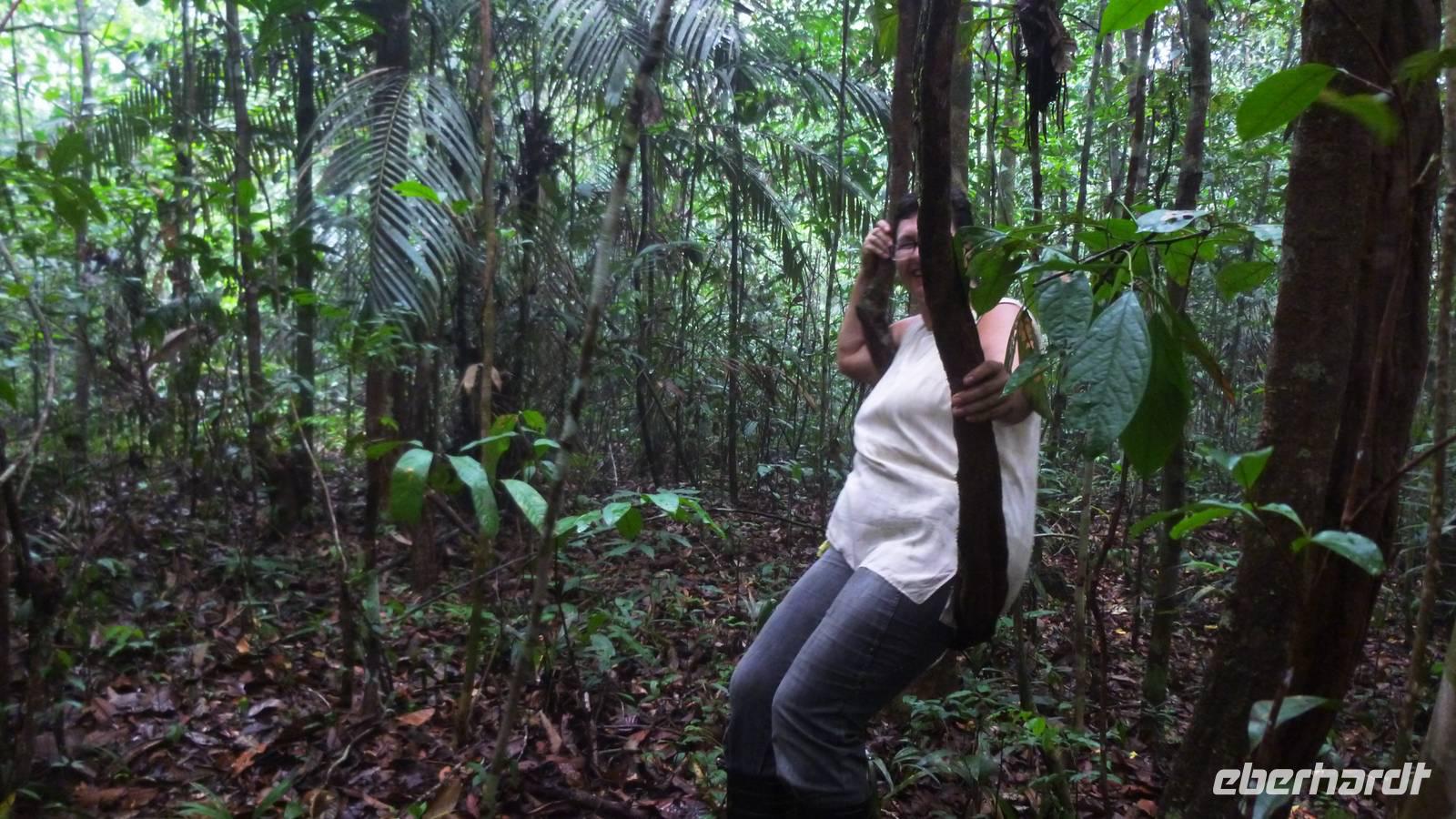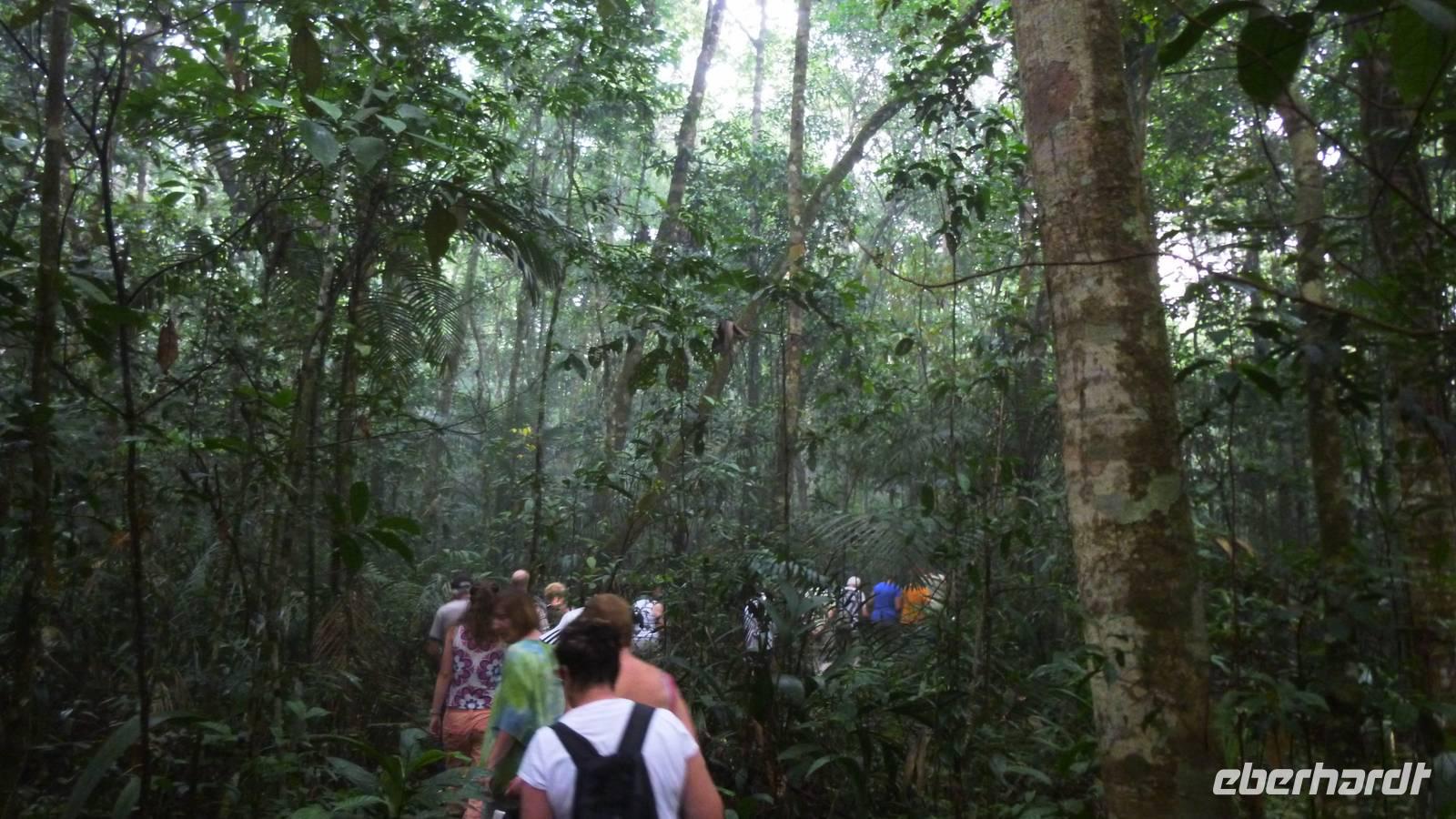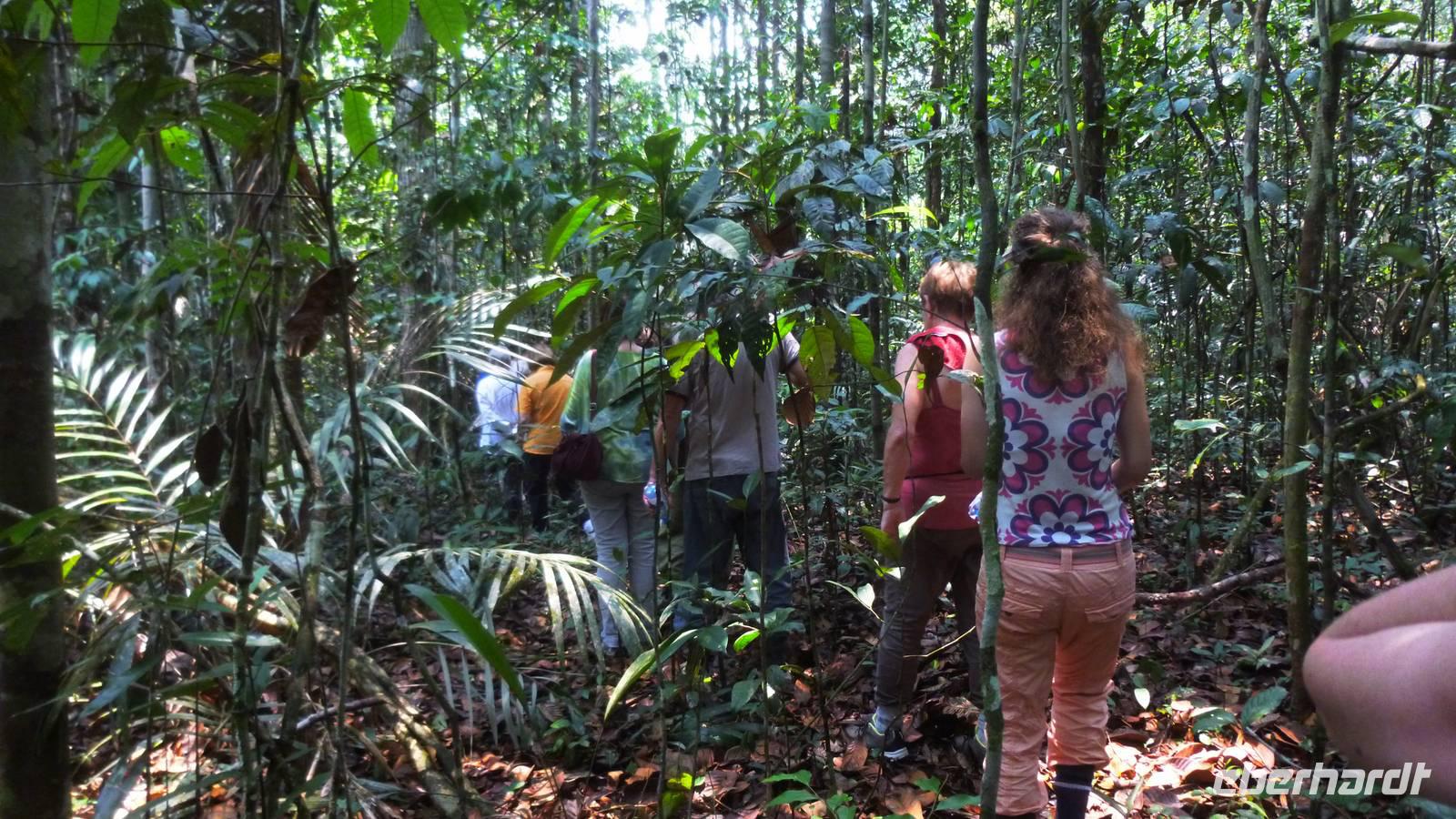 Vormittags dürfen wir nun endlich in den Regenwald hinein, angeführt von Tarzan und unserer Dschungellady. Sie erklärt uns natürliche Heilmittel, die im Wald zu finden sind, und erzählt ausführlich über Lianen, die Baumarten, Insekten und andere Krabbeltiere. Wir bekommen sogar von unserem Tarzan einen kleinen Kurs im Baumklettern. Noch ein paar weitere Tipps und Tricks (welche unter anderem das Einreiben von Ameisen beinhaltet) und wir sind fast vorbereitet auf den Kampf ums Überleben im tiefen Regenwald Brasiliens. Doch dazu kommt es nicht.. Rosi begleitet uns wieder zurück zur Lodge. Glück gehabt!