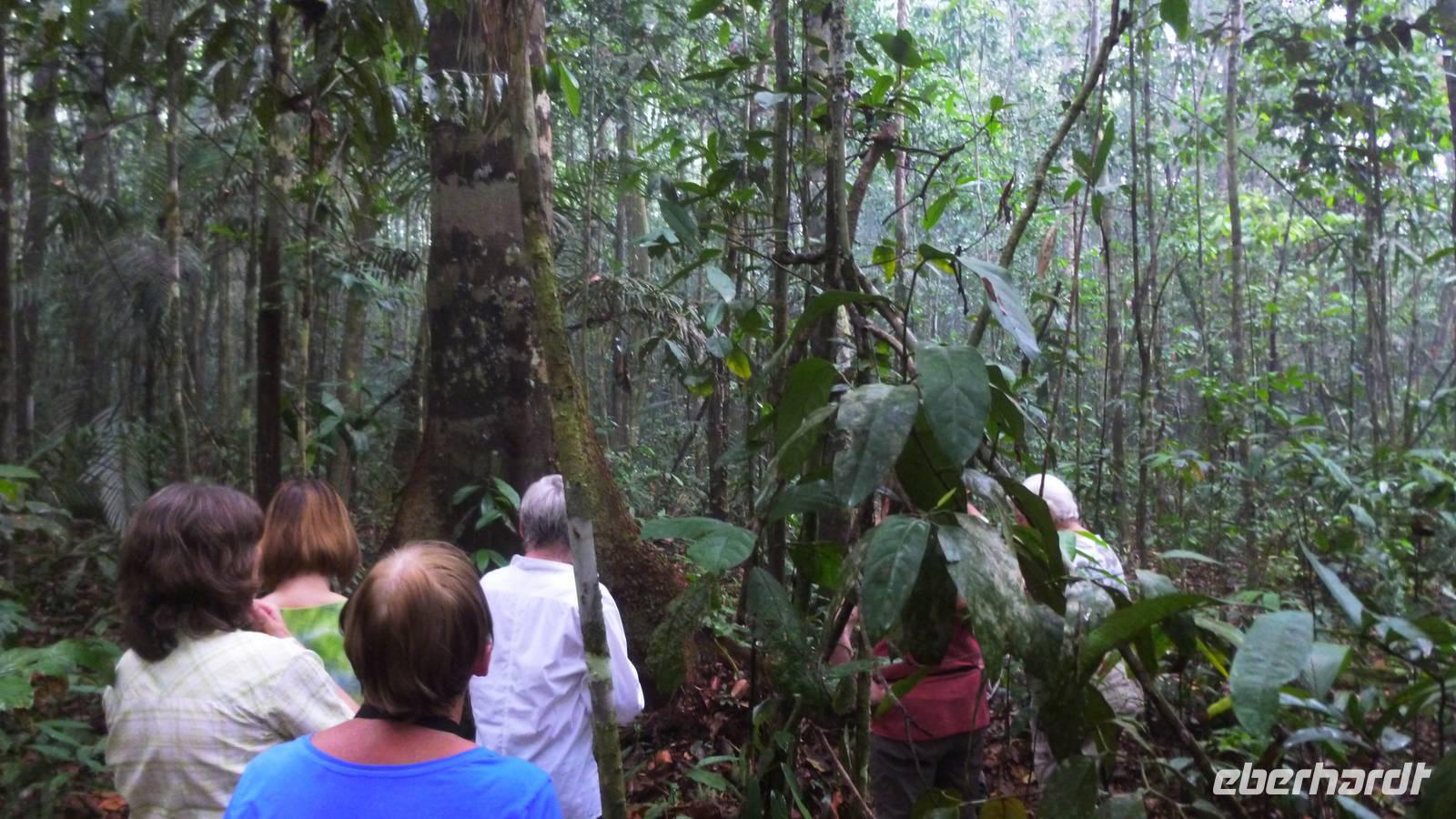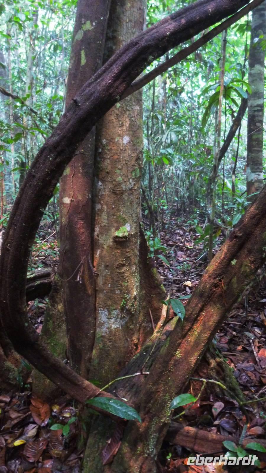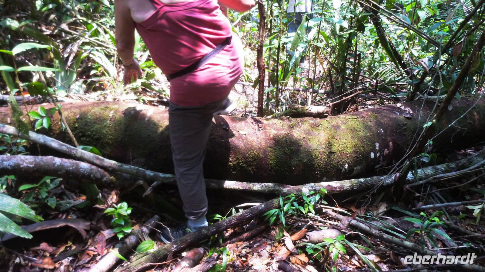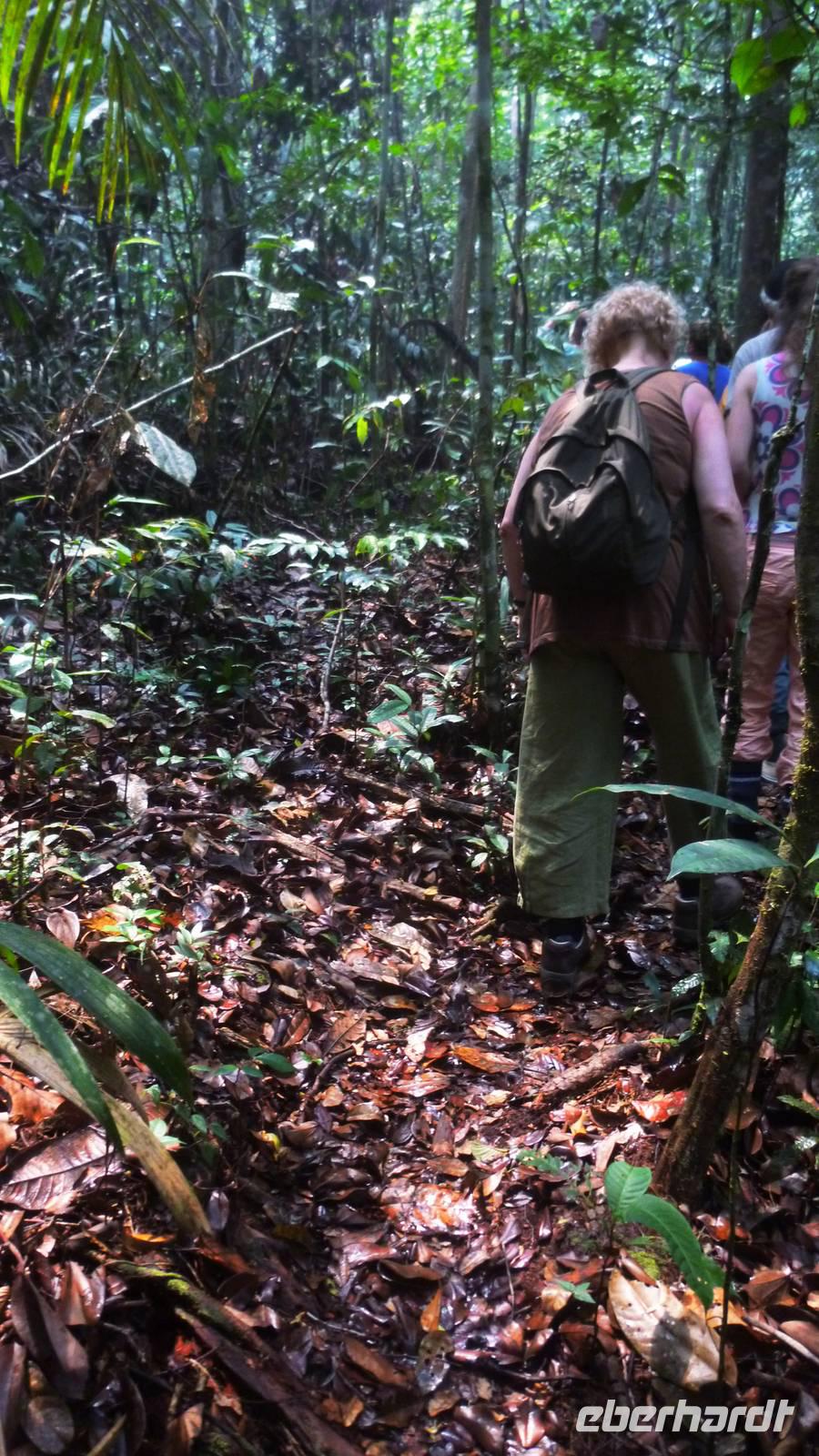 Vormittags dürfen wir nun endlich in den Regenwald hinein, angeführt von Tarzan und unserer Dschungellady. Sie erklärt uns natürliche Heilmittel, die im Wald zu finden sind, und erzählt ausführlich über Lianen, die Baumarten, Insekten und andere Krabbeltiere. Wir bekommen sogar von unserem Tarzan einen kleinen Kurs im Baumklettern. Noch ein paar weitere Tipps und Tricks (welche unter anderem das Einreiben von Ameisen beinhaltet) und wir sind fast vorbereitet auf den Kampf ums Überleben im tiefen Regenwald Brasiliens. Doch dazu kommt es nicht.. Rosi begleitet uns wieder zurück zur Lodge. Glück gehabt!