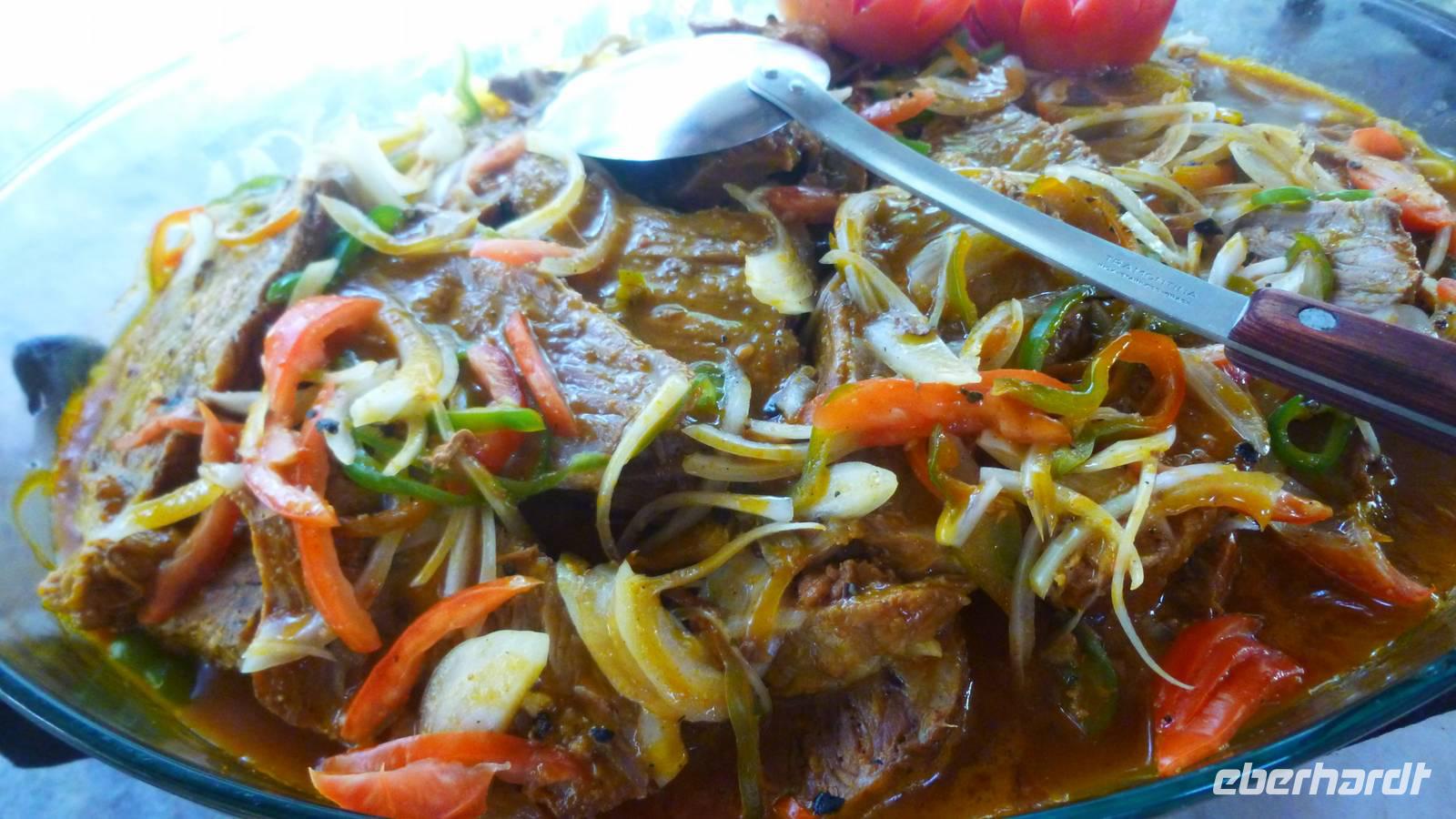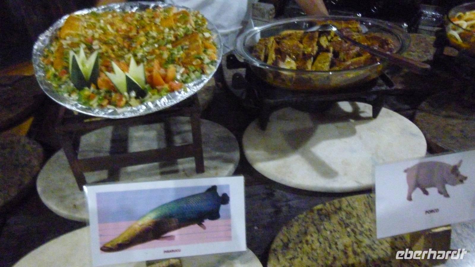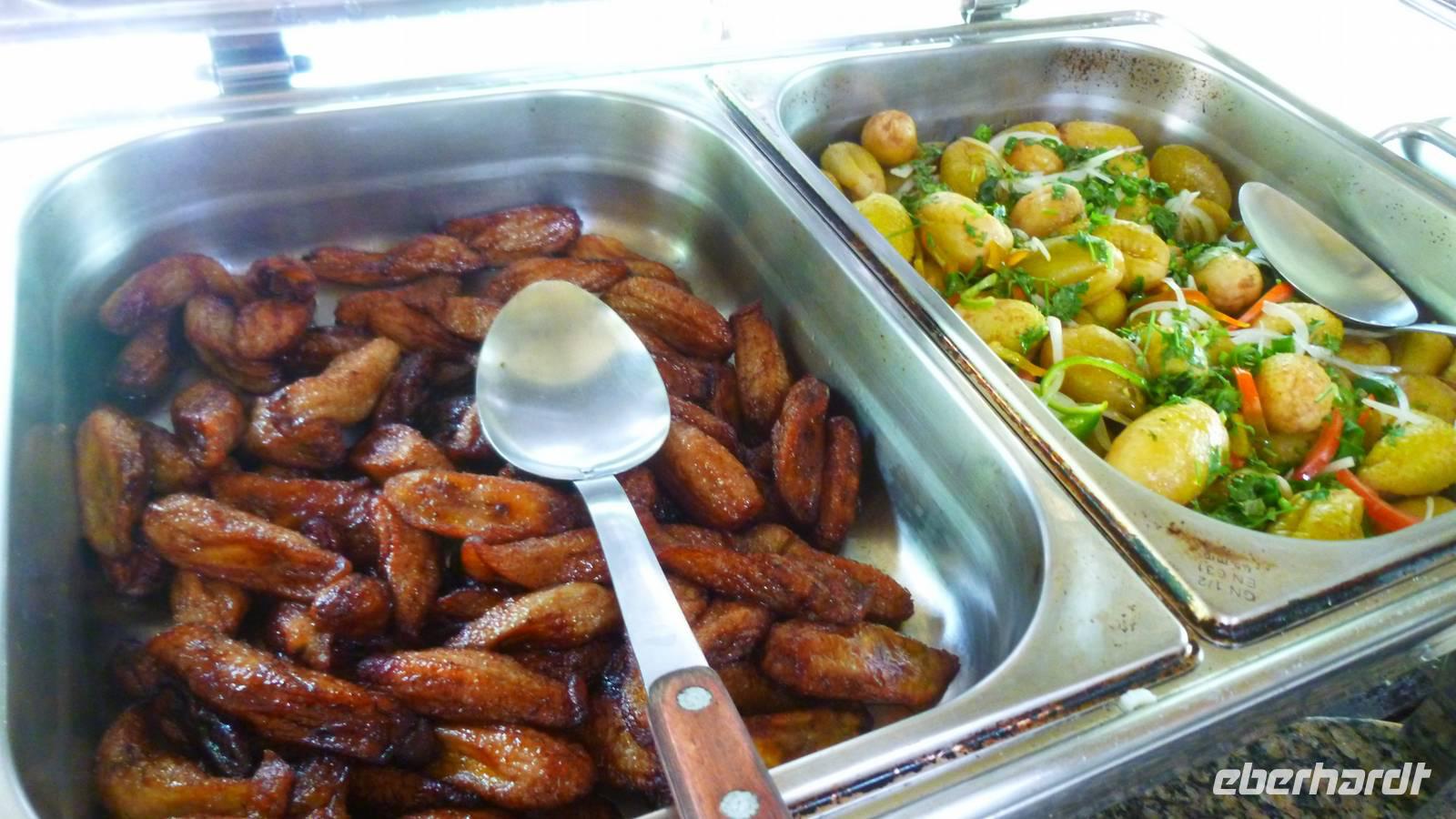 Am Abend gibt es ein leckeres Buffet mit Katzenfisch, Ochse und Schwein und vielen herzhaften und süßen Beilagen.