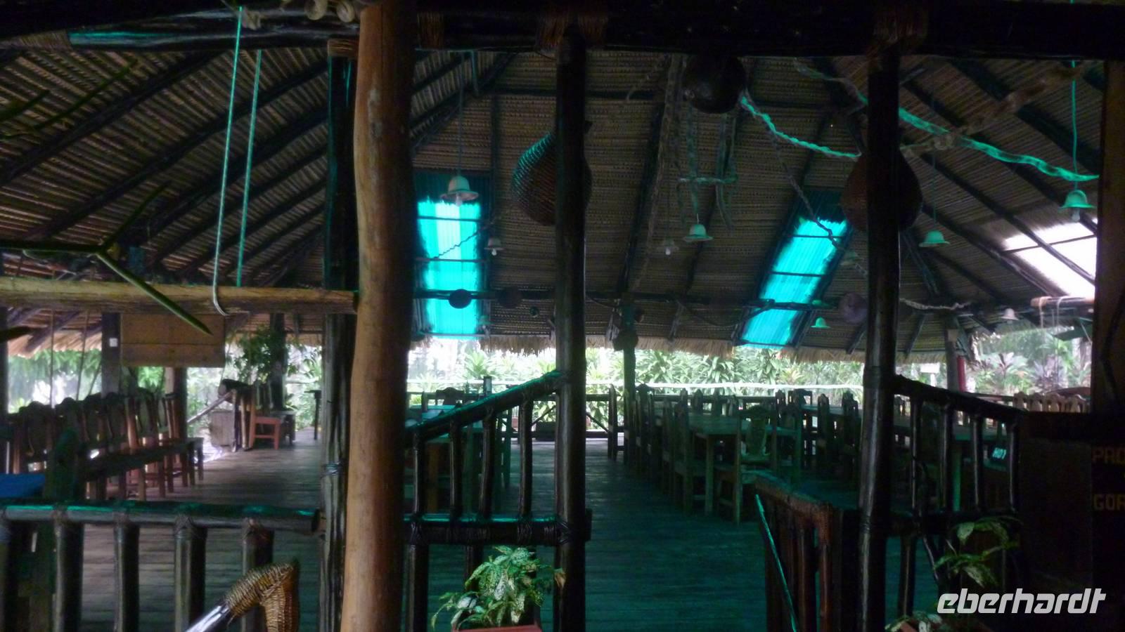 Es dauert nicht lang, dann sind wir alle vollzählig angekommen und stillen unseren Durst mit einem Begrüßungsgetränk. Man fühlt sich gleich viel besser nach einer erfrischenden Dusche und einem kleinen Spaziergang durch die Anlage des Amazon Village.