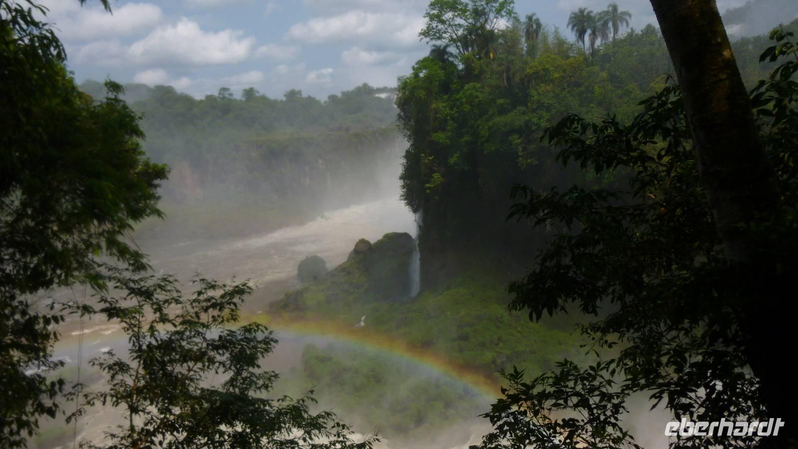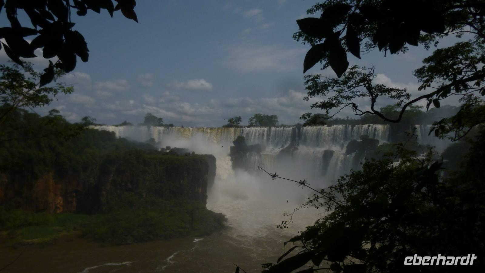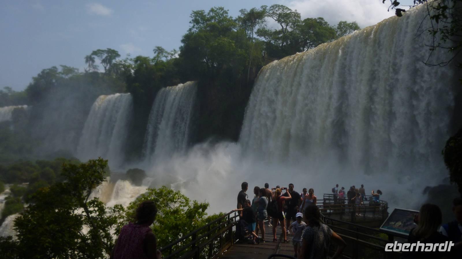 Unsere letzte Etappe für heute ist ein weiterer Wanderweg zu einem der schönsten Panoramablicke, die die Iguazu Wasserfälle zu bieten haben. So stellen wir uns das Paradies vor: herrliche Wasserfälle, Palmen, Kaiserwetter. Es kann kaum noch schöner werden.