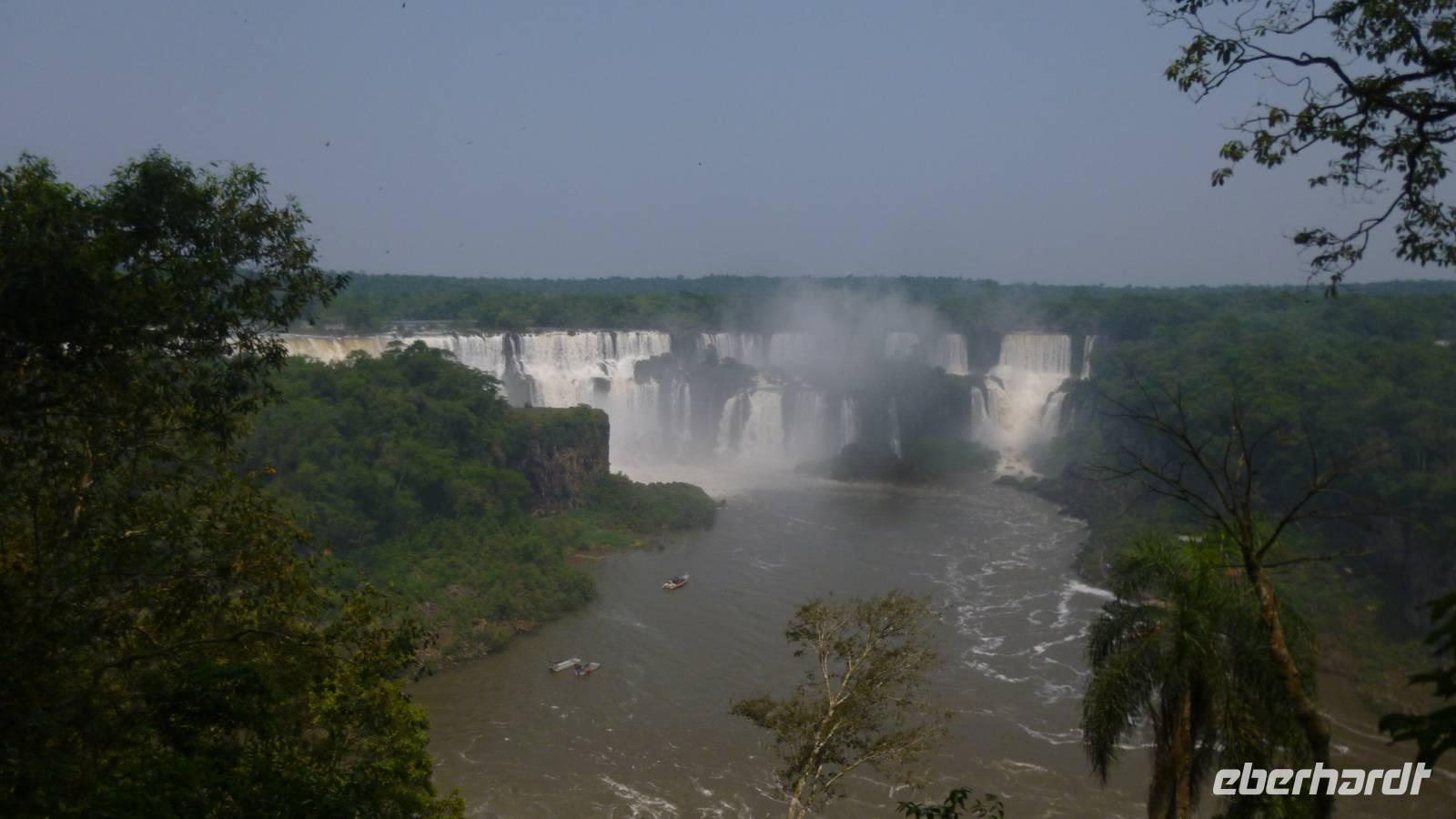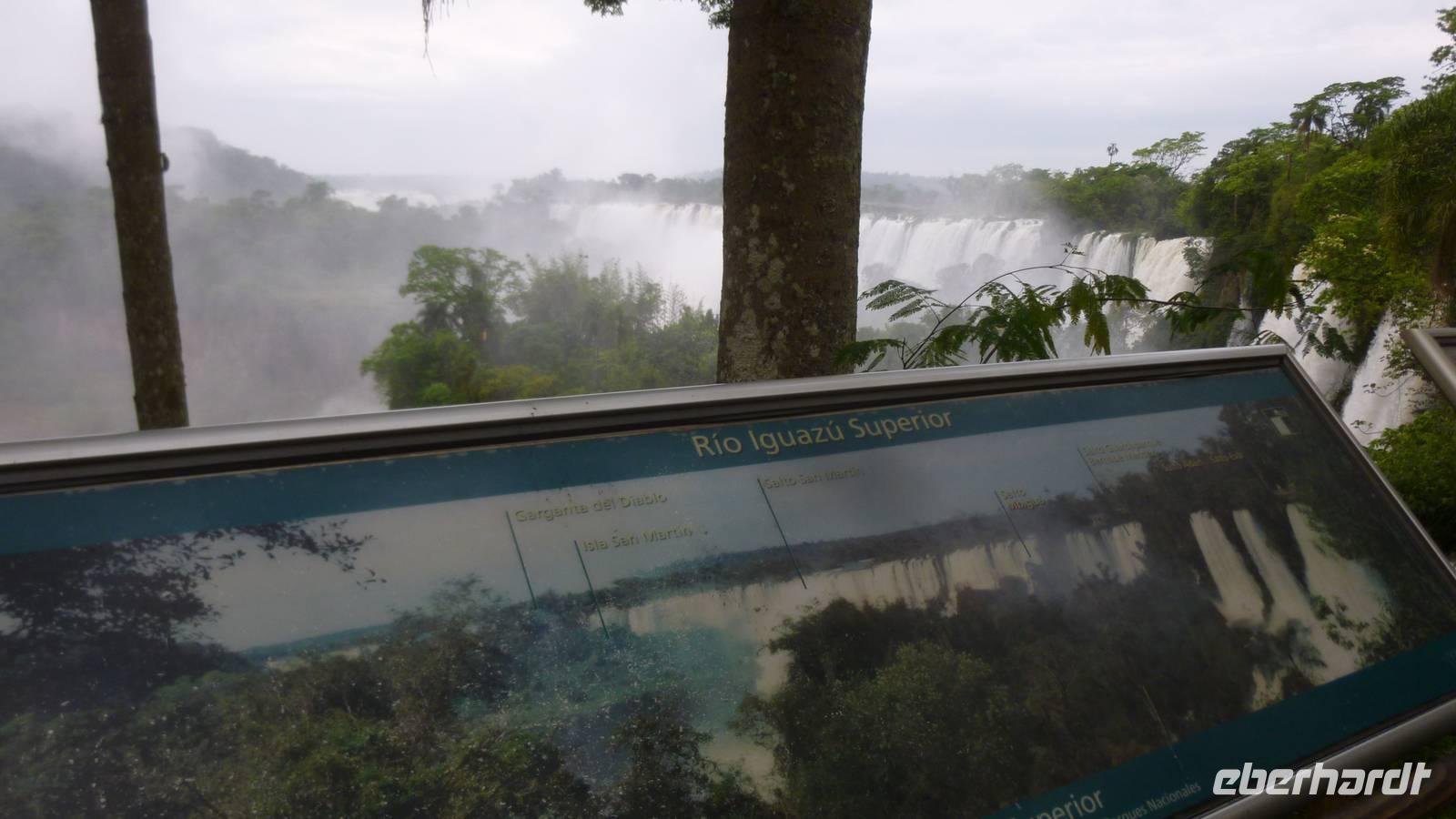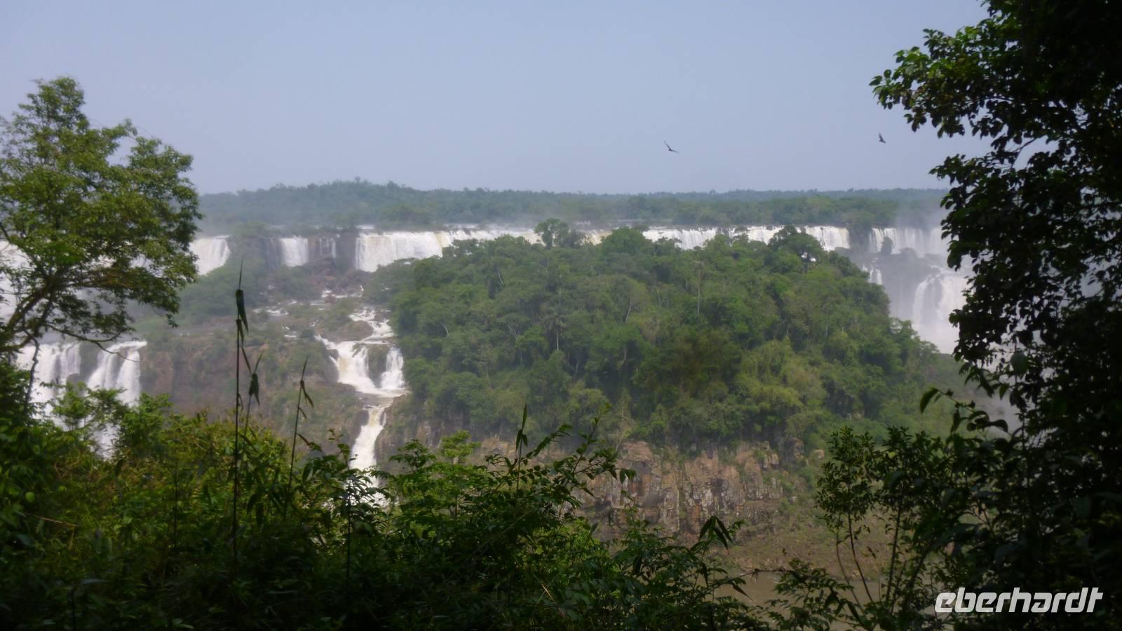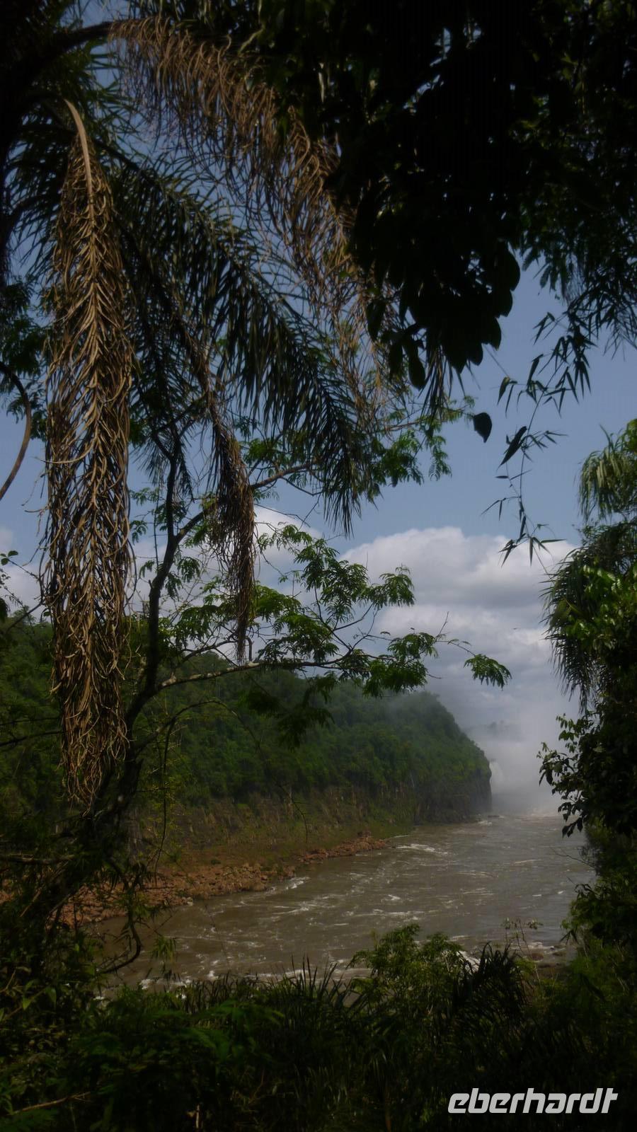 Unsere letzte Etappe für heute ist ein weiterer Wanderweg zu einem der schönsten Panoramablicke, die die Iguazu Wasserfälle zu bieten haben. So stellen wir uns das Paradies vor: herrliche Wasserfälle, Palmen, Kaiserwetter. Es kann kaum noch schöner werden.