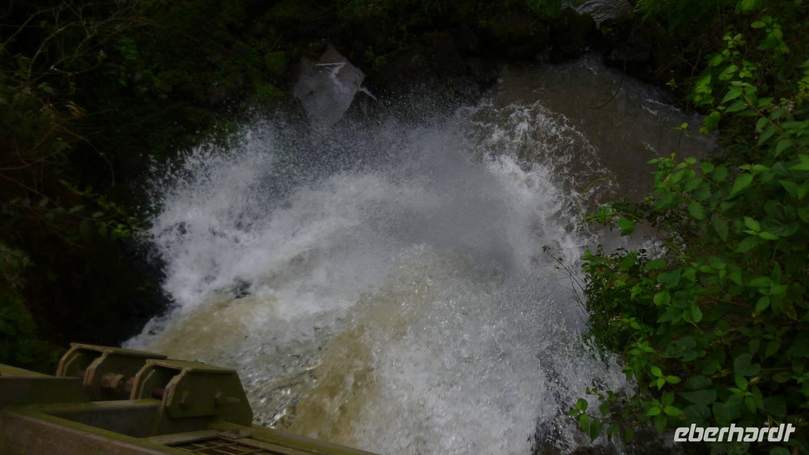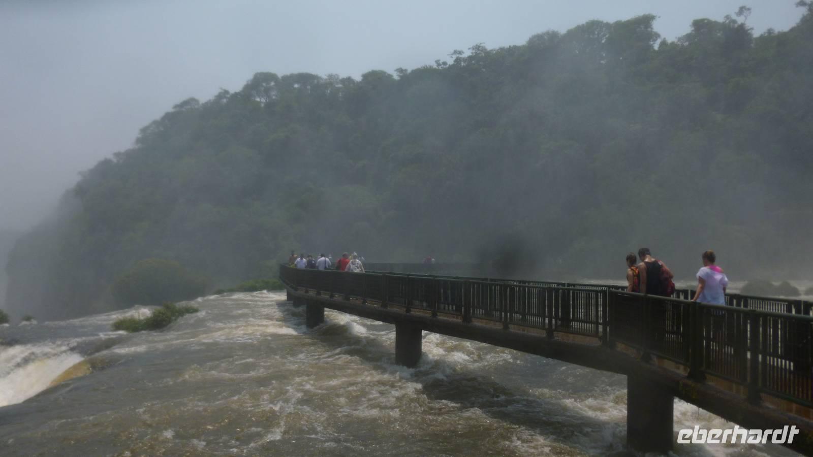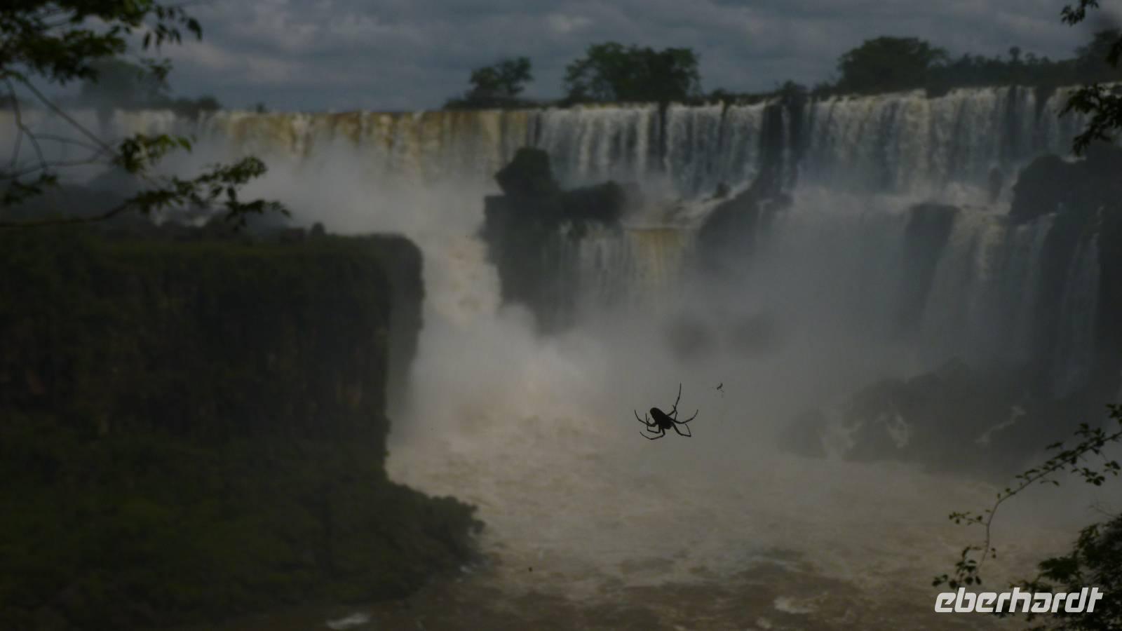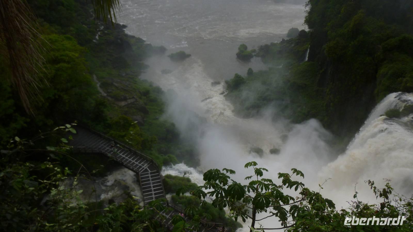Als nächstes wagen wir uns zur Teufelsschlucht. Jetzt heißt es wieder: Regencape anziehen! Man muss die Gicht und die Windrichtung gut beachten, wenn man ein Foto schießen möchte. Doch heute ist es relativ ruhig und man kann den riesigen Wasserfall beobachten ohne sofort klatschnass zu werden.