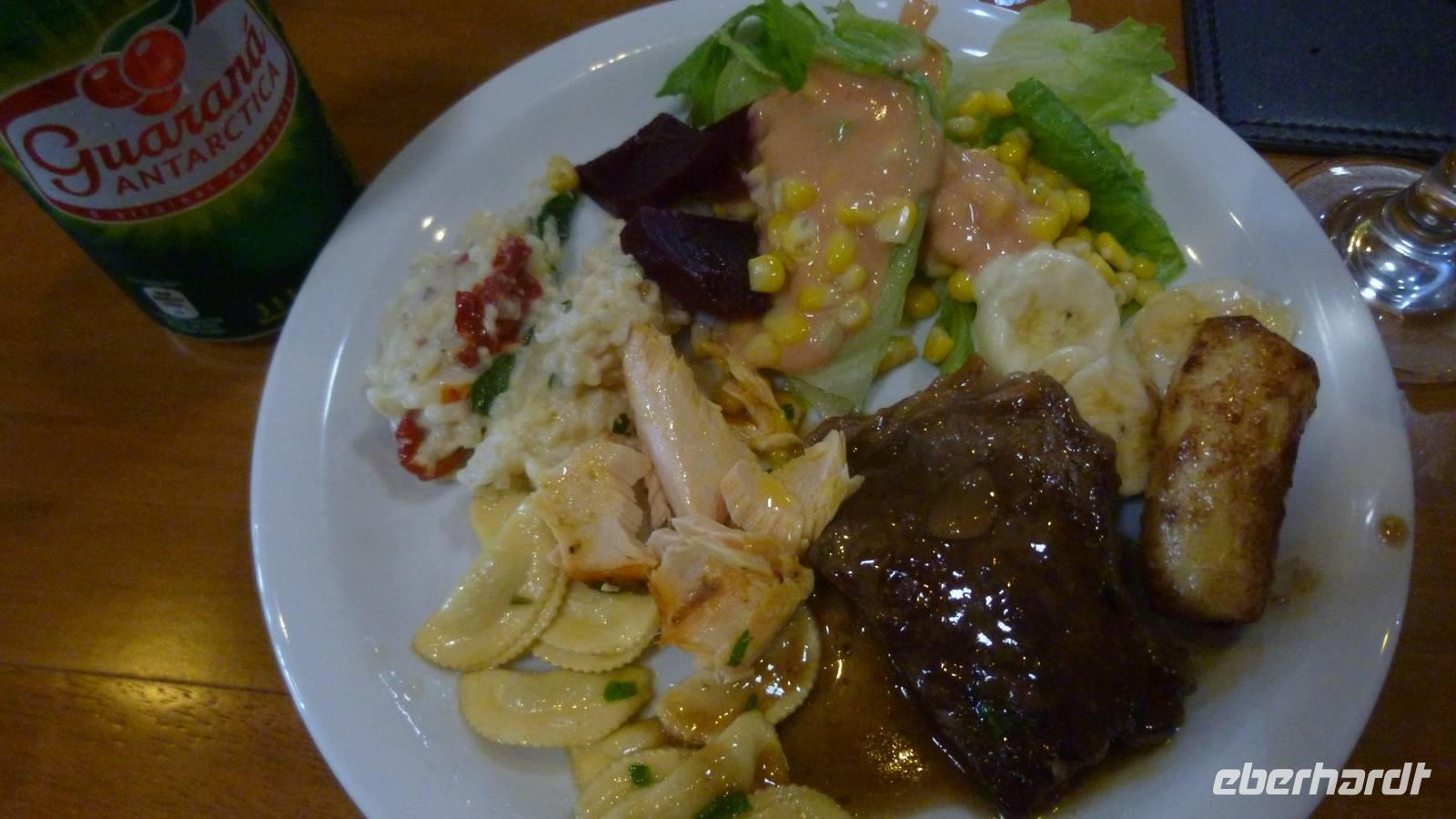 Wir fahren vom Stadtviertel Urca direkt zum Steakhouse "Carretão do lido". Das Prinzip des "churrasco rodizio" haben wir ja schon kennengelernt. Hier wird uns allerdings im Gegensatz zum Restaurant in Paraty ein umfangreiches Buffet geboten.