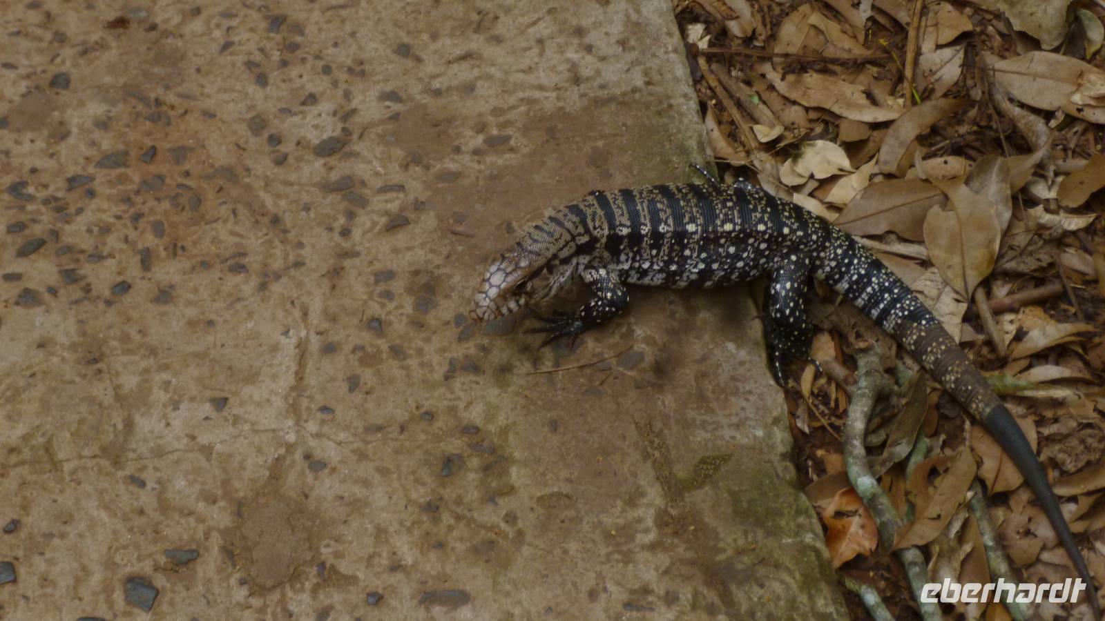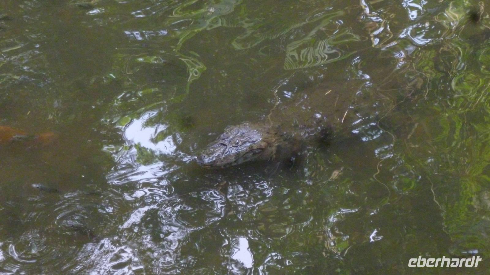 Wir lassen sie wieder frei und hoffen, dass sie uns den Besuch nicht übel nimmt, denn Kaimane sind schon aufgrund des Wassermangels gerade sehr selten anzutreffen.