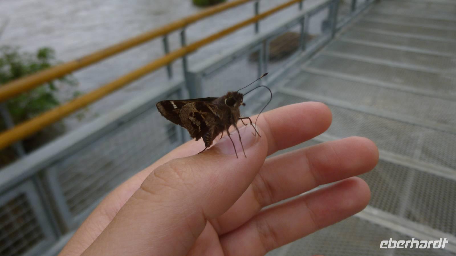 Die Staff von Amazon Village kennt sich aus mit den Tierchen. Einfach einen Besen hinhalten und die Spinne klettert drauf und lässt sich raustragen. Fledermäuse suchen automatisch einen Ausgang sobald die Dunkelheit draußen einbricht. Und die kleinen Äffchen sind zwar neugierig, aber schüchtern. Die sieht man nur wenn man geduldig in der Hängematte entspannt und die Umgebung beobachtet. Nach dem Abendessen, unter anderem mit dem Amazonsfisch Pirarucu, geht es direkt zur Bar. Wir feiern das Bergfest unserer Reise.