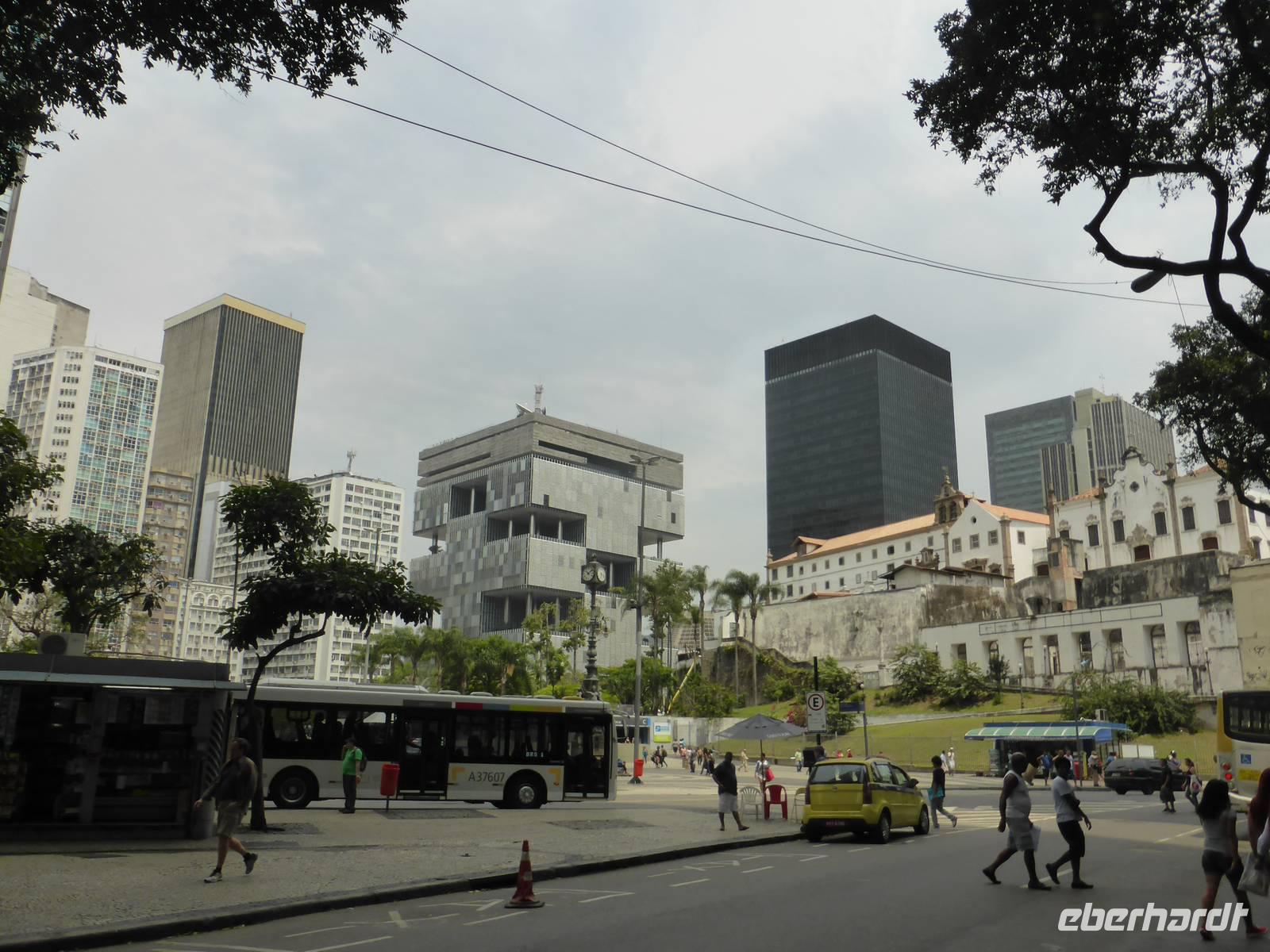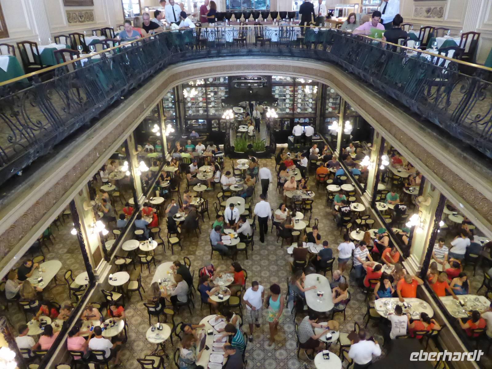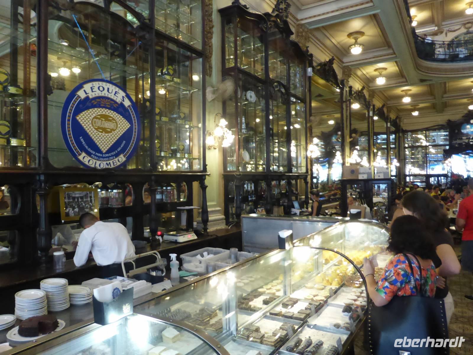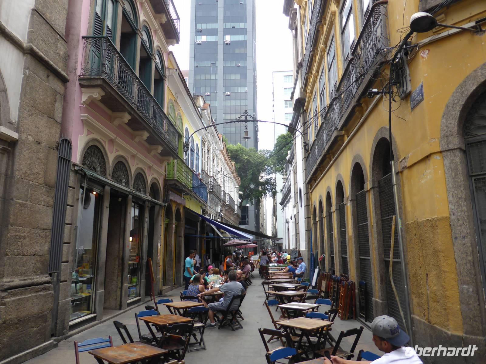Von der Talstation des Zuckerhutes fuhren wir danach ins Stadtzentrum und besuchten das Jugendstil-Restaurant „Confeitaria Colombo". Ende des 19.Jh. im Jugendstil erbaut, hat es sich seinen unverwechselbaren Charme bis heute bewahren können. Ein Original ist der Kellner Orlando, welcher uns mit seinen 78 Jahren bediente und den man mit fast 53 jähriger Betriebszugehörigkeit schon fast zum Inventar zählen kann. Anschließend fuhren wir in den Stadtteil Lapa, zur roten Fliesentreppe „Escadaria do Selaron". Sie ist das Werk des chilenischen Künstlers Jorge Selaron und besteht aus bis zu 2000 Fliesen aus 60 Ländern. Als Maler von Gemälden schwangerer Favela-Frauen bekannt geworden, schuf er mit diesem Lebenswerk eine persönliche Danksagung an Rio und eine vielbesuchte Sehenswürdigkeit. Vom Stadtteil Lapa fuhren wir wieder ins Zentrum und stiegen am Platz des 15.November aus. Wir besuchten eine Ausstellung im Paco Imperial, dem ehemaligen Regierungssitz der Vizekönige und kaiserlichen Stadtpalast und spazierten anschließend durch die lebhaften Gassen der Altstadt.