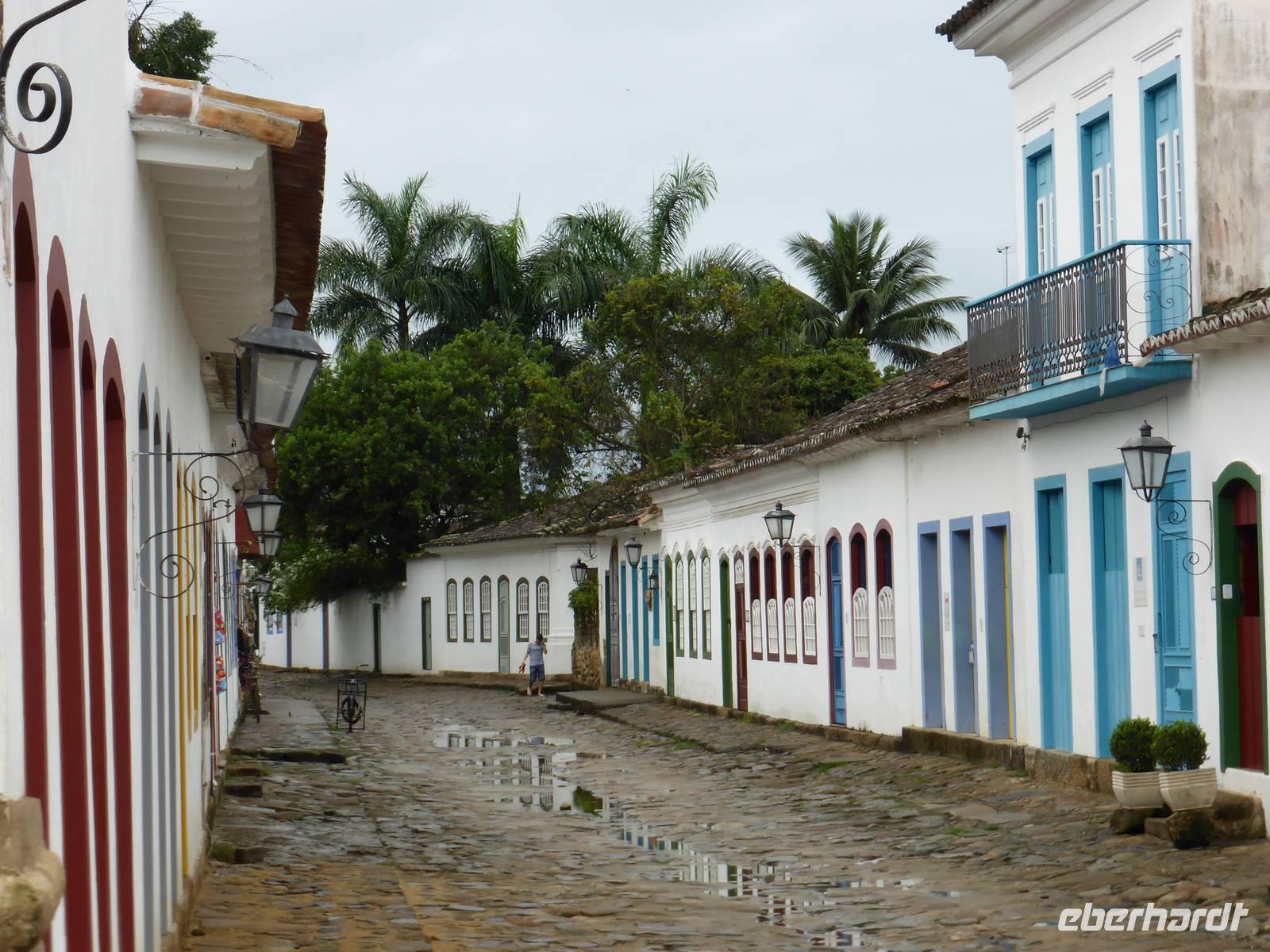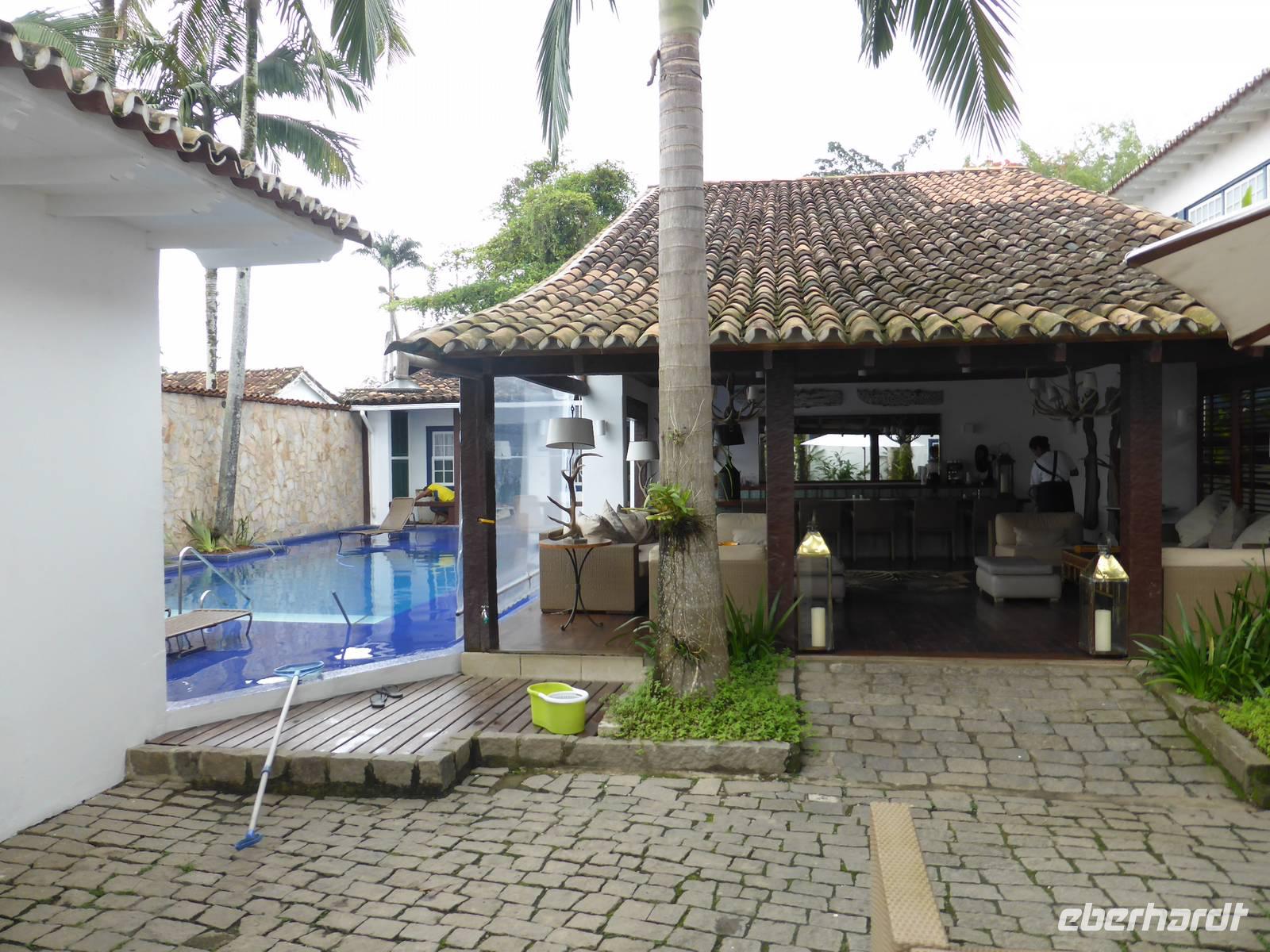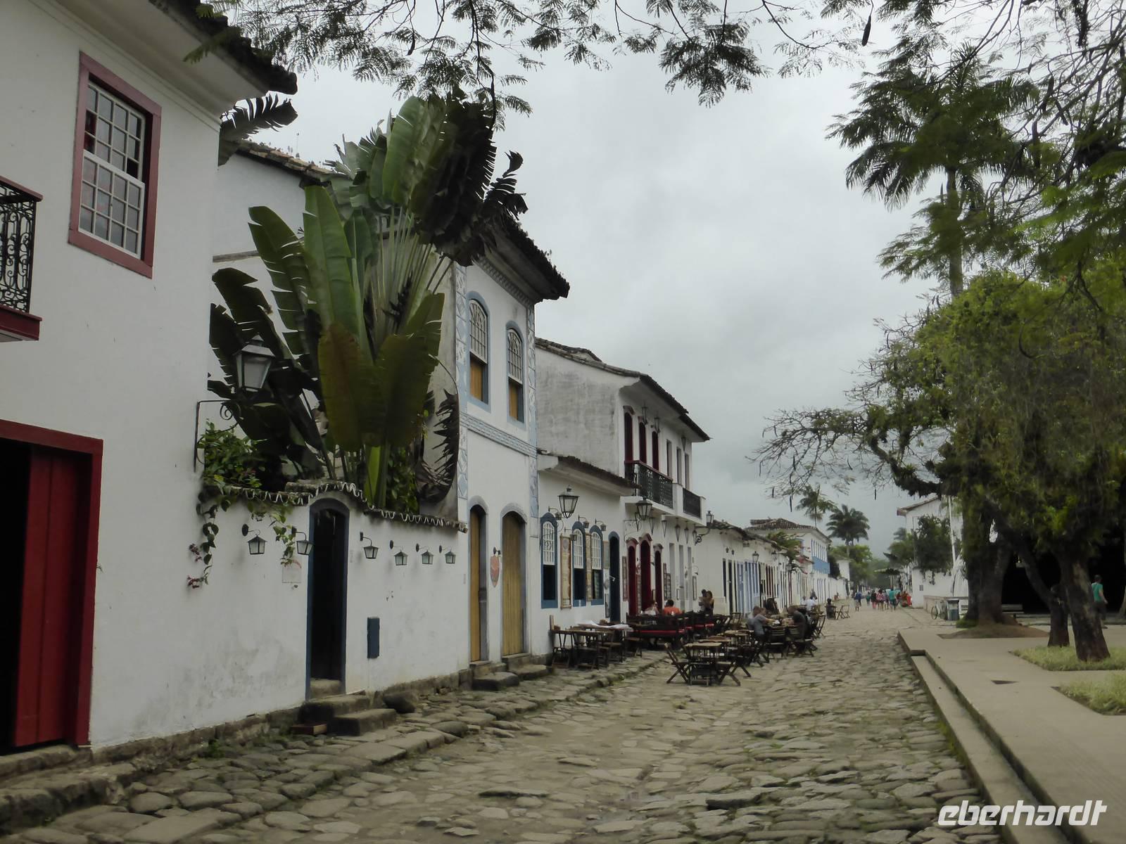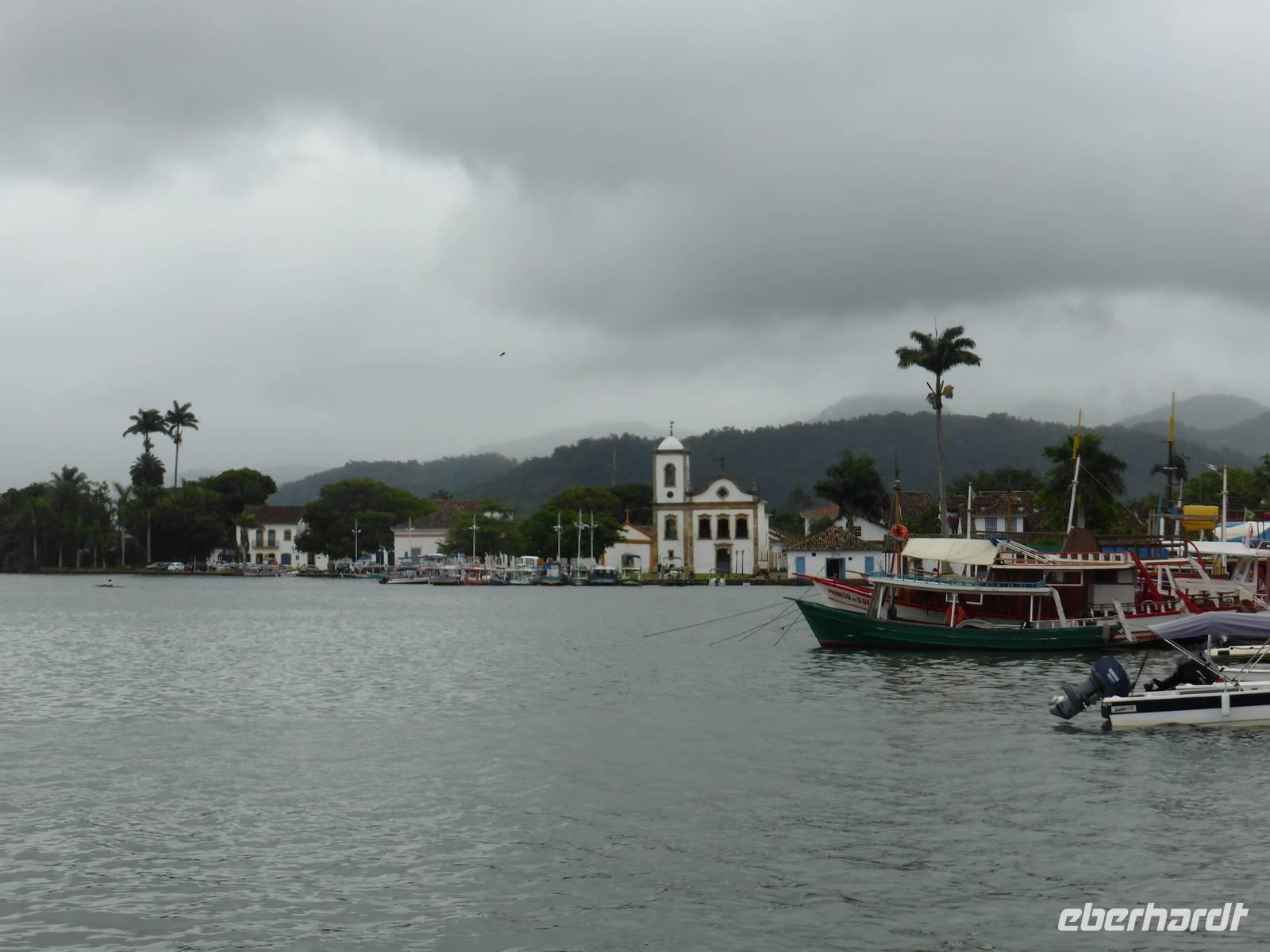 Auf unsere Fahrt ins südlich gelegene Paraty fuhren wir entlang des Atlantischen Regenwaldes. 90% von ihm sind in Brasilien bereits zerstört. Wie üppig grün die Landschaft am gesamten brasilianischen Küstenstreifen ausgesehen haben muss, sieht man heute noch zwischen Rio de Janeiro und Paraty. Circa 265 km lang ist dieser Küstenstreifen der Costa Verde, der grünen Küste. Dazu gesellen sich unzählige Sandstrände und vorgelagerte Inseln. Gegen Mittag kamen wir an unserem Pousada „Porto Imperial" in Paraty an und bezogen unsere Zimmer.