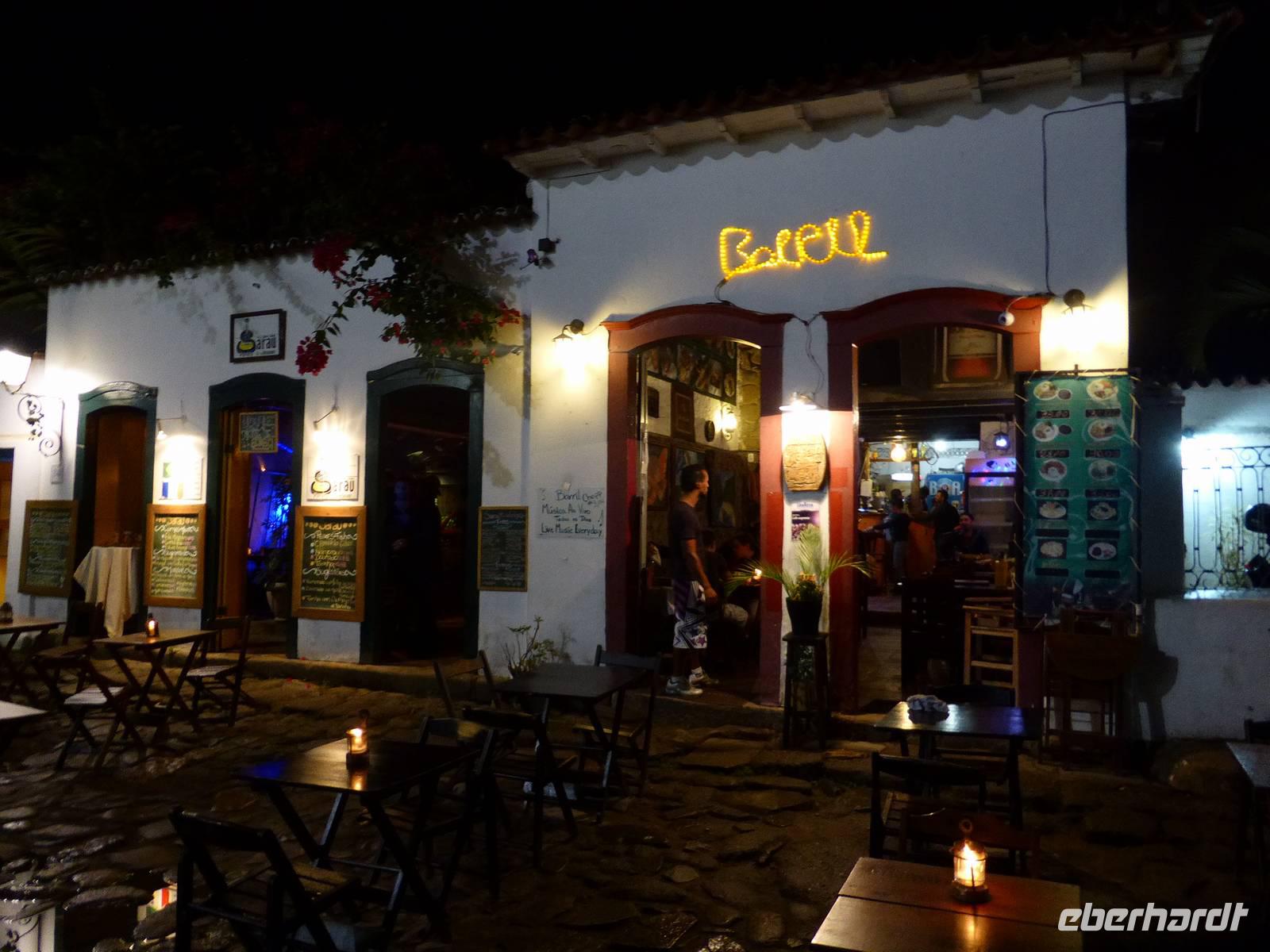 Anschließend wurde uns an Bord ein Mittagessen serviert, welches wir im Vorfeld aus drei Angeboten wählen konnten. Auf der Rückfahrt besserte sich das Wetter etwas, so dass wir in Paraty im Trocknen ankamen. Den Nachmittag konnte dann jeder für sich gestalten. Einige Gäste nutzten ihn für einen Spaziergang und andere für einen Einkaufsbummel in den vielen kleinen Kunstgewerbeläden der Altstadt. Am Abend trafen wir uns dann wieder an der Hotelrezeption, um gemeinsam zum Abendessen ins Restaurant „Cafe Margerida" zu gehen. Das Essen war fantastisch!