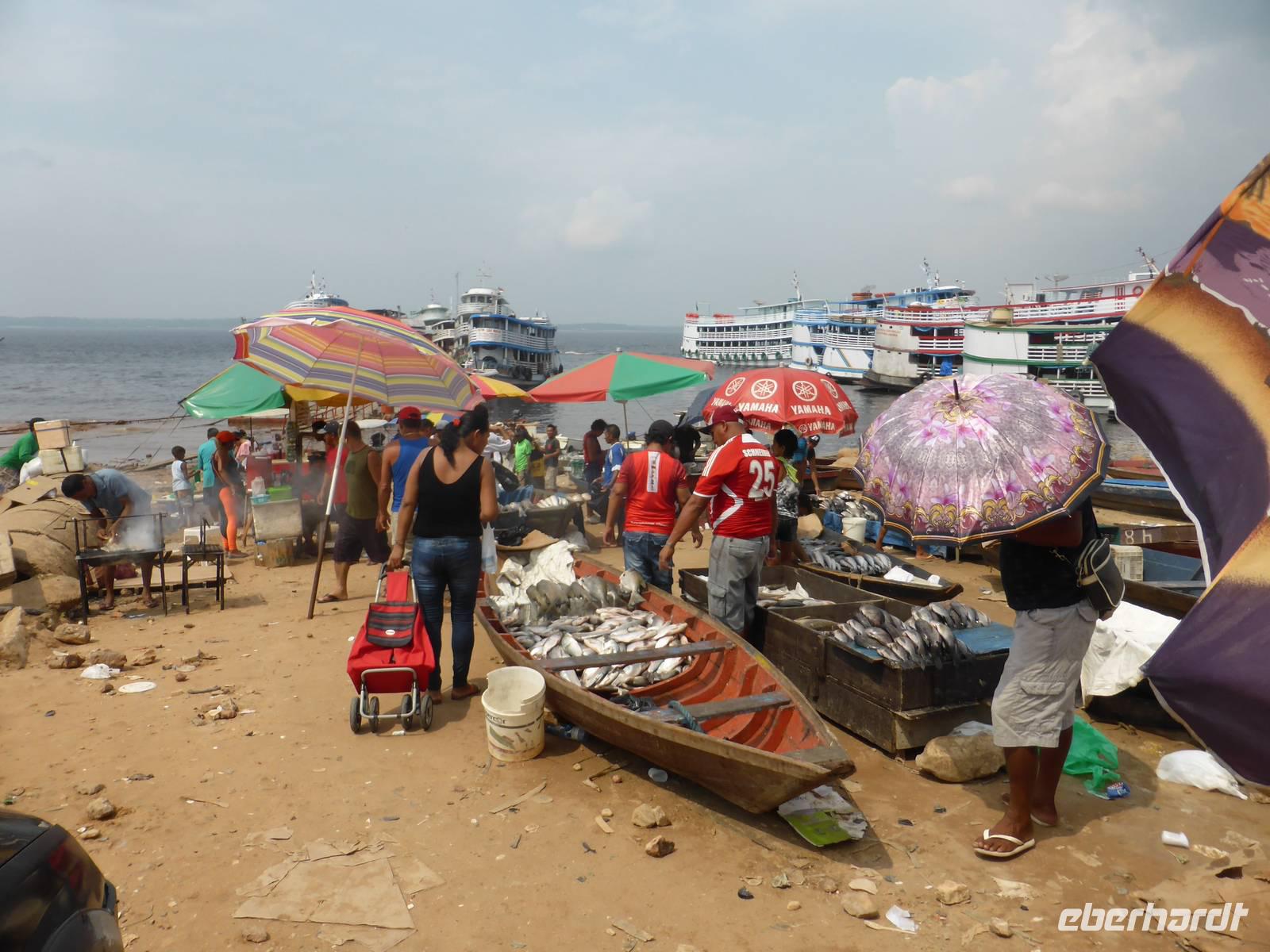 An der Stelle, an der der Rio Negro in den Amazonas mündet beträgt die Wassertiefe 50 Meter! An der Wasseroberfläche konnten wir sogar einige Delfine sehen! Nach dem Frühstück gaben wir unsere Kabinenkarten ab und erhielten dafür unsere Ausschiffungs-Tickets.
