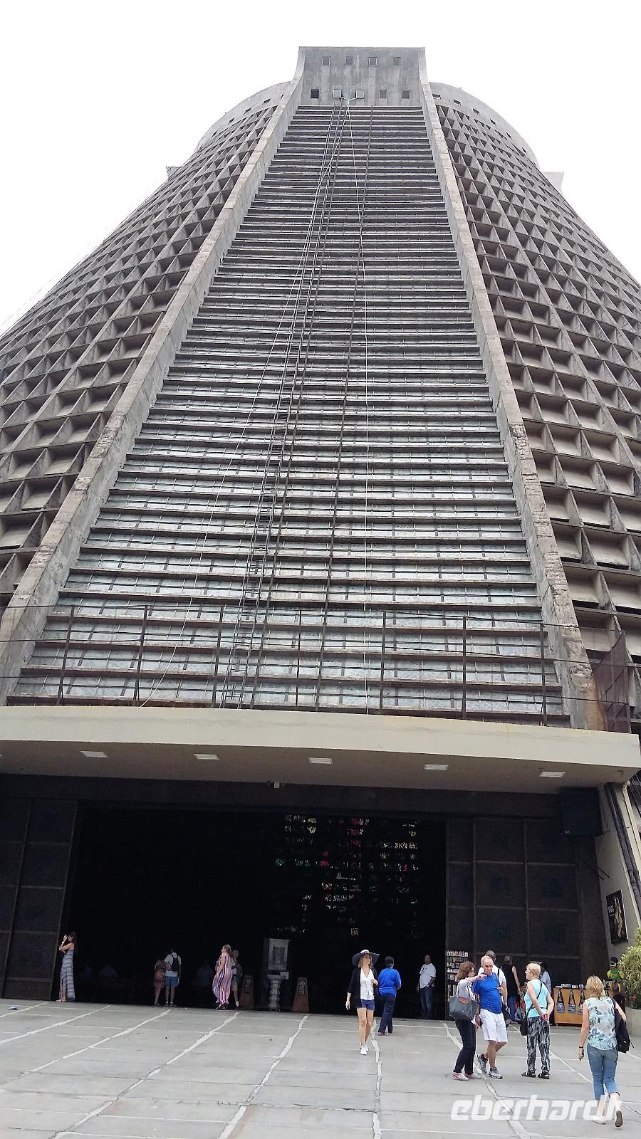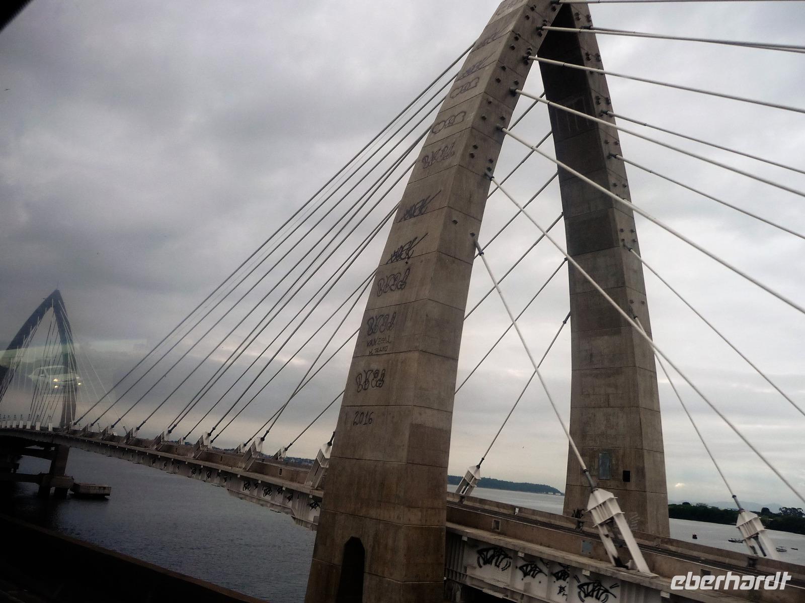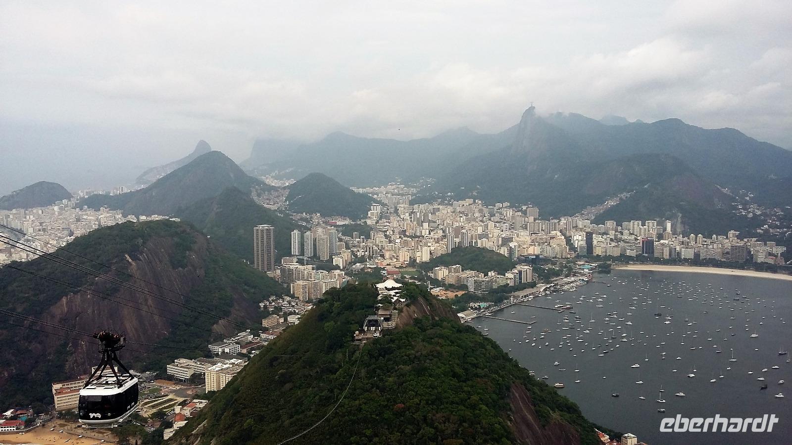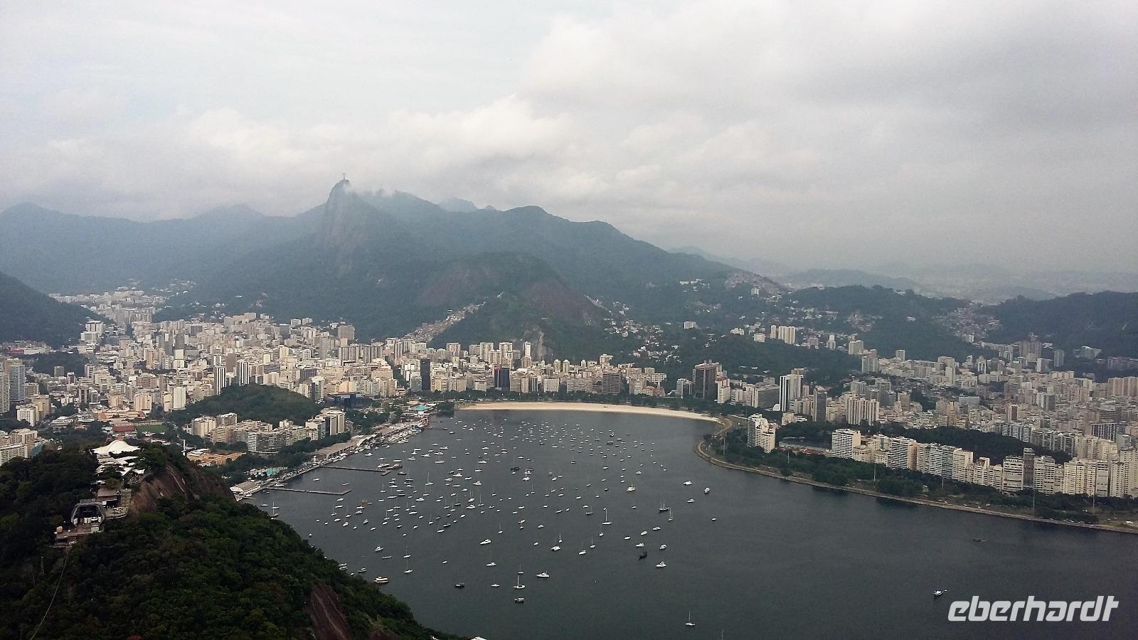 Guten Morgen Rio! Überpünktlich landeten wir in der Stadt des Zuckerhuts und der Copacabana. Ein langer Weg, auf den wir gar nicht eingestellt waren, wartete auf uns vom Ausstieg bis zum Gepäckband. Nach jeder Kurve kam wieder ein langer Gang. Aber was soll's wir hatten ja Zeit. Große Freude herrschte bei allen, als auch der letzte Koffer auf dem Gepäckband zu sehen war. Ganz unkompliziert konnten wir die Zollkontrolle passieren, auch wenn einige von uns nochmal die Koffer durchleuchten lassen mussten. Am Ausgang wartete bereits unsere Reiseleiterin Natalina auf uns. Sie hatte sich schon Sorgen gemacht, da zwischen Ankunft des Fluges und unserer Ankunft bei ihr mittlerweile 1 Stunde ins Land gegangen war und sie extra zeitiger aufgestanden war, weil sie gesehen hatte, dass Lufthansa zeitiger in Rio sein würde. Aber so ist es halt, wenn man unterwegs ist, es lässt sich nicht alles minutiös planen. Mit einem Kleinbus, in dem wir alle bequem Platz hatten, ging es dann zu unserem Hotel Windsor an der Copacabana. Bereits auf der Fahrt über die Schnellstraße sahen wir den Corcovado mit der Christusstatue in der Ferne. Durch den über 4 km langen Tunnel, fuhren wir sogar direkt unter der Statue hindurch und Christus breitete sein Arme im wahrsten Sinne des Wortes über uns aus. Einen ersten Eindruck bekamen wir auch schon von den Favelas, die entlang der Straße immer wieder zu sehen waren. Natalina erzählte uns, dass hier nicht nur Obdachlose uns Kriminelle wohnten, sondern auch viele normale Arbeiter, die sich die teuren Eigentumswohnungen der Innenstadt und an den Stränden nicht leisten können. Natürlich stand unser Blickwinkel auf Rio immer noch unter dem Eindruck der Olympiade. An der Lagune, wo die Ruder- und Kanuwettbewerbe ausgetragen wurden, erinnerten wir uns daran, wie das Wasser erstmal gereinigt werden musste. Aber es war schön zu sehen, dass es hier auch einen einheimischen Ruderclub gibt, der hier schon am frühen Morgen fleißig trainierte. Noch eine kurze Fahrt und wir waren bereits um 8.00 Uhr im Hotel. Mit ganz viel Glück bekamen wir sogar schon alle unsere Zimmer, womit wir gar nicht gerechnet hatten. Was für ein Luxus! Etwas Zeit zum Frischmachen und dann ging es schon kurz vor um 9 zu den ersten Erkundungen. Zunächst fuhren wir zum Zuckerhut, um mit der Seilbahn den Gipfel zu erklimmen. Unser erstes Teilstück führte uns bis auf yy m Höhe, wo wir bereits einen wunderbaren Ausblick auf die Bucht hatten, auch wenn sich die Christusstatue auf dem Corcovado gegenüber nur ab und zu zeigte. Weiter ging es dann auf dem zweiten Teilstück hinauf auf den Berg. Wir erfuhren, dass der Zuckerhut in allen anderen Sprachen Zuckerbrot heißt, da er einer Süßigkeit ähnelt. Nur die Deutschen verwenden den Namen Zuckerhut. Natürlich durfte ein Foto von jedem mit Blick auf die Copacabana nicht fehlen. Geduldig warteten wir, bis sich die Christusstatue auf der anderen Seite zwischen den Wolken hervorschob. Zusätzlich kamen wir noch in den Genuss, den majestätisch dahinschwebenden Fregattvögeln zuzuschauen. Weiter führte uns unsere kleine Rundfahrt durch die Altstadt bis zur neuen Kathedrale von Rio. Ein komisches Gebäude von außen, aber sehr interessant von innen. Schade, dass es kein Konzert gab, um die Akustik zu testen. Und nun stand noch das Sambadrom auf dem Programm. Wir waren überrascht, dass die Strecke für die Umzüge nur so kurz ist. Sogar von hier aus hatte man einen Blick direkt zu einer Favela, die aber von den Bewohnern bunt angemalt wurde, damit es schöner aussieht. Beim nächsten Karneval werden wir bestimmt ganz genau im Fernsehen den Umzug anschauen. Beim Ausstieg gab es die Möglichkeit, eines der Kostüme anzuprobieren, aber wir begnügten uns damit, den anderen Touristen dabei zuzusehen und das eine oder andere Foto zu schießen. Im Hotel zurück, trafen wir uns auf der Dachterrasse zu einem Begrüßungs-Caipirinha. Hoch über der Stadt genossen wir das für Rio und Brasilien so typische Getränk. Danach konnte sich jeder erstmal etwas einrichten und frisch machen, bevor wir uns zu einem Strandspaziergang trafen. Gemeinsam machten wir uns auf zur Copacabana. Da es doch etwas windig war und die Sonne nicht ständig schien, gingen wir nur mit den Füßen ins Wasser, aber die Wellen überraschten uns doch immer mal und so mancher hatte nasse Hosenbeine oder Schuhe. Auf dem Rückweg zum Hotel gingen wir entlang der Avenida und spätestens am 3. Kiosk kam der Durst auf ein frischgezapftes Bier. Also suchten wir uns einen netten Kiosk aus und stießen auf unsere gemeinsame Reise an.