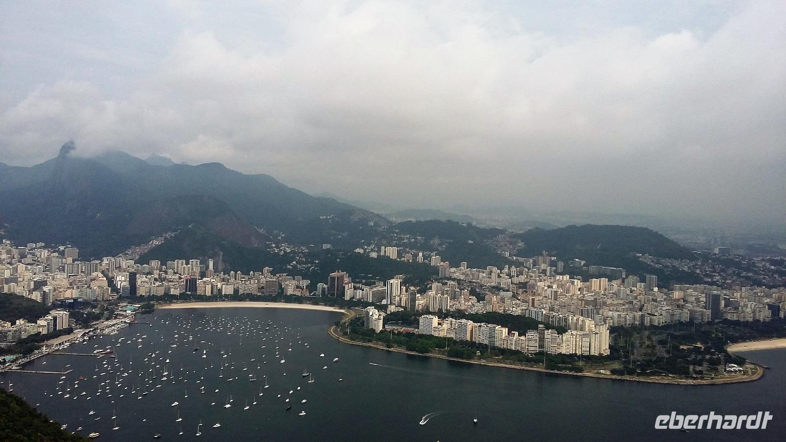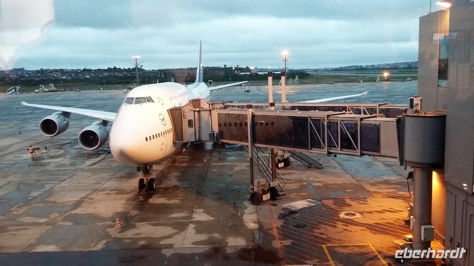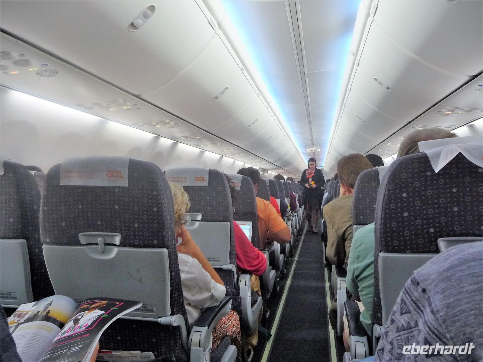 Pünktlich um 17.15 Uhr traf ich mich gemeinsam mit 5 Reisegästen am Flughafen Dresden. Da wir bereits online eingecheckt waren, ging die Gepäckabgabe ganz schnell. Bei einem kleinen Snack hinter der Kontrolle lernten wir uns bereits etwas kennen. Als wir bereits im Flieger von Dresden nach Frankfurt saßen, bekam ich von den Gästen aus Leipzig eine SMS, dass ihr Flug ca. 1 Stunde Verspätung haben sollte. Da wir genügend Umsteigezeit in Frankfurt hatten, gab es keinen Anlass zur Sorge. Sicherheitshalber nahmen wir noch Kontakt mit der Zentrale von Eberhardt auf, im Falle sich die Verspätung weiter hinauszögern würde, da ich mein Handy auf dem Flug ausschalten musste. In Frankfurt angekommen, atmete ich erstmal durch, denn der Flug von Leipzig war gestartet und wir konnten gemeinsam die Weiterreise nach Rio antreten. Da wir noch vom Ankunftsgate A zum Abfluggate C14 laufen und nochmal die Gepäckkontrolle passieren mussten, hatten wir doch fast 45 min zu tun. An der Passkontrolle probierten wir alle die elektronische Variante, was wunderbar klappte. So mussten wir uns nicht an der langen Schlange der manuellen Kontrolle anstellen. 21.00 Uhr trafen dann auch die Leipziger Gäste zu uns, die sich tapfer allein durch die ganze Prozedur gekämpft hatten. Nun war unsere kleine Truppe von 8 Personen + mich komplett. Pünktlich ging es an den Einstieg ins Flugzeug und unsere Boing „Köln" brachte uns sicher und gut nach Rio. Statt den ausgeschriebenen knapp 12 Stunden brauchten wir tatsächlich unter 11 Stunden Flugzeit.