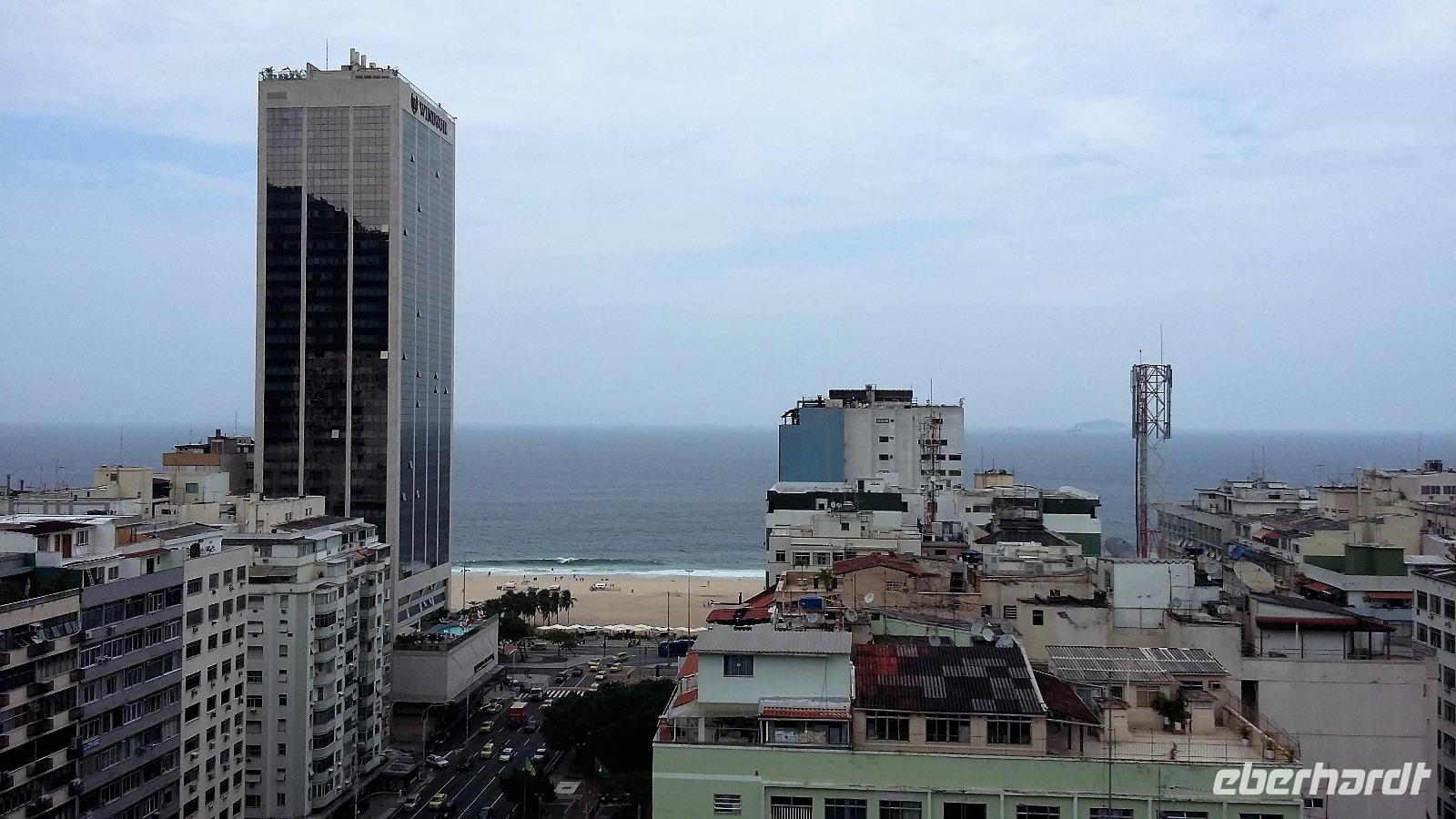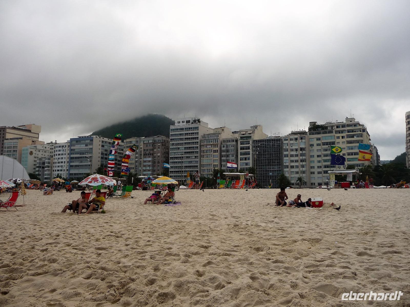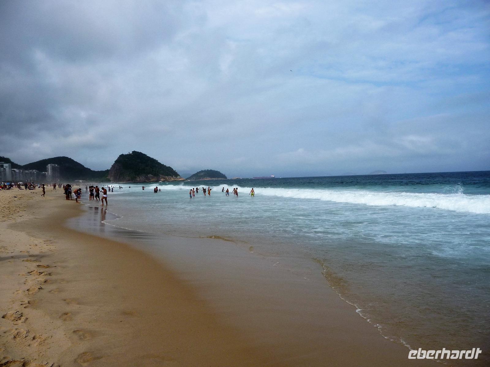 Nun stand die Entscheidung, Corcovado ja oder nein. Wir versuchten unser Glück, konnten aber auf dem Monitor an der Kasse sehen, dass die Statue komplett in Wolken gehüllt war. Natalina unterbreitete uns den Vorschlag, es zeitig am nächsten Morgen zu versuchen und wenn alle einverstanden sind, früh bereits zeitig vom Hotel aufzubrechen. Natürlich stimmten wir alle zu. So fuhren wir entlang der Lagune und der Strände von Leblon und Ipanema zum Hotel zurück. Die freie Zeit nutzten alle, um etwas an der Copacabana zu bummeln und auf dem kleinen Markt, der am Wochenende stattfindet, nach Souvenirs zu stöbern. Am Abend trafen wir uns wieder alle und suchten gemeinsam nach einem Restaurant. Schnell waren wir uns sicher, dass wir im Freien sitzen möchten und fanden eine Gelegenheit. Gemütlich ließen wir den Abend ausklingen.