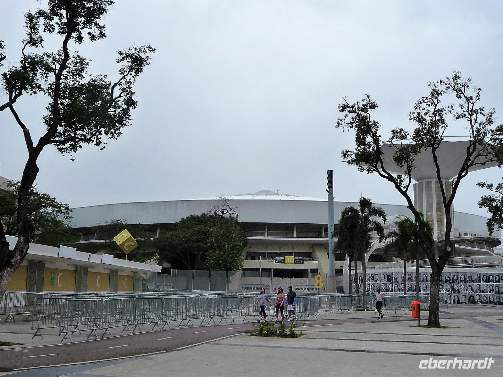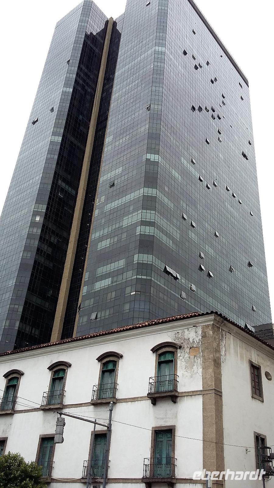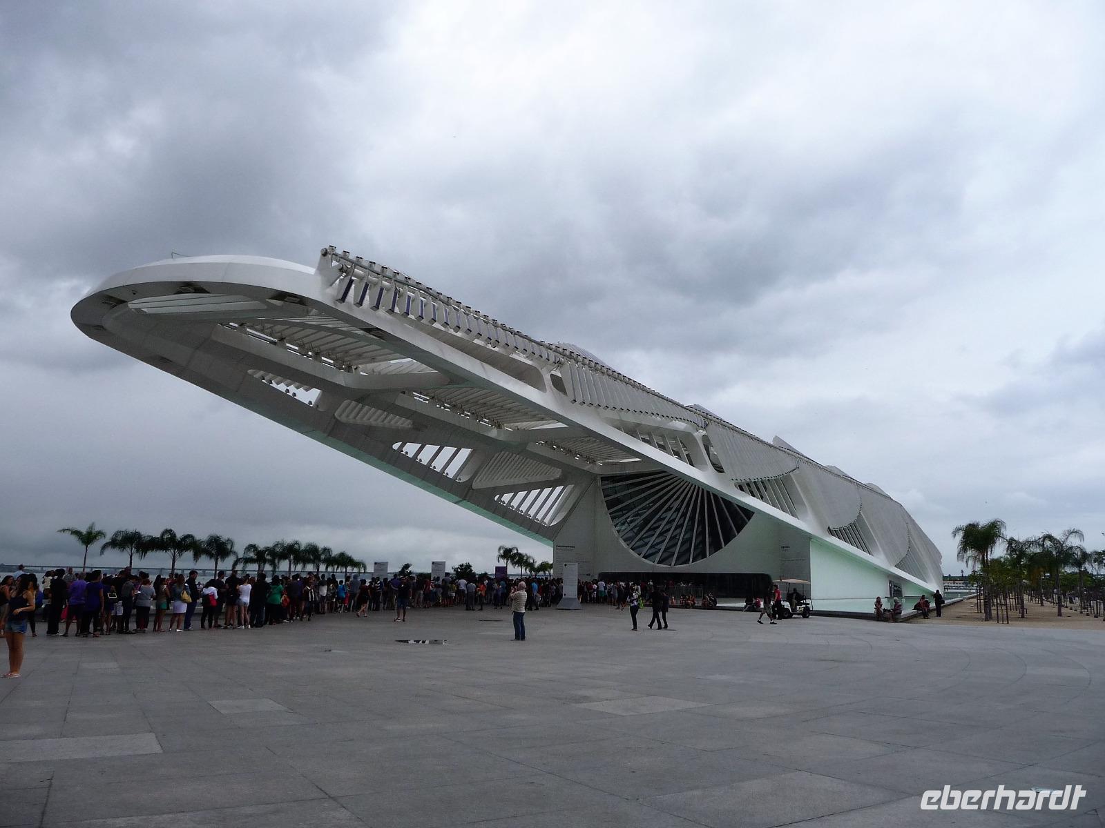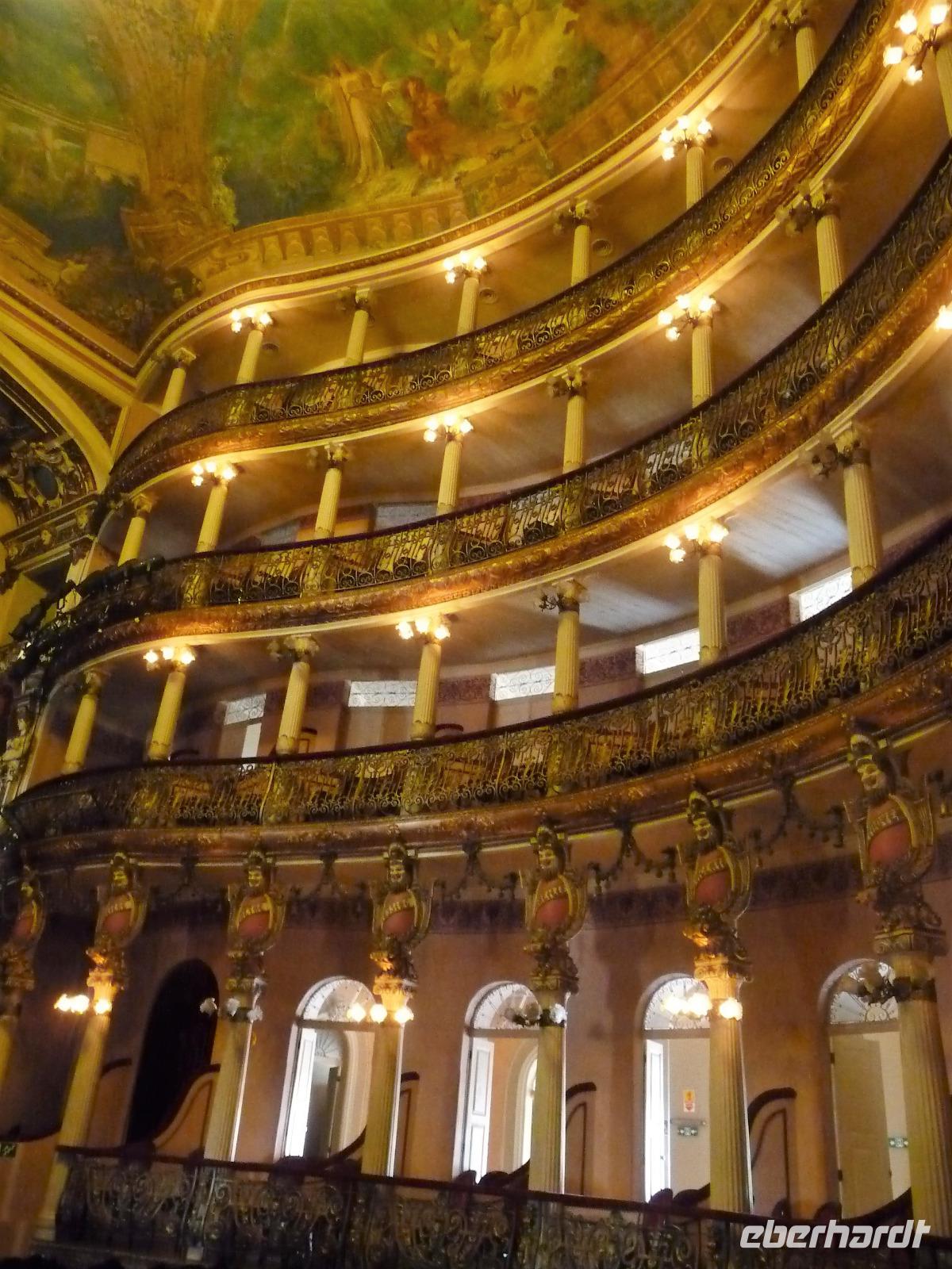 Der heutige Tag stand ganz im Zeichen von Rio. Gut gestärkt vom ausgezeichneten Frühstücksbüffet wollten wir heute den Corcovado erkunden. Da es aber wettermäßig nicht so gut aussah, hatte Natalina unsere Auffahrt auf den Nachmittag verschoben und wir fuhren zuerst in die Altstadt. Am Platz des 15. November, der für die Cariocas ein ganz besondere historische Bedeutung hat, stiegen wir aus. Natalina gab uns eine Einführung in die Geschichte der Stadt, dabei standen wir direkt auf den Straßenbahnschienen, die eigentlich zur Olympiade fertig sein sollten. Bisher ist nur ein Teil der Strecke in Betrieb, mal sehen, ob bei unserem nächsten Besuch in Rio alle Strecken befahren werden. Ein kurzer Abstecher führte uns zu einem Kanonenkugelbaum, den einige von uns bereits auf anderen Reisen gesehen hatten, aber noch niemand in voller Blüte. Toll!!! Wunderschön und völlig überrascht waren wir vom Inneren der alten Kathedrale. Wunderbar die komplette Innenausstattung aus Holz mit goldener Bemalung, prunkvoll aber nicht zu überladen. Hier konnten wir uns alle vorstellen, dass so mancher seine Hochzeit gern hier feiert. Unser Spaziergang führte uns weiter durch die Altstadt von Rio, wo doch noch so manches alte Gebäude zwischen den meist nicht so ansehnlichen Hochhäusern zu finden war. Leider sind die meisten der kleinen Häuser nicht restauriert, schön, dass sie aber wenigstens von vielen Restaurants entdeckt wurden. Entlang der zur Olympiade angelegten Promenade am Meer spazierten wir vorbei am alten Hafen bis zum modernen Gebäude des Museums der Zukunft. Futuristisch ragt das Schiff auf einer Länge von bis über die Bucht. Da es nach Regen aussah, entschied sich Natalina noch vor dem Mittagessen mit uns zum Maracana-Stadion zu fahren. Leider durften wir nur von außen ein Foto machen, da das Stadion erst am nächsten Tag mit einem Fußballspiel nach der Olympiade wiedereröffnet wurde. So blieb nur für ein kurzes Foto und den Kauf einiger Neymar-Shirts für die Enkel. Unser Mittagessen war heute im Programm enthalten. In einer der ältesten Kaffeehäuser Rios fuhren wir mit einer Art Paternoster in die erste Etage, natürlich von einem Liftboy begleitet. Die historischen Räume begeisterten uns alle und dazu hatten wir das Glück, dass am Samstag Fejada-Tag ist und wir uns nach Herzenslust am Büffet bedienen durften. Die Schweineohren und -schwänze fanden aber den Weg auf unsere Teller nicht. Dafür genossen wir die anderen Leckereien.