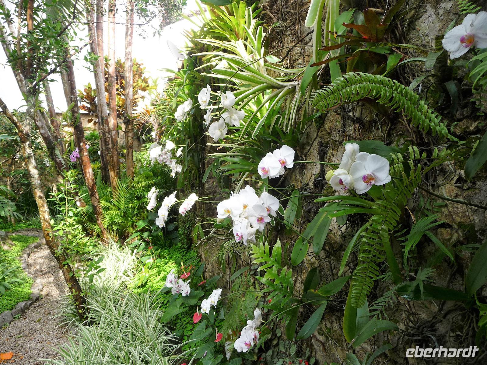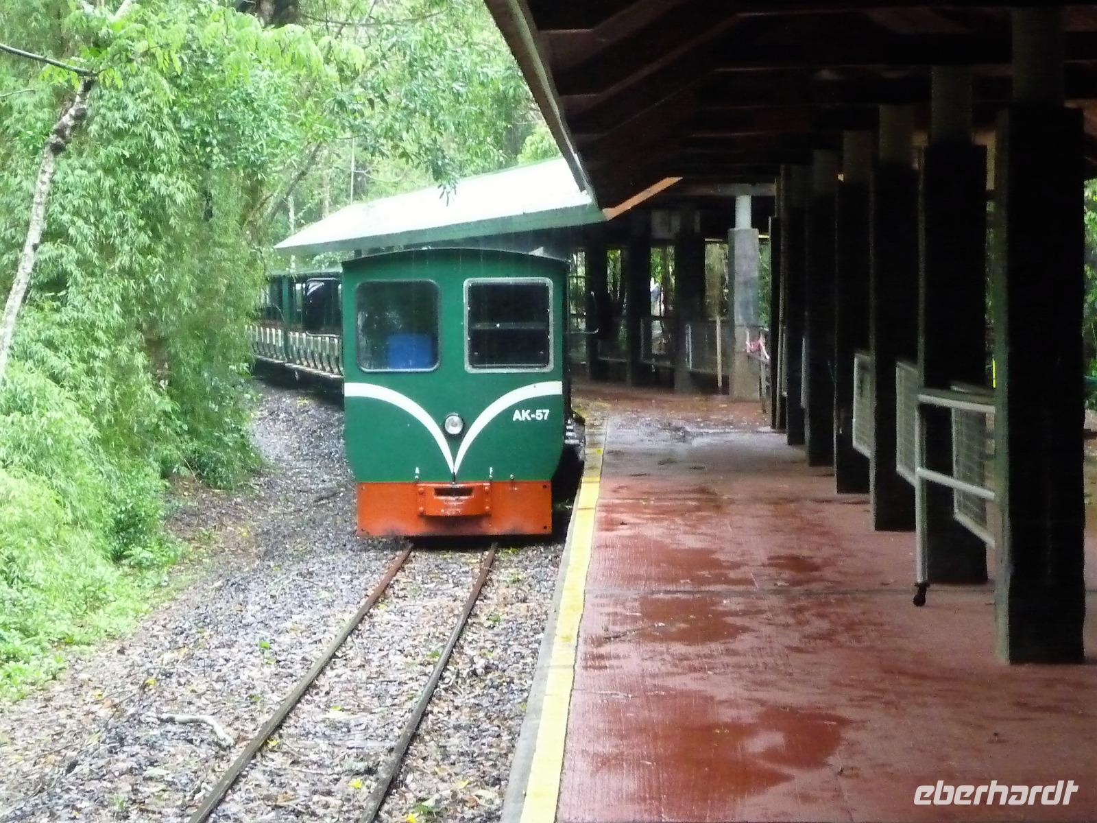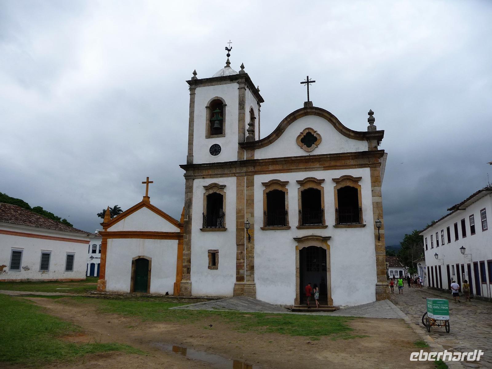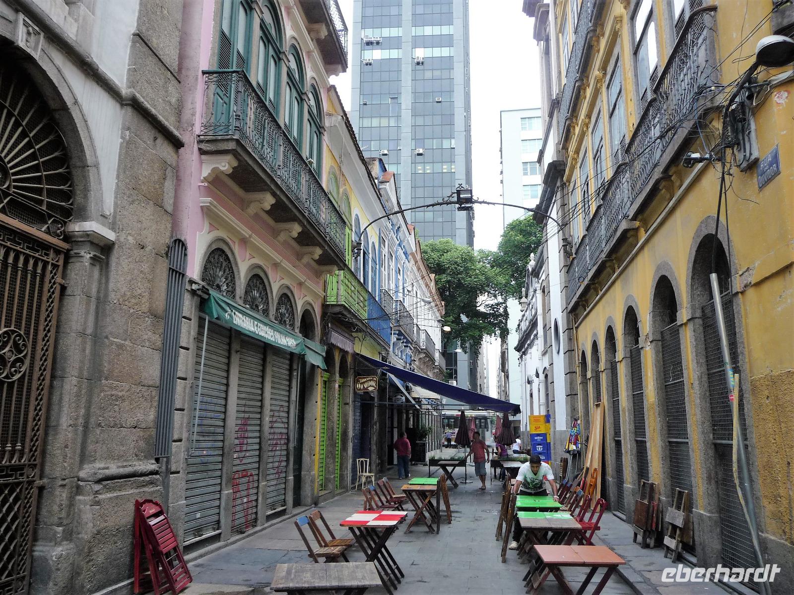 Mit Sack und Pack trafen wir uns in der Lobby des Hotels, denn wir wollten noch ins 4 Fahrstunden entfernte Paraty. Auch Natalina bestätigte uns, dass sie am Morgen die Christusstatue von ihrer Wohnung aus sehen konnte. Voller Vorfreude machten wir uns auf den Weg und waren die ersten, noch vor der Öffnung um 8.00 Uhr, die am Bahnhof der Zahnradbahn eintrafen. Wir hatten ja unsere vorreservierten Karten vom Vortag zurückgegeben und mussten uns heute an der allgemeinen Kasse anstellen. Schon die Fahrt mit der Bahn hinauf war ein Erlebnis. Mittlerweile hatte sich der Himmel aber zugezogen und es fing sogar an zu regnen. Wir waren schon etwas traurig, aber was soll's, wir hatten alles versucht und mussten nun das Wetter so nehmen, wie es war. Wir befanden uns nun mal im wahrsten Sinne des Wortes im Regenwald. In unsere Regensachen gehüllt stiegen wir in den Fahrstuhl, der uns zum Gipfel brachte. Immerhin war die Statue von Nahem zu sehen, s o dass wir das eine oder andere Foto machen konnten. Beim Hinuntergehen zum Fahrstuhl über die Treppe stellte Natalina fest, dass es auf einmal besser wird und wir vielleicht doch nochmal hinauf fahren sollten. Und es hat sich gelohnt, wir bekamen unser Foto vom Christus, bevor wir nach Paraty aufbrachen. Eine ca. 4-stündige Fahrt lag vor uns. Entlang der Costa Verde kamen wir am Nachmittag in unserer Pousada an. Bereits auf der Fahrt hatte Natalina von Paraty geschwärmt und natürlich waren wir dementsprechend auf den so besonderen Ort gespannt. Bereits bei der Ankunft wurden wir in unserem kleinen Bus kräftig durchgeschuckelt und konnten erahnen, was das alte Pflaster für uns die nächsten Tage bereithielt. Wunderschön und gemütlich war unsere Pousada und alle Zimmer ganz unterschiedlich. Der hübsche Garten mit einem kleinen Pool und einer Bar für den Abend wurde bereits kurz erkundet, bevor wir uns mit unserer örtlichen Reiseleiterin Daniela für den Rundgang durch Paraty trafen. Es war gar nicht so einfach und ganz schön anstrengend über das Pflaster zu laufen und immer daran zu denken, stehenzubleiben, wenn man ein Foto machen wollte. Wir staunten, welche Summen aktuell für die Häuser auf dem brasilianischen Immobilienmarkt gefordert werden. Es waren aber auch Schmuckstück dabei! Vor allem die Geschichte des Ortes, der viele Jahre in einer Art Dornröschenschlaf verfallen war, faszinierte uns. Kaum zu glauben, dass hier früher riesige Mengen an Gold auf die Schiffe Richtung Rio geladen worden. Bereits auf dem Spaziergang durch die Gassen, fiel so mancher Blick in die kleinen Kneipen und netten Kunsthandwerksgeschäfte. Auch am Hafen, von dem wir am nächsten Tag einen Ausflug unternehmen wollten, schauten wir kurz vorbei. Zum Schluß des Rundgangs probierten wir den bekannten Zuckerrohrschnaps von Paraty in verschiedensten Sorten. So manches kleine Fläschchen fand auch den Weg in unser Reisegepäck.