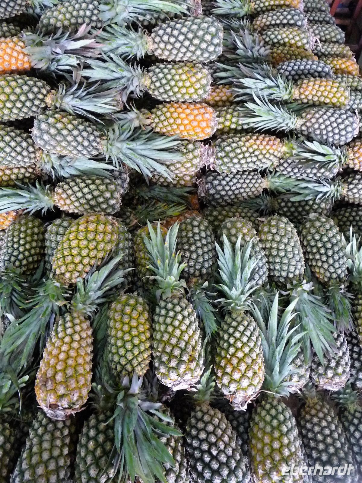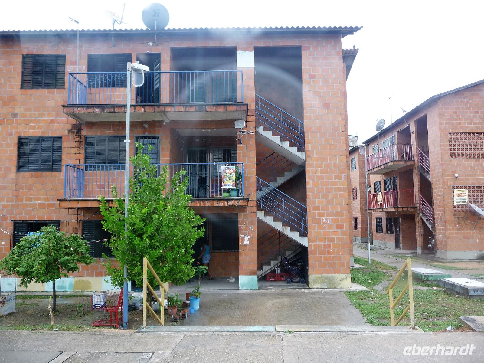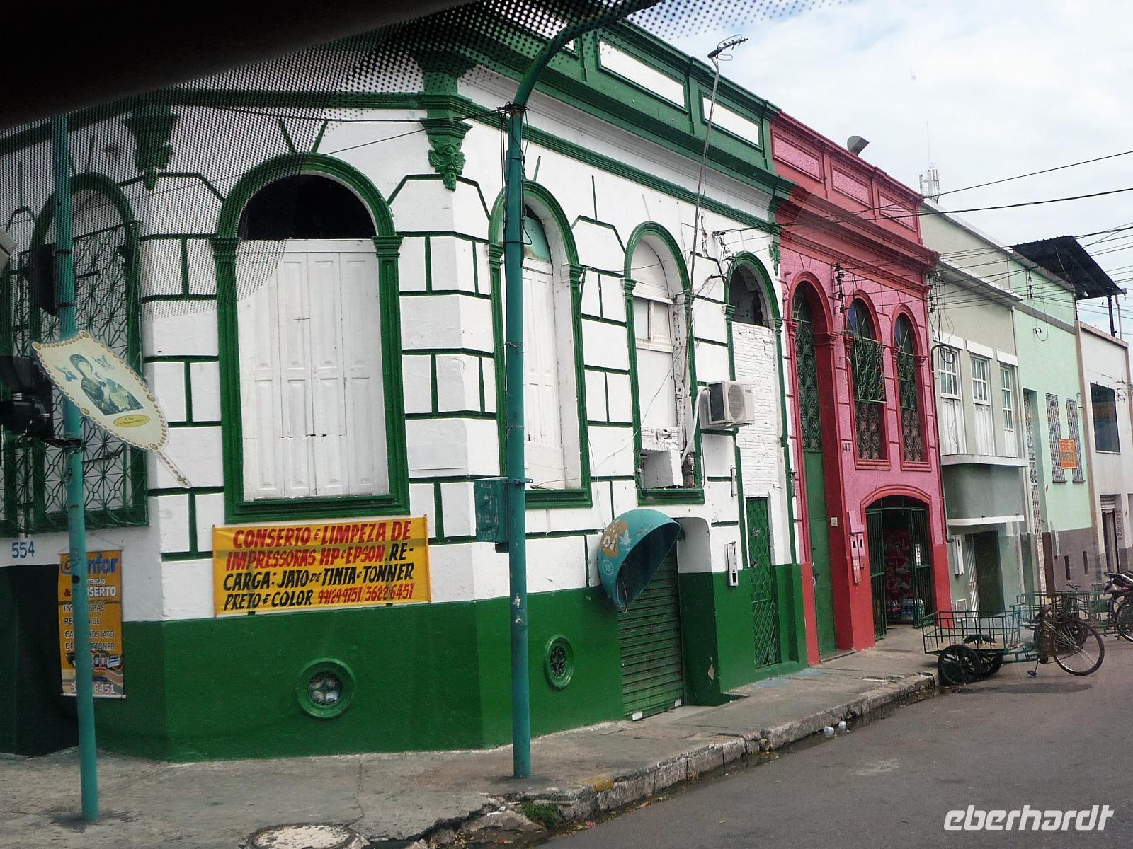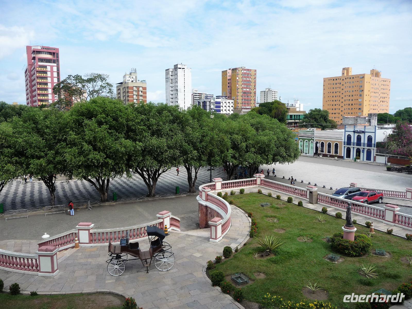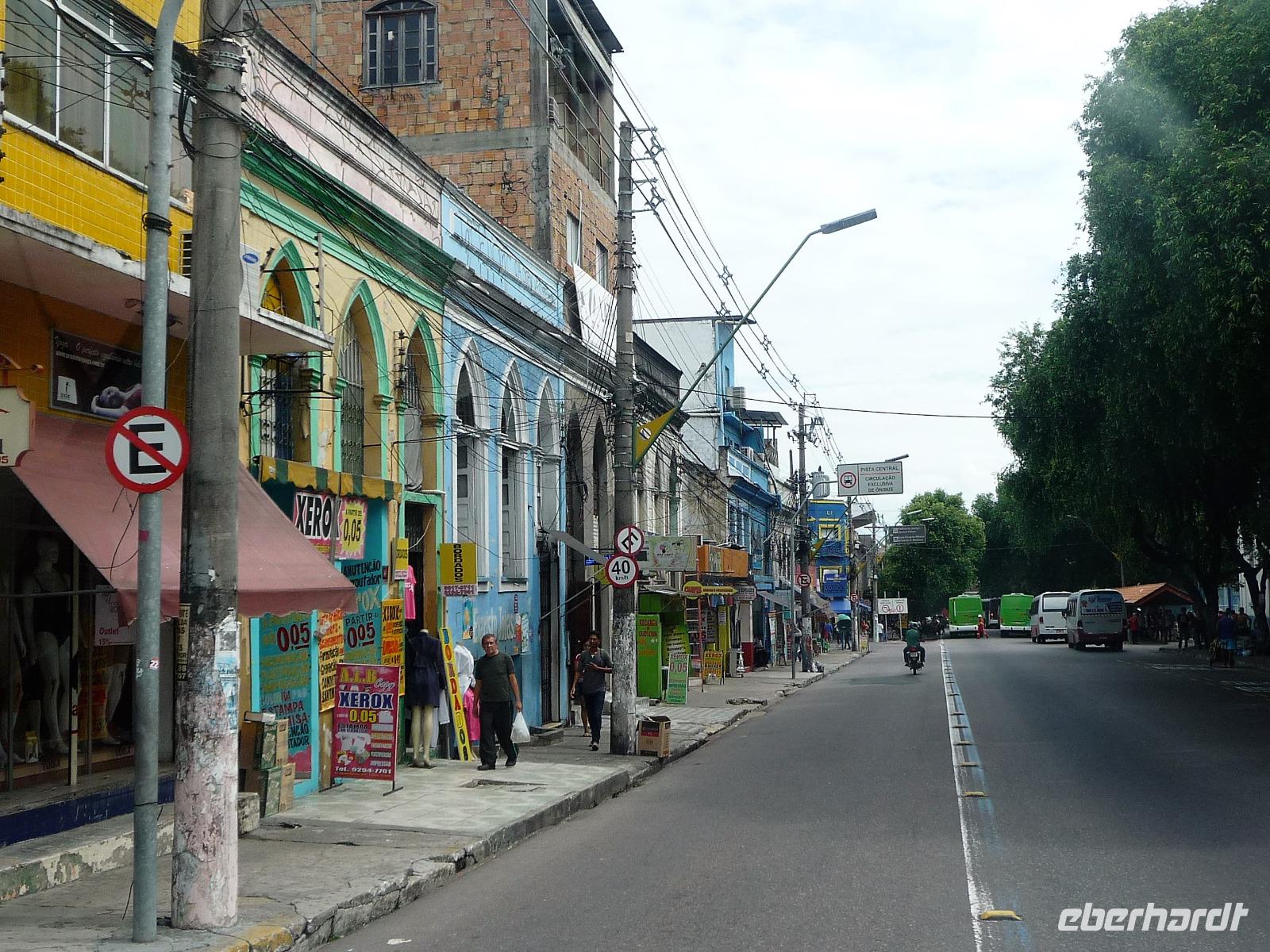 Ein ganz besonderes Ereignis erwartete uns am frühen Morgen, denn wir konnten den Zusammenfluss von Rio Negro und Rio Solimoes, den sogenannten Encontro das Aguas, ganz von Nahem erleben. Erst von hier ab, ist der Amazonas tatsächlich der Amazonas. Mehrere Kilometer lang dauert aufgrund der unterschiedlichen Fließgeschwindigkeit und des unterschiedlichen Wärmegrades das Vermischen des „schwarzen" Rio Negro und des schlammig-braun wirkenden Solimoes, wirklich ein Naturwunder an dem man sich nicht sattsehen kann, denn immer wieder zeigen sich neue Bilder - fast wie Kunstwerke aussehend - auf der Wasseroberfläche. Nach dem Frühstück hieß es dann „alle Mann von Bord" und unsere Reiseleiterin Maria erwartete uns bereits, um uns den zweiten Teil der Stadtrundfahrt von Manaus zu zeigen. Zuerst fuhren wir zum sogenannten Bananenmarkt. Riesige Bananenstauden, aber auch herrliche andere tropische Früchte ließen uns immer wieder staunen. Maria erzählte uns nebenbei so manche kleine Geschichte und der Rundgang über den Markt verging wie im Flug. Ein ungewöhnliches Andenken für 1 Real kauften wir uns bei einem Händler, eine getrocknete Schuppe des größten Amazonasfisches, den die Einheimischen als Nagelfeile verwenden. Besonders interessant war der großte Teil des Fischmarktes, erstaunt stellten wir fest, dass es keinen komischen Fischgeruch gab. Fangfrisch wurde hier der tollste Fisch präsentiert und verkauft. Außerhalb der Markthallen sahen wir die kleinen Räucheröfen, aus denen der Fisch direkt zum Mittagessen angeboten wurde. Wenn etwas mehr Zeit gewesen wäre, hätten wir sicher mal probiert. Interessant erzählte uns Maria an einem Kräuterstand von den natürlichen Heilmitteln, die von vielen Brasilianern der "neuen" Medizin vorgezogen wird. Im Kunsthandwerksmarkt hatte dann jeder etwas Freizeit, um noch das eine oder andere Andenken zu erstehen. Bevor wir es zu unserem nächsten Flug ging, zeigte uns Maria noch die ärmeren Seiten von Manaus und erklärte viel zur sozialen Lage im Land. Überpünktlich kamen wir am Flughafen von Manaus an, wo wir uns zum ersten Mal mit den Automaten der GOL abmühen mussten, denn vorher kam man nicht zur Gepäckabgabe. Mit den vielen Bordkarten für die Gruppe für den Flug von Manaus nach Sao Paulo und weiter nach Iguacu war der Check In Automat überfordert, immer wieder klemmte eine der Bordkarten. Mit viel Geduld schafften wir es aber dennoch. Durch unsere vielen bisherigen Flüge waren wir schon richtige Profis und schafften unsere nächsten 2 Flüge und die 2 Stunden Zeitumstellung wie im Schlaf. Als wir spät abends in Iguazu ankamen, waren wir aber doch froh, als wir ins Bett fallen konnten.