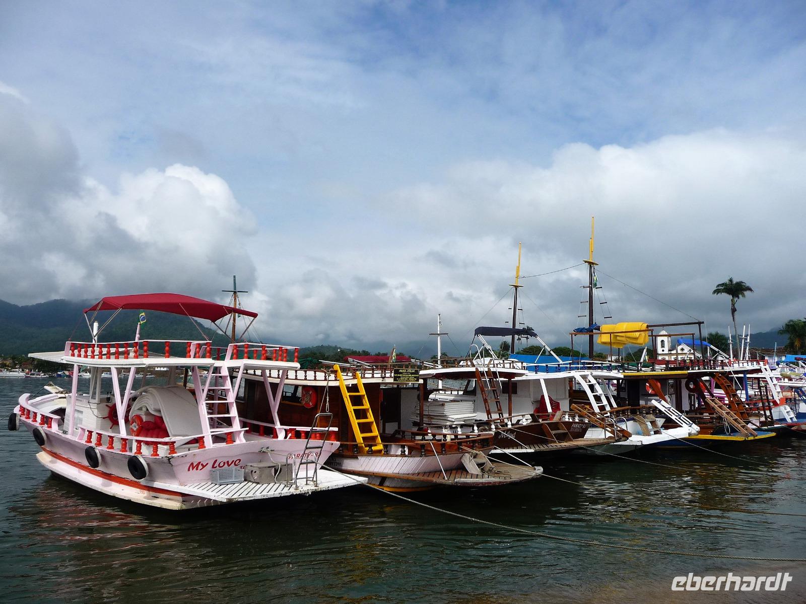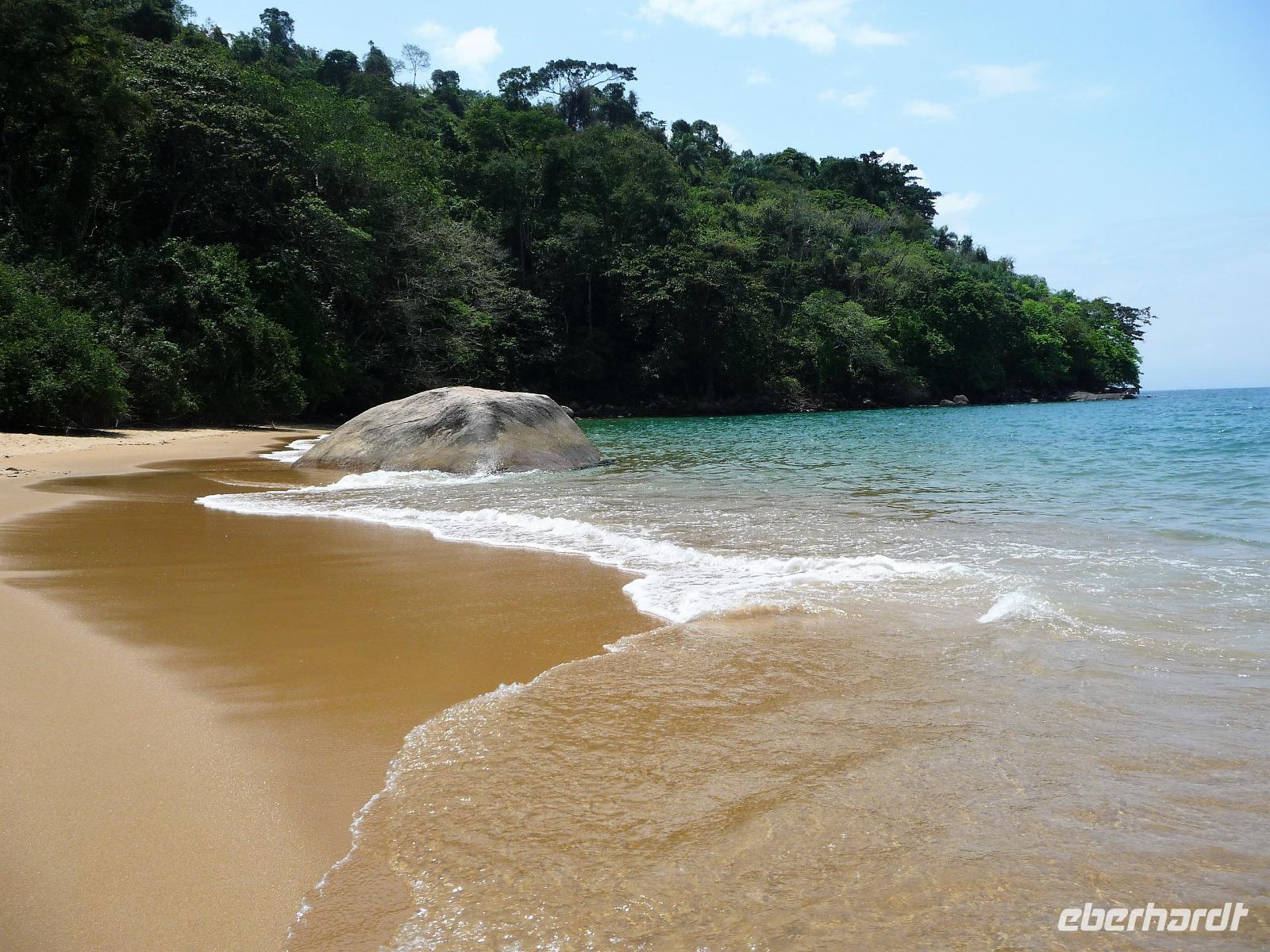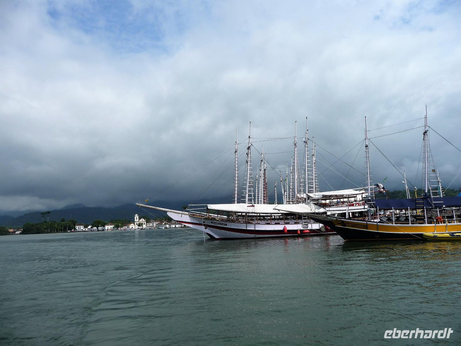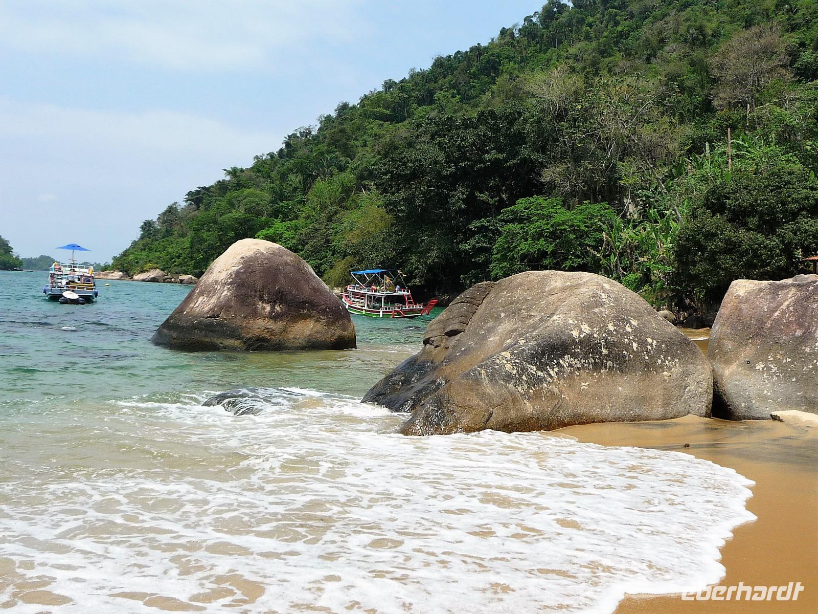 Heute verlebten wir einen entspannten Tag an Bord der Neptuno. Nach einem gemütlichen Frühstück spazierten wir zum Hafen und waren gespannt, ob das Wetter aushalten würde, die Regencapes waren für alle Fälle eingepackt. Fast pünktlich - als auch das letzte brasilianische Pärchen seine persönlichen 10.00 Uhr geschafft hatten - stachen wir in See, um den Nationalpark vor der Küste zu erkunden. Sobald wir aus dem Hafen ausliefen, lichteten sich die Regenwolken und wir sollten den ganzen Tag traumhaftes Wetter haben. Rund um Paraty zählt man mehr als 65 Inseln, herrliche Strände und kann im kristallklaren Wasser baden. Wir hielten, um zu Schnorcheln, zu Schwimmen sowie am Strand zu spazieren und einfach Sonne und Meer zu genießen. Zwischendurch war auch Zeit für einen kleinen Snack und den einen oder anderen Cocktail oder ein erfrischendes Bier. Am Nachmittag stöberte jeder für sich noch etwas durch Paraty und Abend genossen wir ein leckeres Abendessen mit frisch gebackenem Brot. Ein wunderschöner Tag, da waren wir uns alle einig.