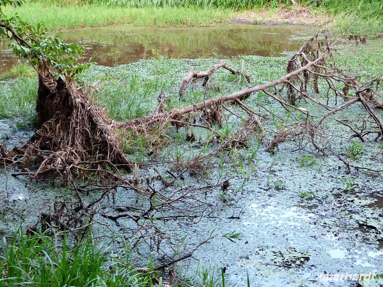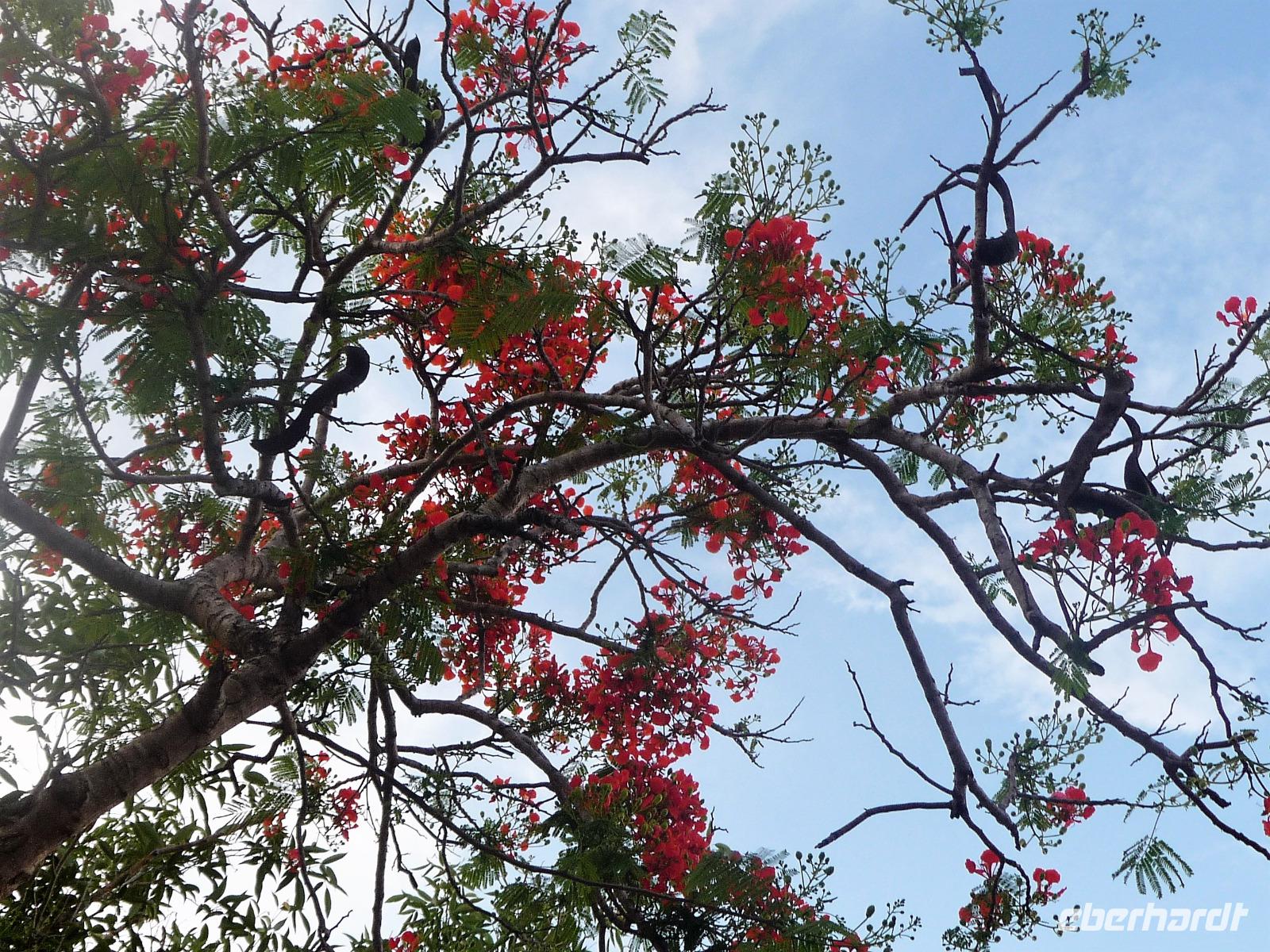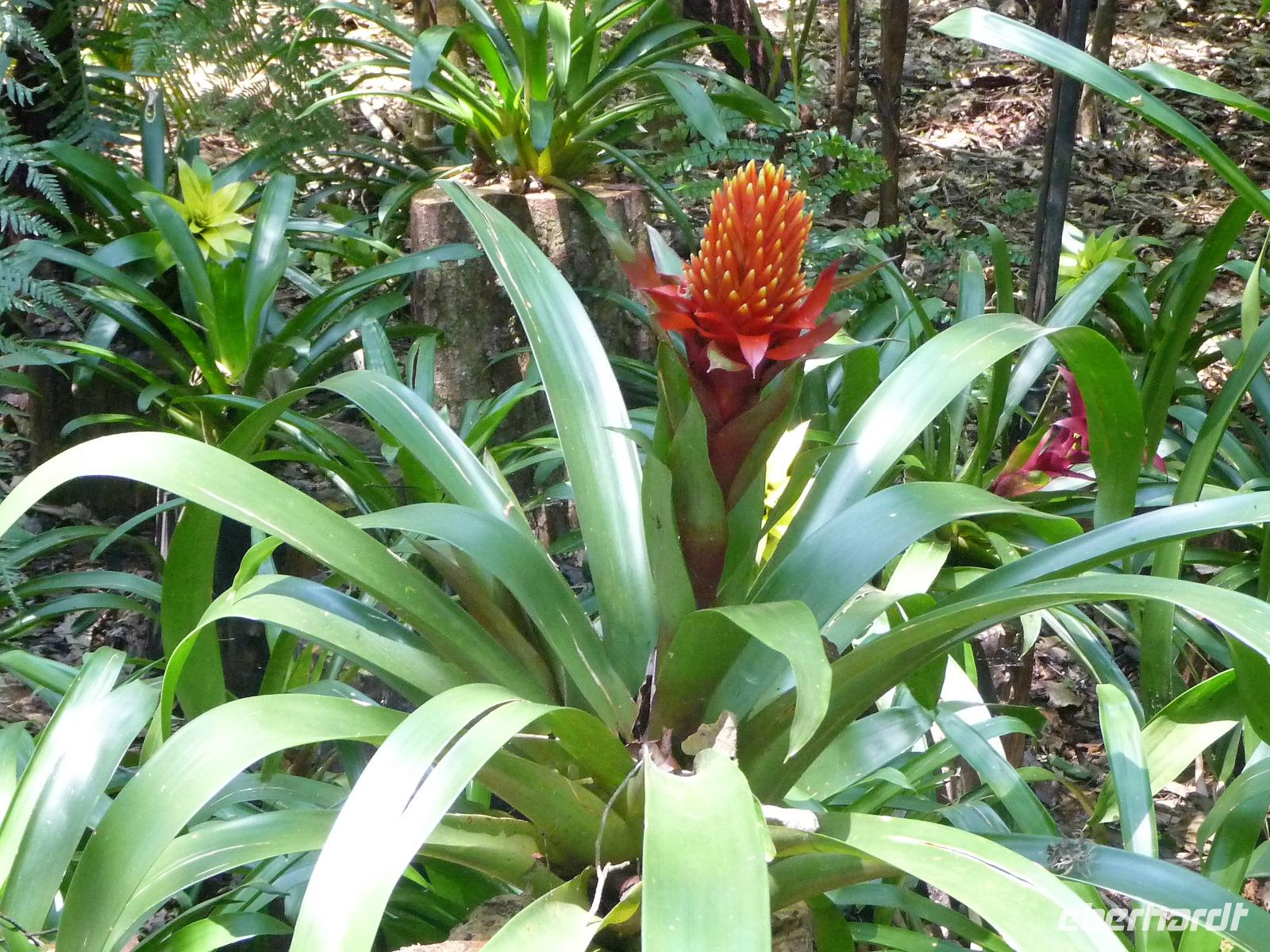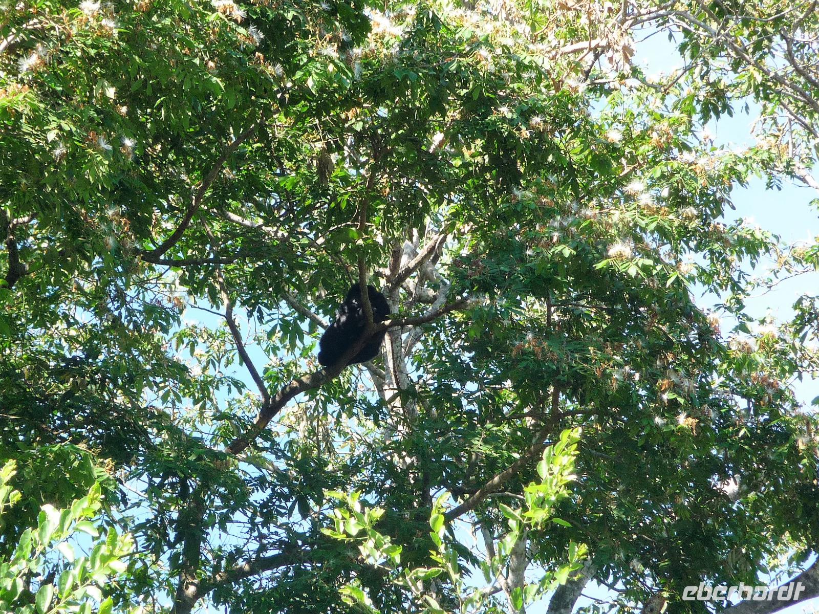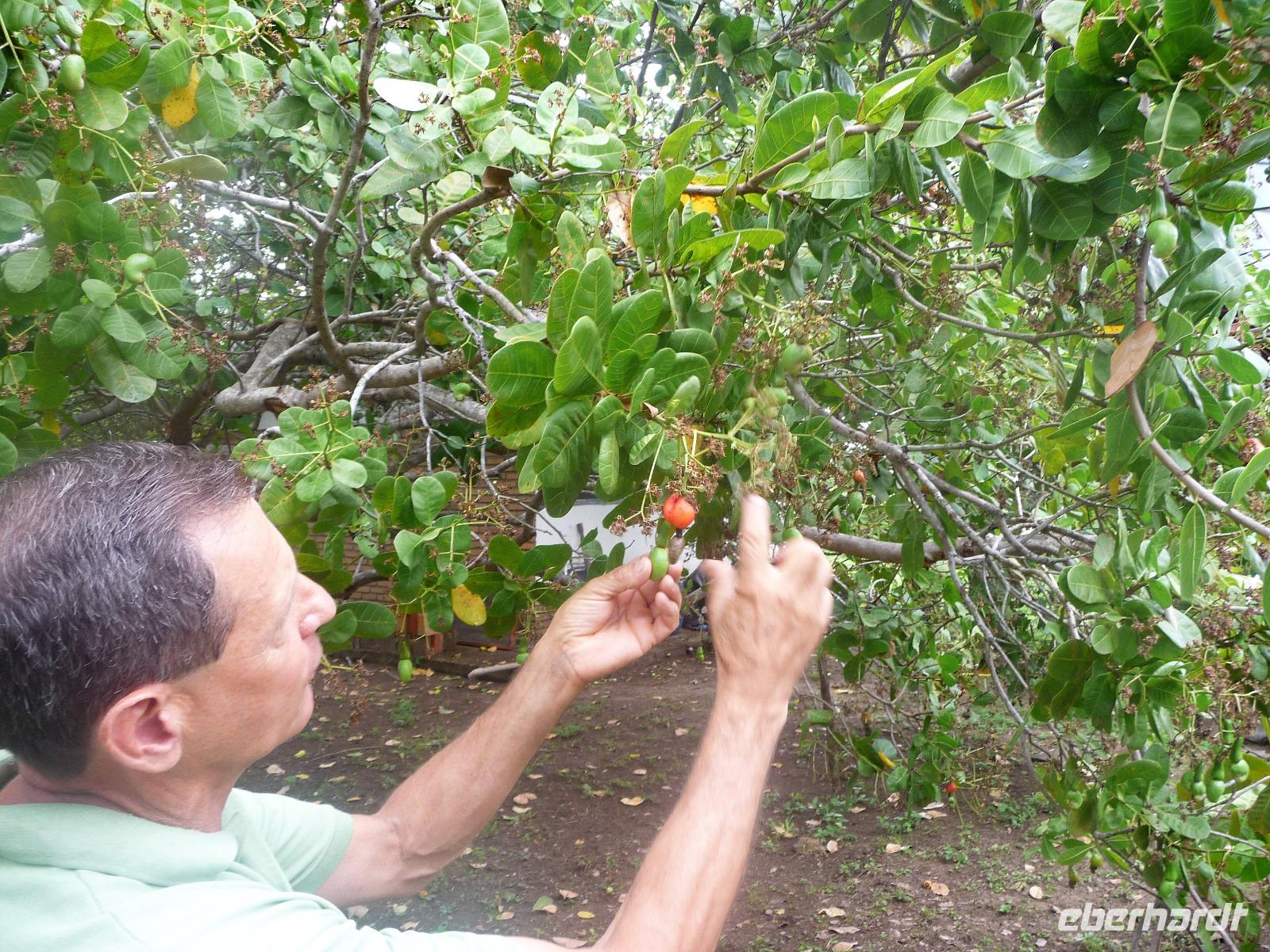 Heute hieß es wieder zeitig aufstehen, denn die Wanderung durch die Umgebung der Pousada wartete auf uns. Ein einfaches, aber leckeres Frühstück und ein herrliches Vogelgezwischer begrüßte uns am Morgen. Eine ganze Menge Hyazinth-Aras waren zu sehen und da wir natürlich alle fotografieren wollten, verzögerte sich unser Abmarsch. Gemeinsam mit Fabiano und Valdir starteten wir unsere kleine Wanderung. Schon jetzt war es drückend heiß, aber die Sonne schien nicht, was sich für uns als Glücksfall erweisen sollte, da wir so mehr Tiere sahen, die sich sonst eher ins Unterholz zurückziehen. Erstaunlich, welche Vielfalt an Vögeln wir sahen: den Jesusvogel, der über Wasser läuft, den farbenprächtigen Tropial, verschiedene Kukuks- und Spechtarten und sogar ein Tucan zeigt sich uns kurz. Etwas zu laut waren unsere Gespräche für die kleinen, flinken Nasenbären, die schnell das Weite suchten. Der Ameisenbär lief uns dagegen regelrecht in Fotoposition vor die Linse. Wir lernten eine ganze Menge von Valdir über die Flora, probierten eine falsche Erdnuss, testeten die rauhen, s chmirgelpapierähnlichen Blätter der Lixeira-Pflanze und sahen die nussartigen Früchte der kleinen Palme, von der sich die Aras ernähren. Selbst unsere Guides waren überrascht, als sie Reste einer seltenen Yuagana-Katze fanden, die wahrscheinlich eine brauner Puma gefressen hat. Nach fast 3 Stunden kamen wir zurück zur Lodge und konnten uns etwas im Pool oder bei einem frischen Drink an der Bar entspannen. Wunderbar schmeckten auch die regionalen Köstlichkeiten vom Mittagsbuffet und wir probierten Käse mit Doce di leite zum Nachtisch. Nach einer ausführlichen Siesta und individuellen Spaziergängen durch die Lodge ging es gleich nochmal zu einem kleinen Kaffeesnack, bei dem wir staunten, was der eine oder andere von uns, noch vor die Linse bekommen hatte. Vor allem das Gürteltier war für alle interessant. Am späten Nachmittag ging es dann auf Jeepsafari. Auf einem großen Lastwagen, der mit Sitzbänken umgebaut war, fuhren wir alle gemeinsam über die riesige Fläche der Pousada. Wieder erfuhren wir viel Neues von Valdir, sahen verschiedene Tiere vom Tuiuiui bis zum Wasserschwein. Besonders der Stopp an der tiefsten Stelle, die von Wasser bedeckt ist, wird uns in Erinnerung bleiben, denn als wir ausstiegen, kamen auf einmal 2 Kaimane direkt aus dem Wasser auf uns zu. Auch den Baum mit Früchten, die die Eingeborenen früher für die Körperbemalung nutzen, sahen wir nochmal in voller Pracht. Und das Beste: unsere Regencapes mussten wir nur ganz kurz auspacken.Nach dem Abendessen stand noch eine Nachtsafari auf dem Programm. Erstaunlich, was unsere Guides an den in der Nacht funkelnden Tieraugen alles erkennen konnten. In gemütlicher Runde ließen wir den Tag an der Bar ausklingen. Graviola - eine Art Yakfrucht, leicht säuerlich und mit viel Fruchtsaft, eine Barbadoskirsche. Dabei begleitete uns eine kleiner Emu, der Anschluss suchte.