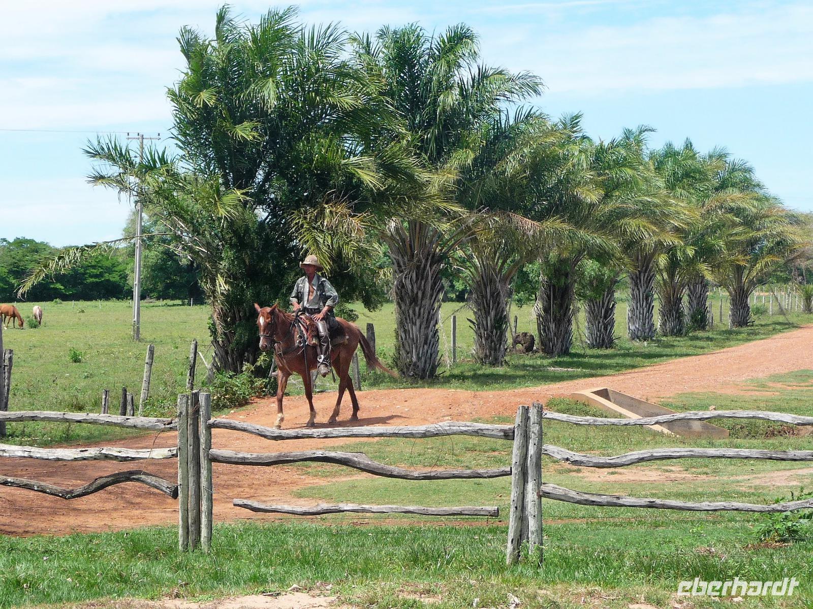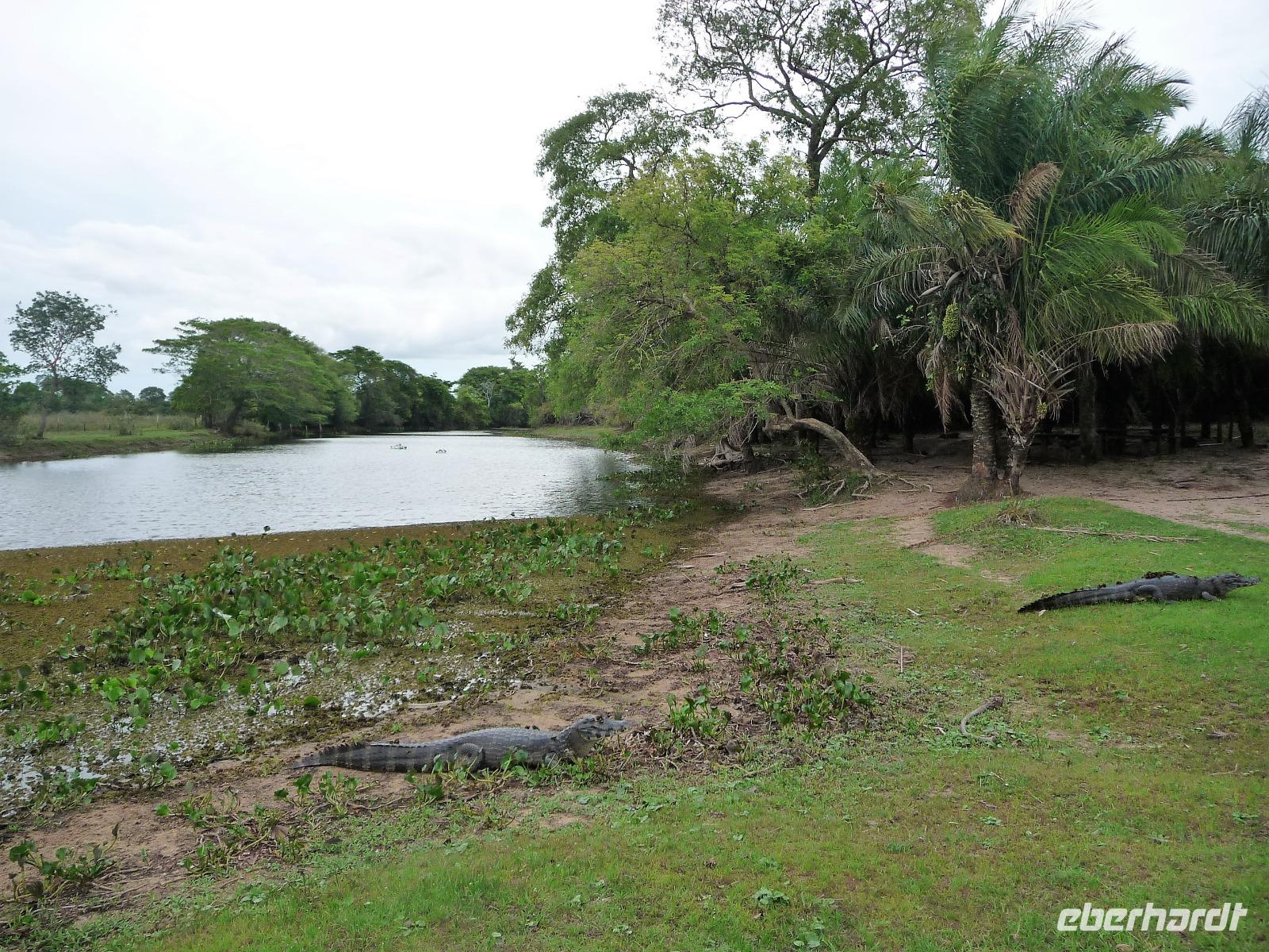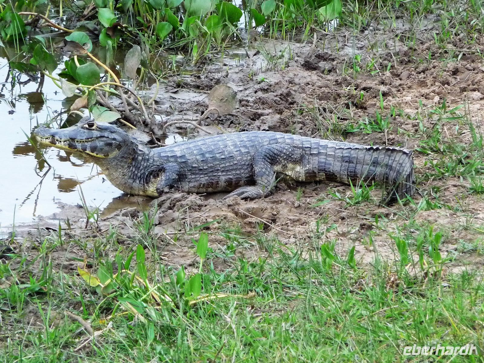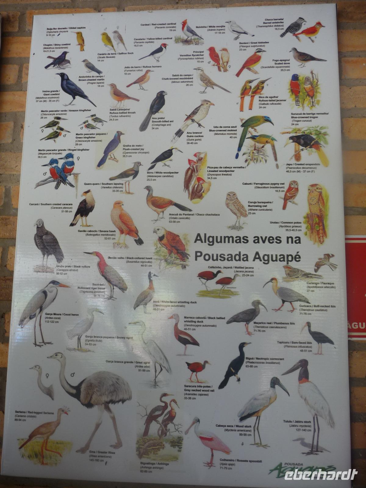 Als wir durch die Schiebetür des Flughafens traten, strahlte bereits wieder die Sonne und unser Reiseleiter für die nächsten Tage, Valdir, erwartete uns. Mit dem kleinen Bus sollte es für die nächsten 3 ½ Stunden zunächst über eine asphaltierte Straße, die von riesigen Weiden mit unzähligen Rindern begrenzt würden und später fast 50 km über eine Schotterpiste. Bereits in der Dämmerung sahen wir unseren ersten Ameisenbär. Im Dunkeln erreichten wir unsere Pousada Aguape, die schon mit dem Abendessen auf uns wartete. Herzlich gelacht haben wir, als uns direkt beim Abendessen ein Pferd besuchte, kurz nach dem rechten sah und dann durch die Bar entschwand. Nachdem wir uns gestärkt und einen „Feierabenddrink" an der Bar genossen hatten, fielen wir nach dem langen Reisetag totmüde ins Bett.