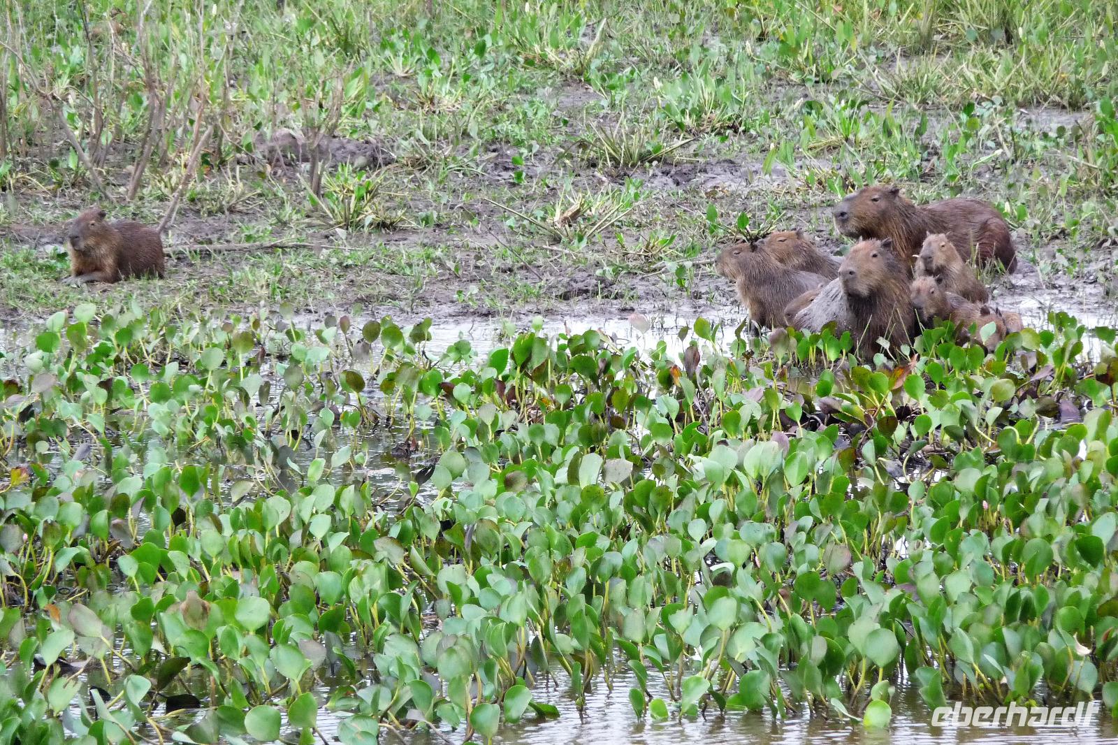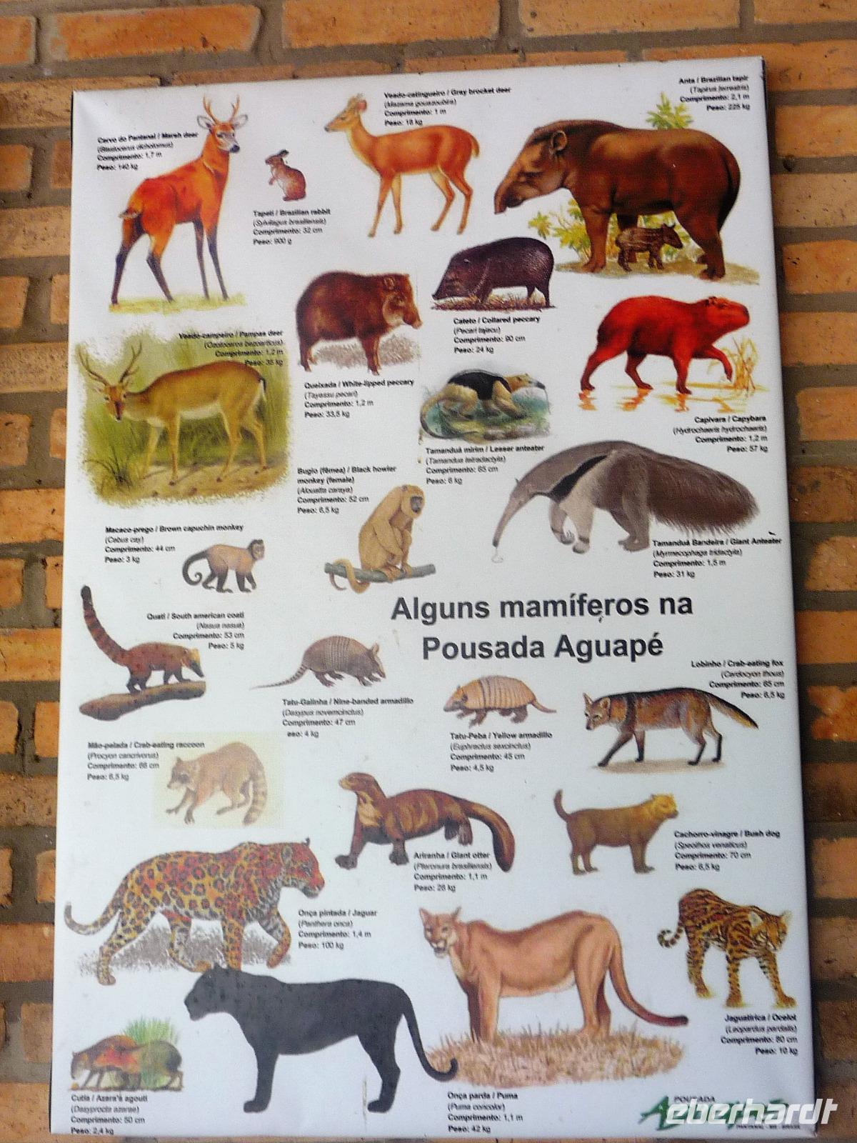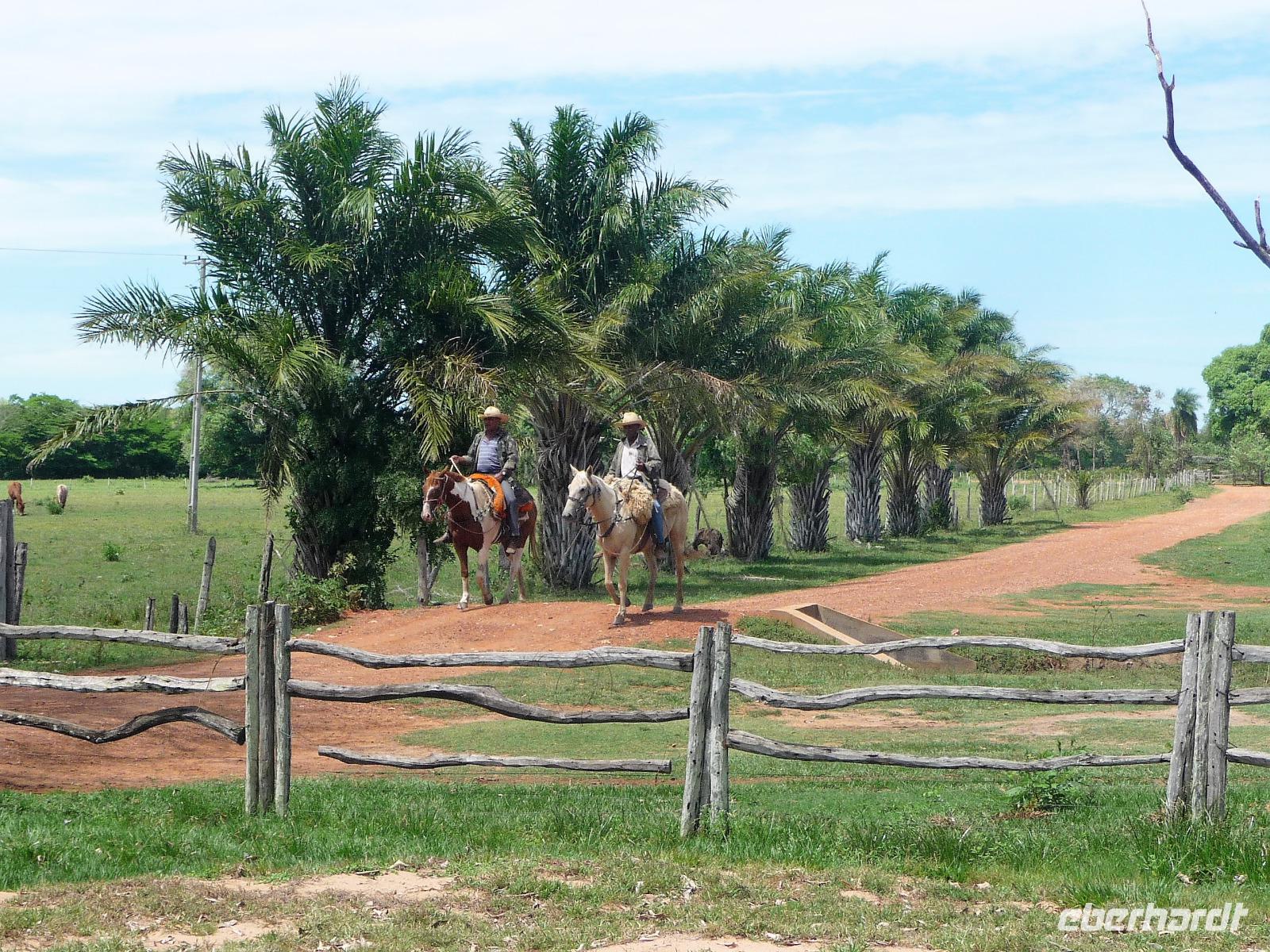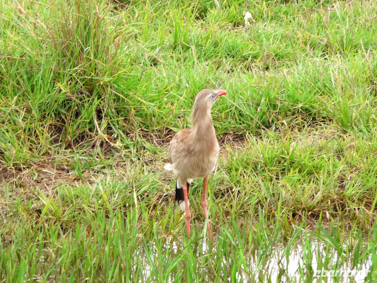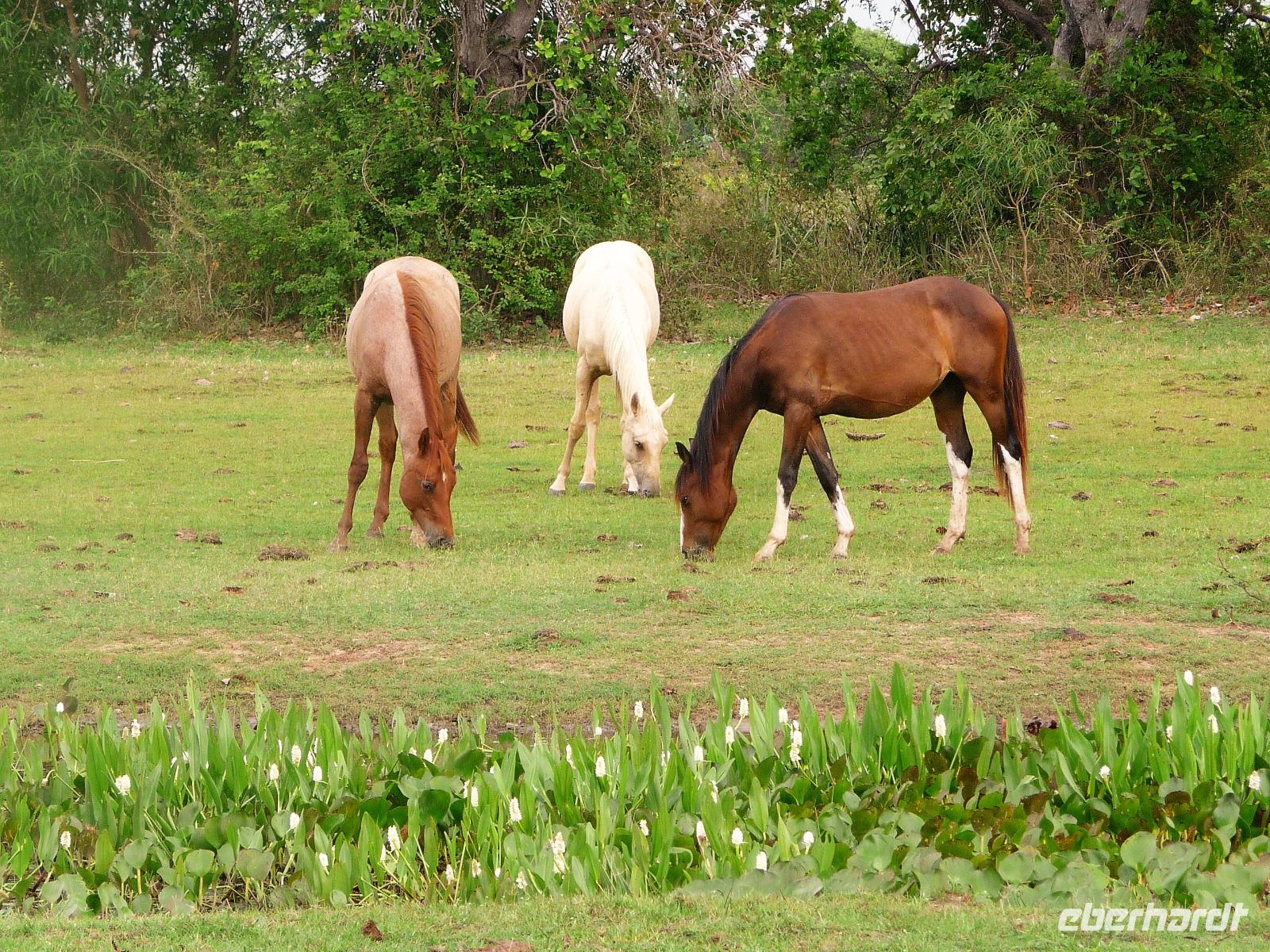 Als wir durch die Schiebetür des Flughafens traten, strahlte bereits wieder die Sonne und unser Reiseleiter für die nächsten Tage, Valdir, erwartete uns. Mit dem kleinen Bus sollte es für die nächsten 3 ½ Stunden zunächst über eine asphaltierte Straße, die von riesigen Weiden mit unzähligen Rindern begrenzt würden und später fast 50 km über eine Schotterpiste. Bereits in der Dämmerung sahen wir unseren ersten Ameisenbär. Im Dunkeln erreichten wir unsere Pousada Aguape, die schon mit dem Abendessen auf uns wartete. Herzlich gelacht haben wir, als uns direkt beim Abendessen ein Pferd besuchte, kurz nach dem rechten sah und dann durch die Bar entschwand. Nachdem wir uns gestärkt und einen „Feierabenddrink" an der Bar genossen hatten, fielen wir nach dem langen Reisetag totmüde ins Bett.