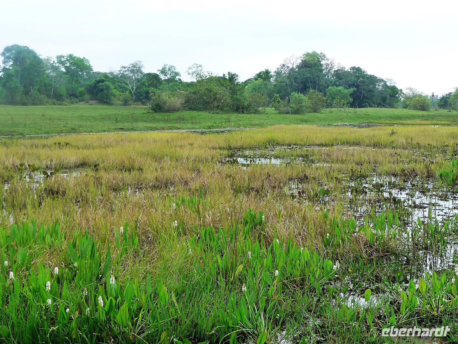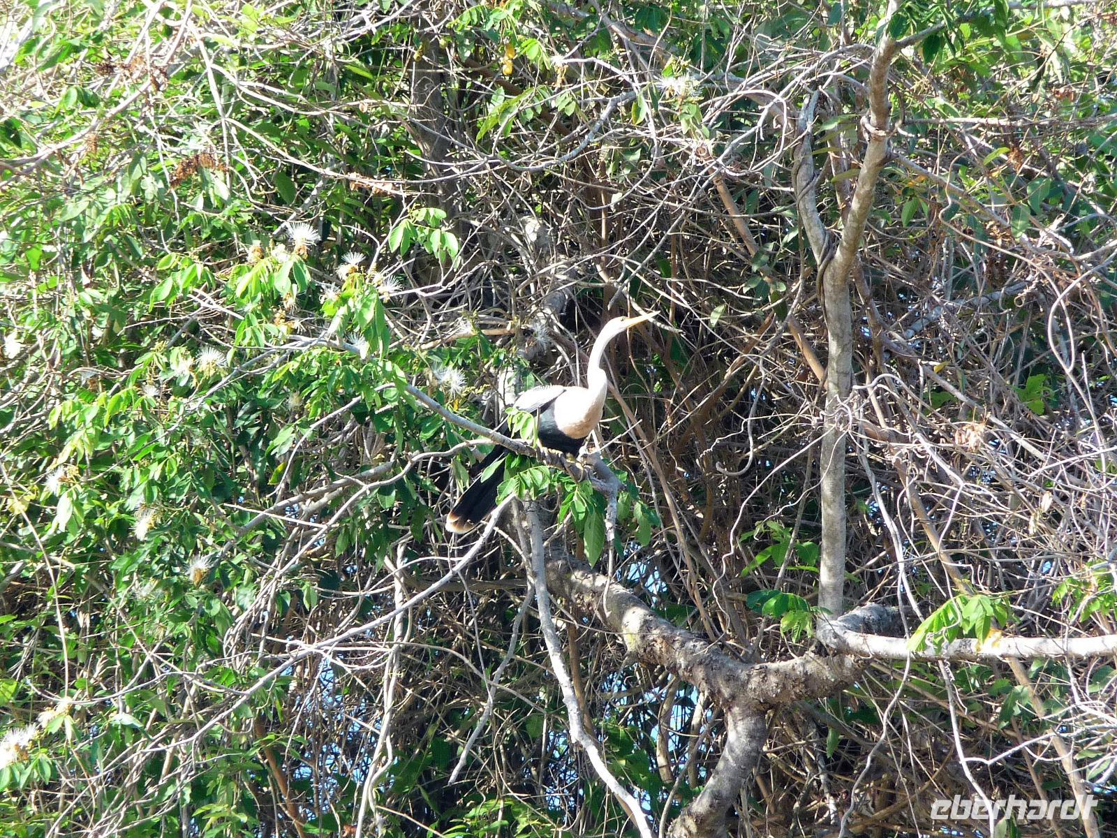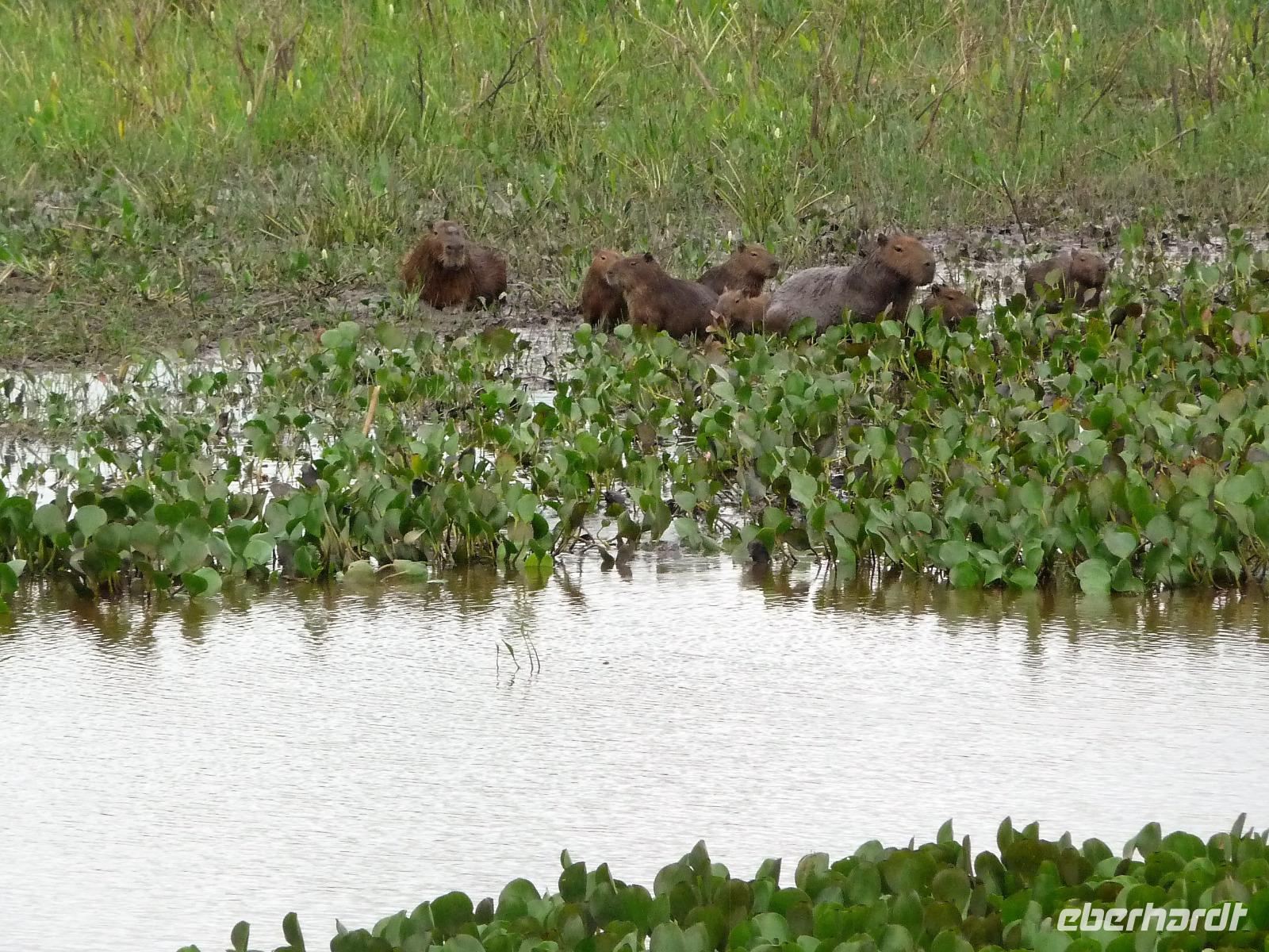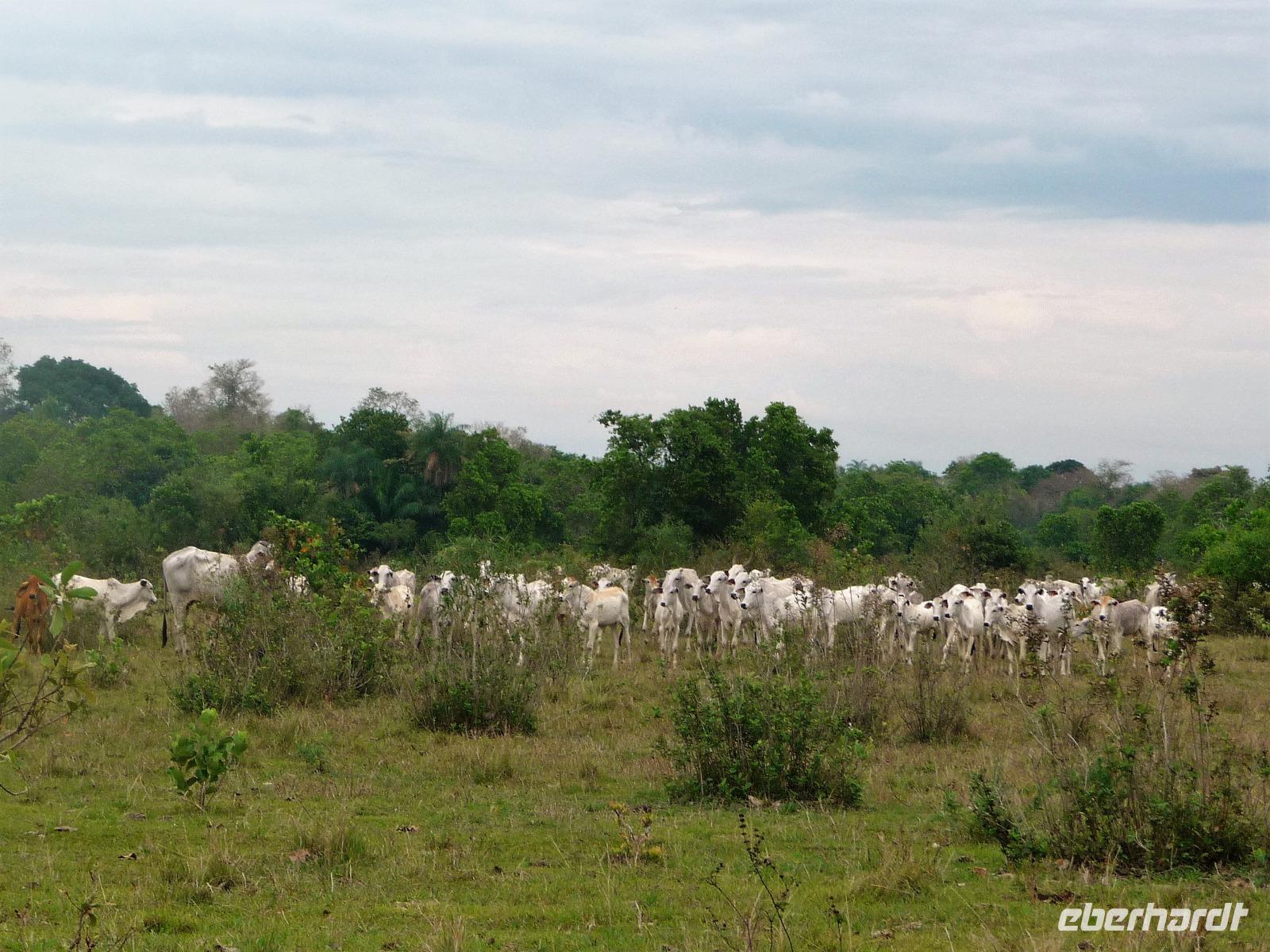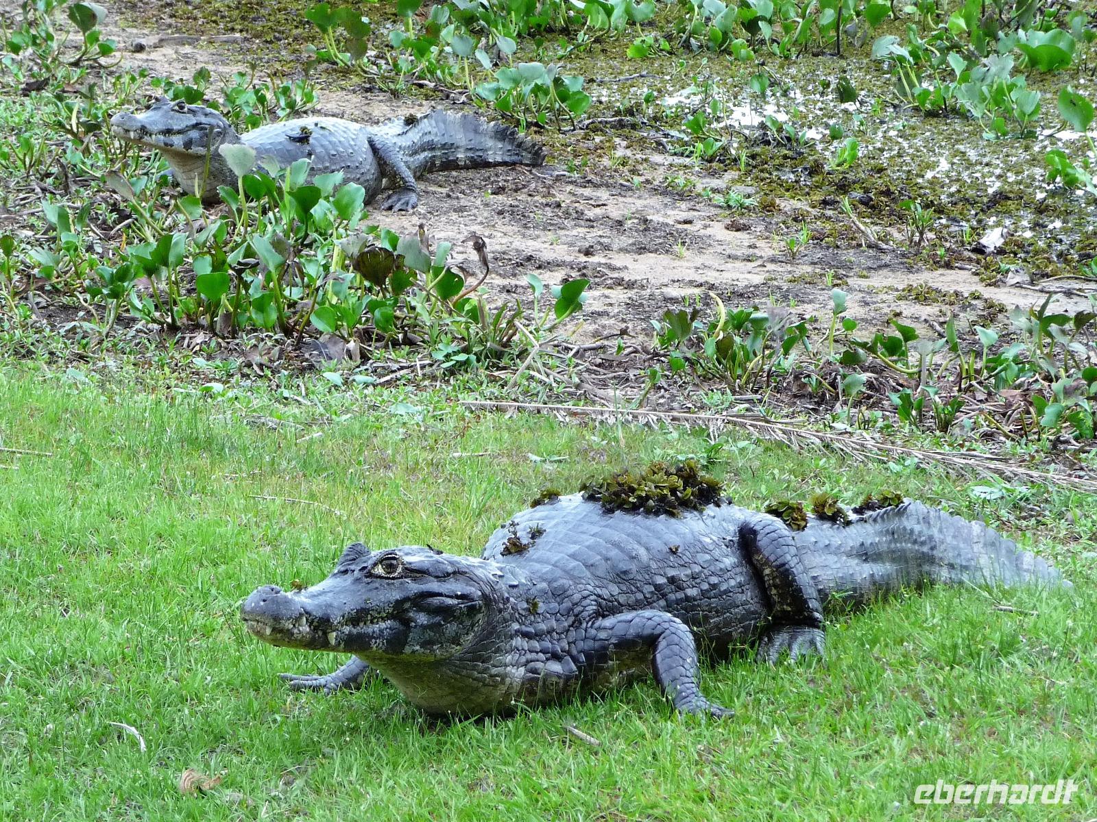 Als wir durch die Schiebetür des Flughafens traten, strahlte bereits wieder die Sonne und unser Reiseleiter für die nächsten Tage, Valdir, erwartete uns. Mit dem kleinen Bus sollte es für die nächsten 3 ½ Stunden zunächst über eine asphaltierte Straße, die von riesigen Weiden mit unzähligen Rindern begrenzt würden und später fast 50 km über eine Schotterpiste. Bereits in der Dämmerung sahen wir unseren ersten Ameisenbär. Im Dunkeln erreichten wir unsere Pousada Aguape, die schon mit dem Abendessen auf uns wartete. Herzlich gelacht haben wir, als uns direkt beim Abendessen ein Pferd besuchte, kurz nach dem rechten sah und dann durch die Bar entschwand. Nachdem wir uns gestärkt und einen „Feierabenddrink" an der Bar genossen hatten, fielen wir nach dem langen Reisetag totmüde ins Bett.