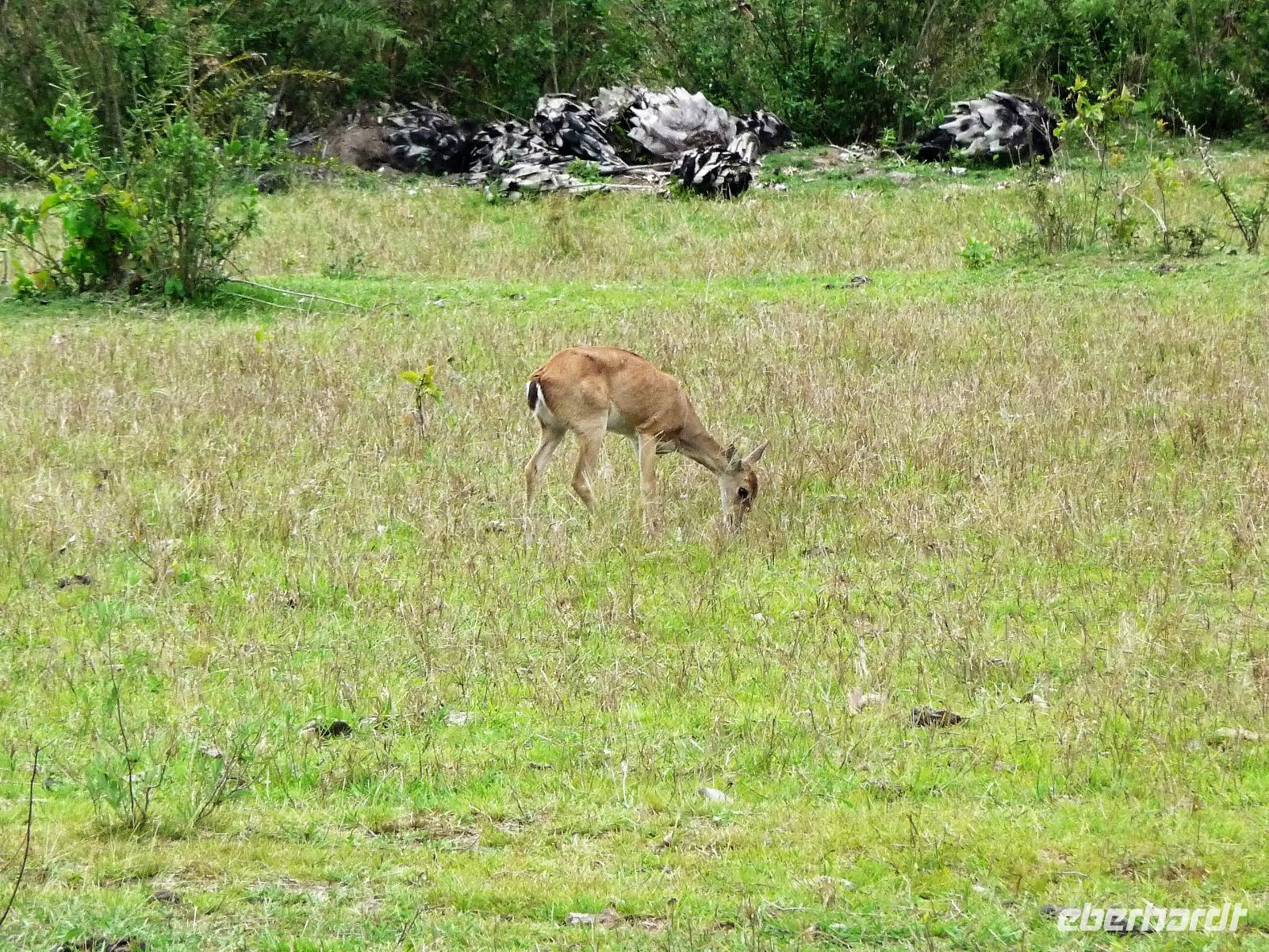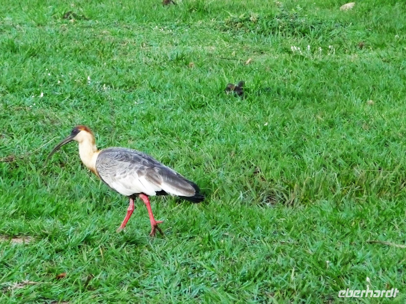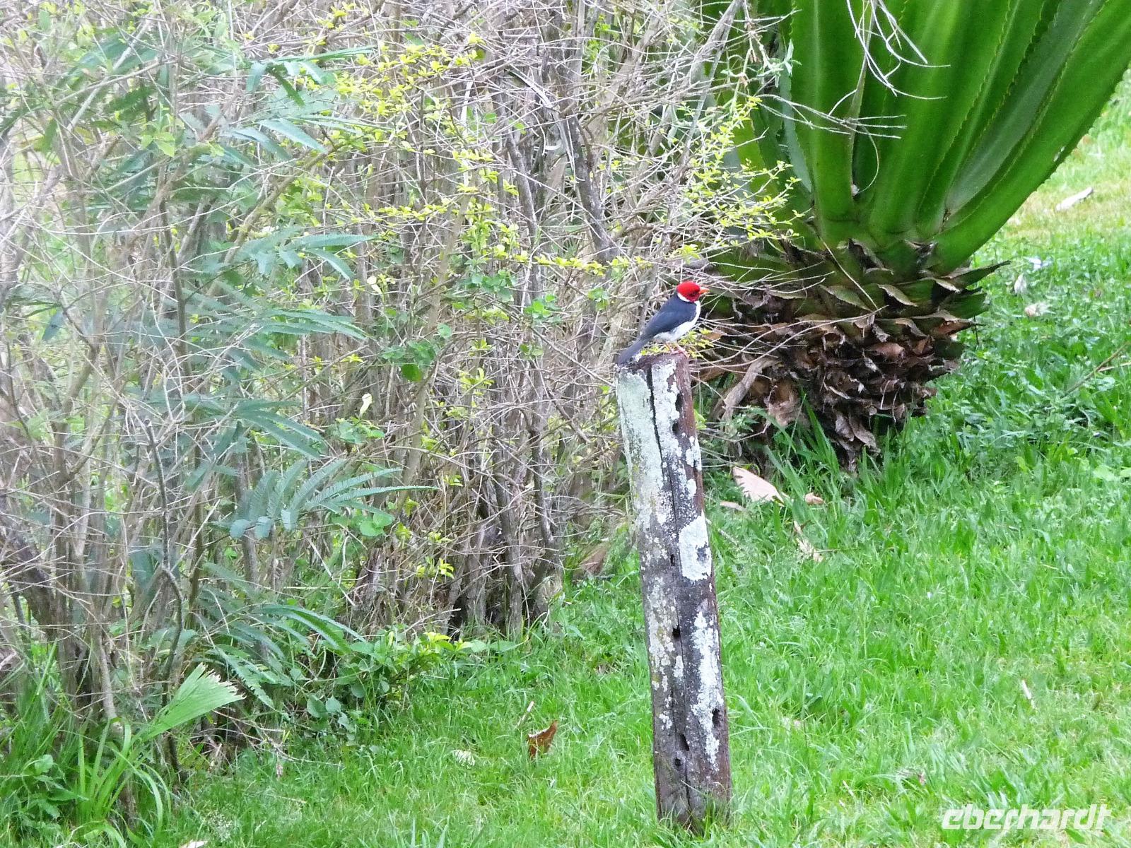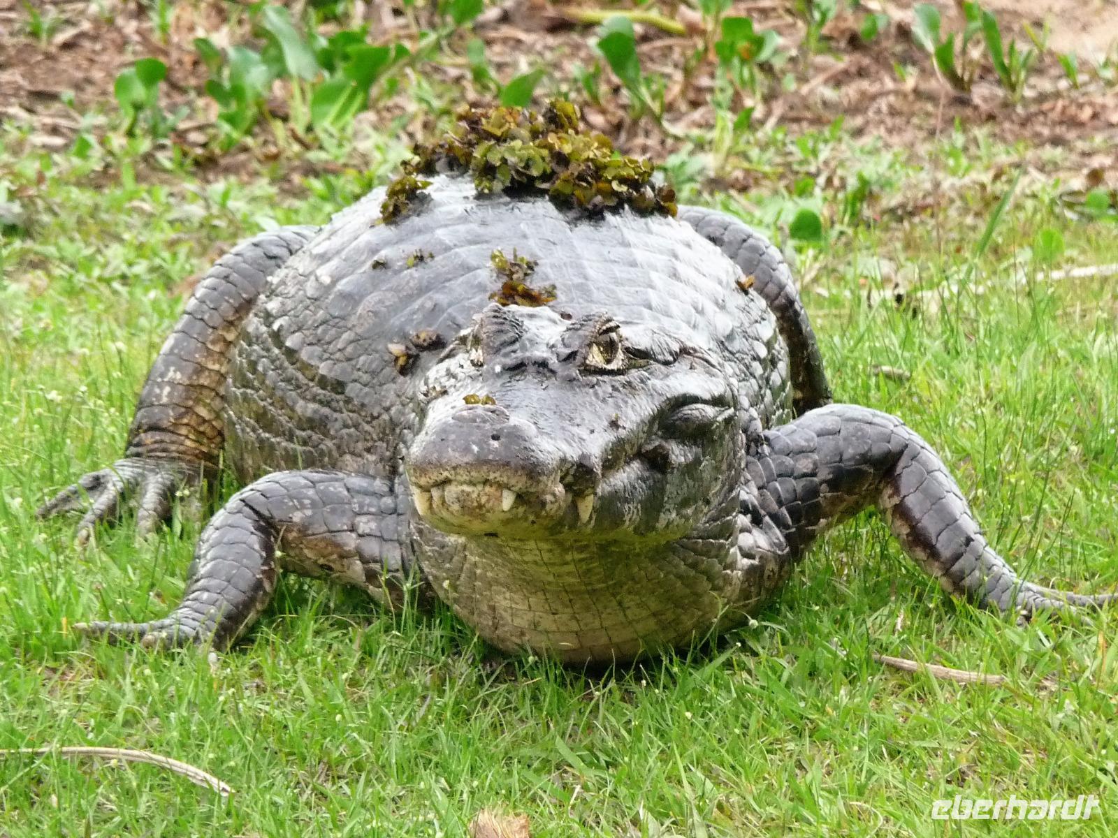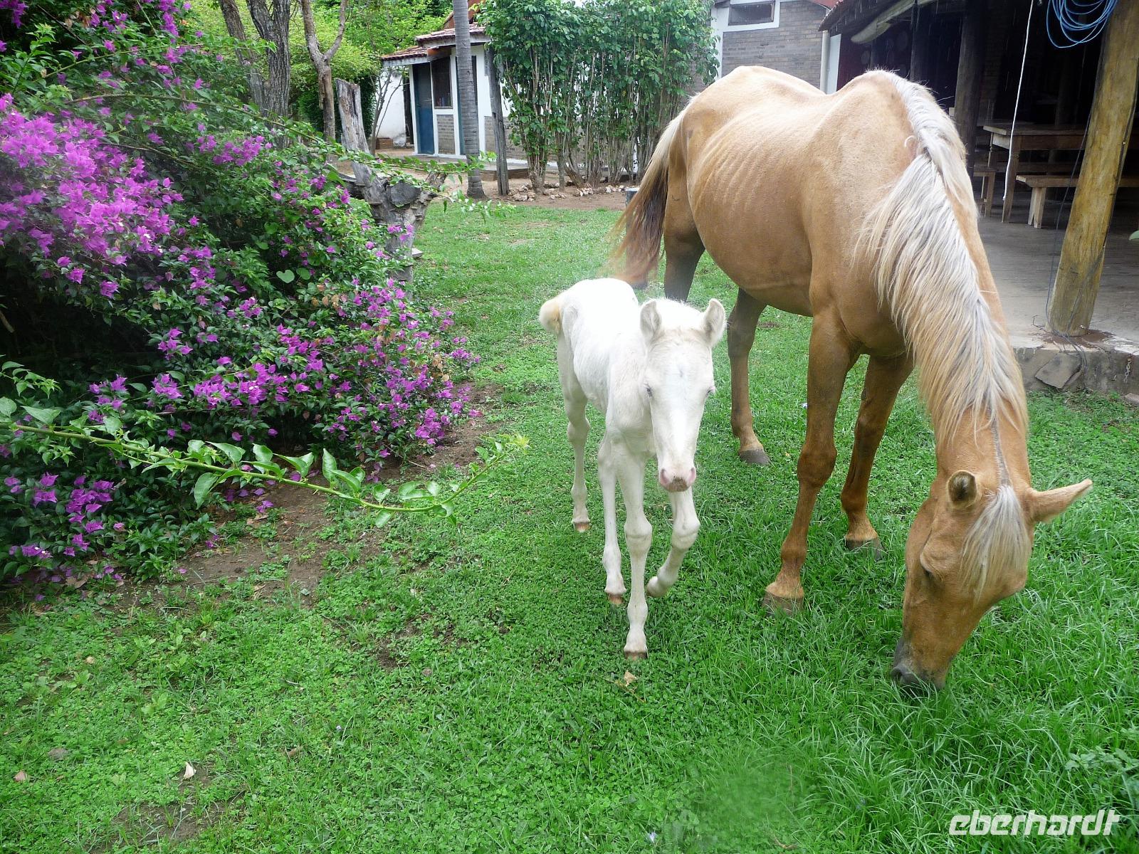 Als wir durch die Schiebetür des Flughafens traten, strahlte bereits wieder die Sonne und unser Reiseleiter für die nächsten Tage, Valdir, erwartete uns. Mit dem kleinen Bus sollte es für die nächsten 3 ½ Stunden zunächst über eine asphaltierte Straße, die von riesigen Weiden mit unzähligen Rindern begrenzt würden und später fast 50 km über eine Schotterpiste. Bereits in der Dämmerung sahen wir unseren ersten Ameisenbär. Im Dunkeln erreichten wir unsere Pousada Aguape, die schon mit dem Abendessen auf uns wartete. Herzlich gelacht haben wir, als uns direkt beim Abendessen ein Pferd besuchte, kurz nach dem rechten sah und dann durch die Bar entschwand. Nachdem wir uns gestärkt und einen „Feierabenddrink" an der Bar genossen hatten, fielen wir nach dem langen Reisetag totmüde ins Bett.