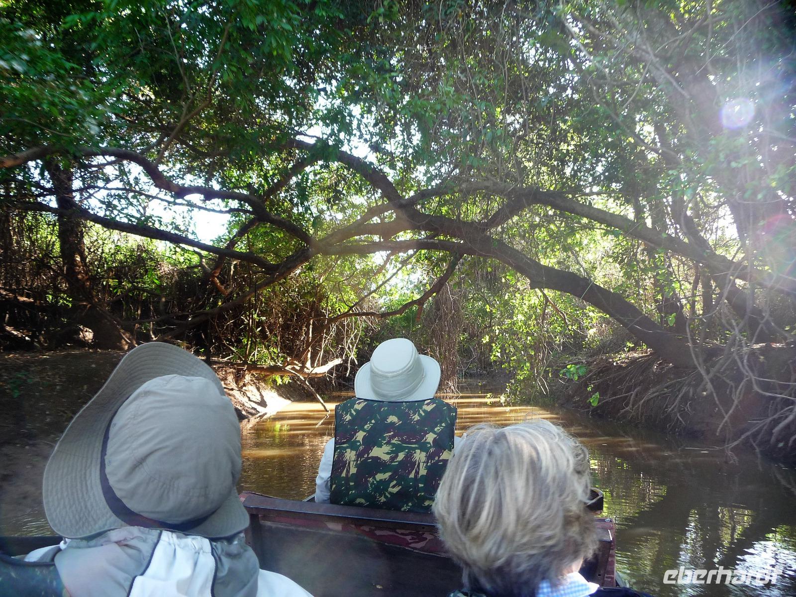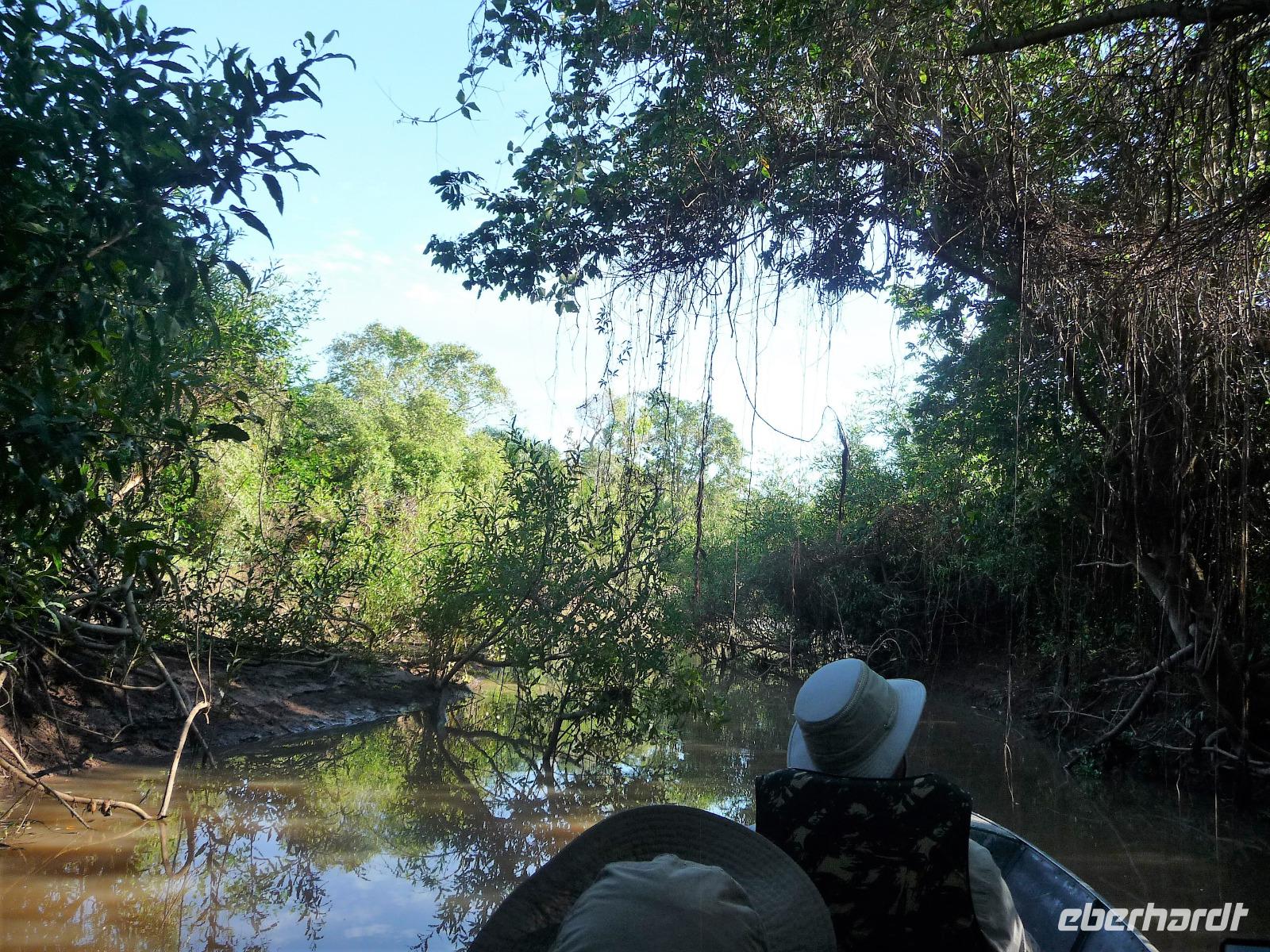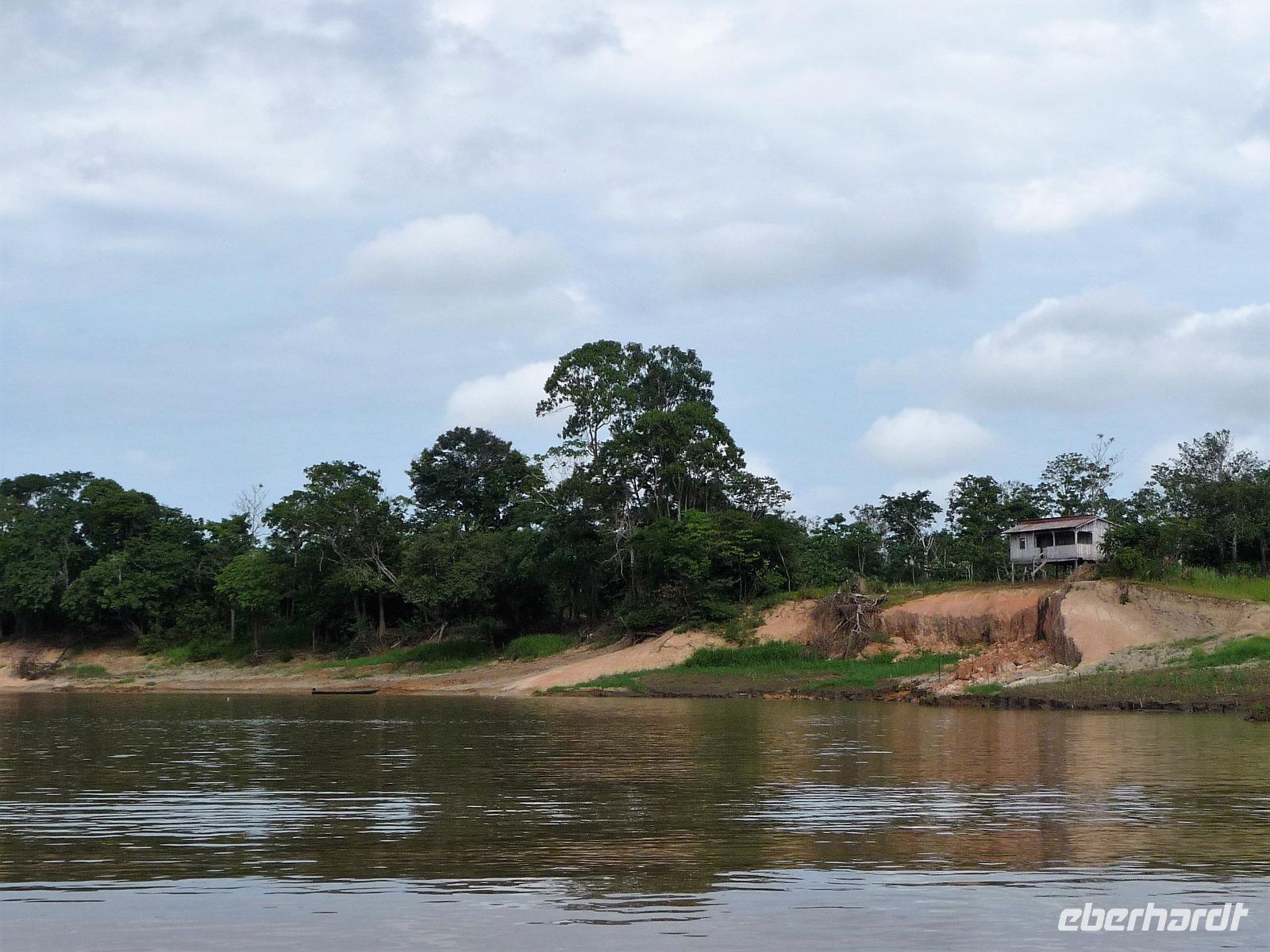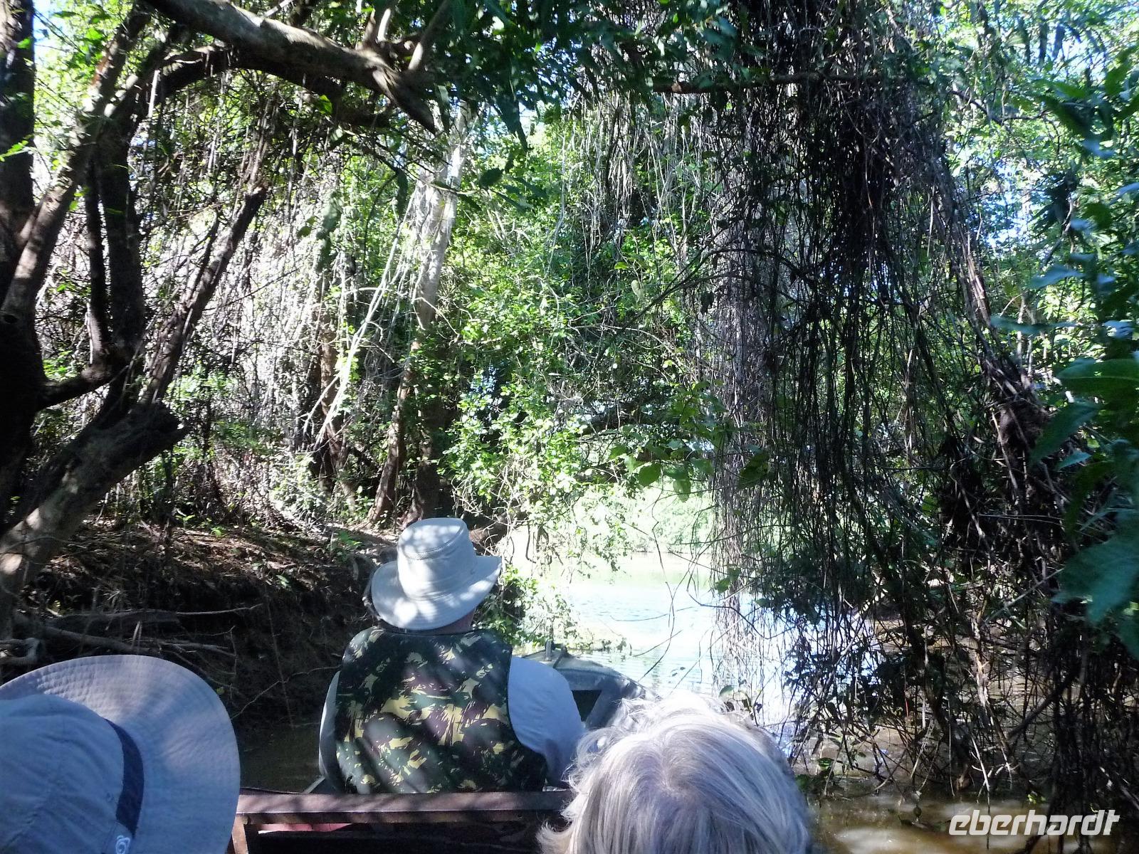Noch vor dem Aufstehen traf sich ein Teil der Gruppe, um an der Morgenfahrt in die Seitenarme des Amazonas teilzunehmen. Mit unserem kleinen Boot konnten wir viel tiefer in die Seitenarme hineinfahren und bekamen eine ganz andere Sichtweise auf die Komplexität des Flusses. Nach jeder Biegung sah die Landschaft komplett anders aus, mal ragten die Bäume nah bis an den Fluss, mal öffnete sich ein kleines Panorama. Auch wenn wir nur ein paar Vögel sahen, waren wir uns einig, dass sich die Fahrt gelohnt hatte, denn die Ruhe und das Erwachen am Morgen zu erleben, war etwas ganz Besonderes.