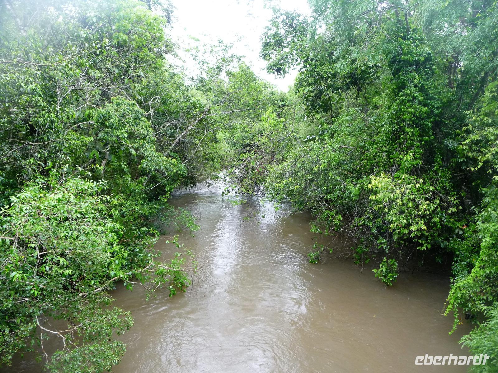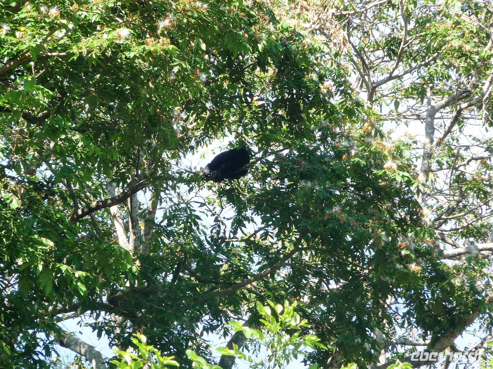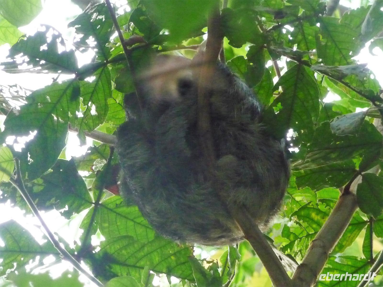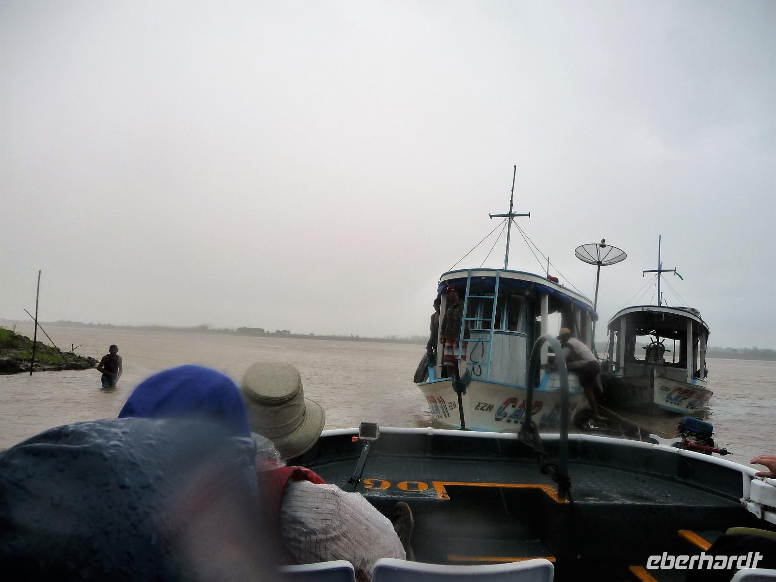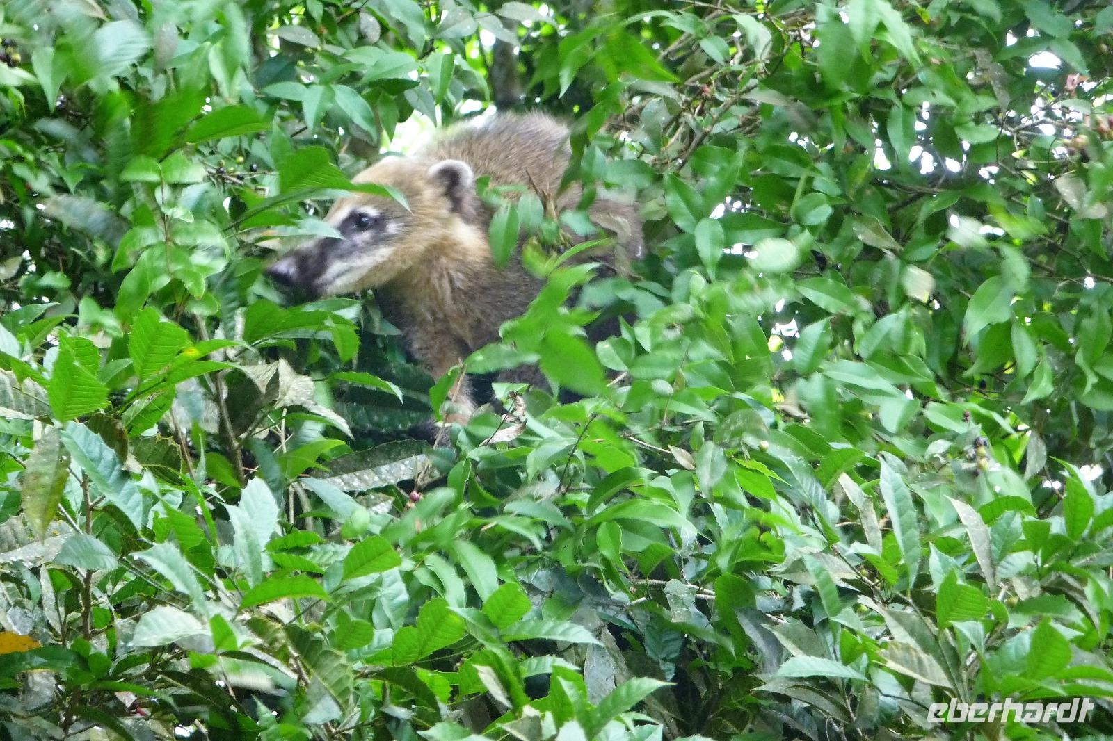 Nach dem Frühstück brachen wir dann zu unserer Regenwaldwanderung auf, die ihrem Namen im wahrsten Sinne des Wortes alle Ehre machte. Kaum verließen wir das Schiff, schon begann es in Strömen zu regnen. Bloß gut, dass wir alle unsere Regencapes dabei hatten, aber so richtig halfen sie auch nicht. Teilweise sahen wir bei unserer Wanderung die Hand vor Augen nicht, nahmen es aber mit Humor und folgten unserem Reiseleiter Jefferson brav auf Schritt und Tritt. Ab und zu machten wir uns Sorgen, als er ohne Vorwarnung im Dickicht des Regenwaldes verschwand, zum Glück tauchte er aber immer wieder auf und brachte uns letztendlich wohlbehalten zurück. Als wir auf dem Schiff ankamen, erklang von super tolle Livemusik. Die Animateure spielten von typisch südamerikanischen Rhythmen bis hin zu AC/DC alles, was zum Tanzen einlud. So mancher von uns, verpasste fast das leckere Mittagsbuffet, was aber auch nicht weiter schlimm war, denn die Crew versorgt uns auch mit kleinen Snacks an Deck und unser Kuchen schmeckte etwas später mit Kaffee um so besser.