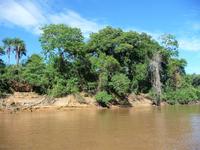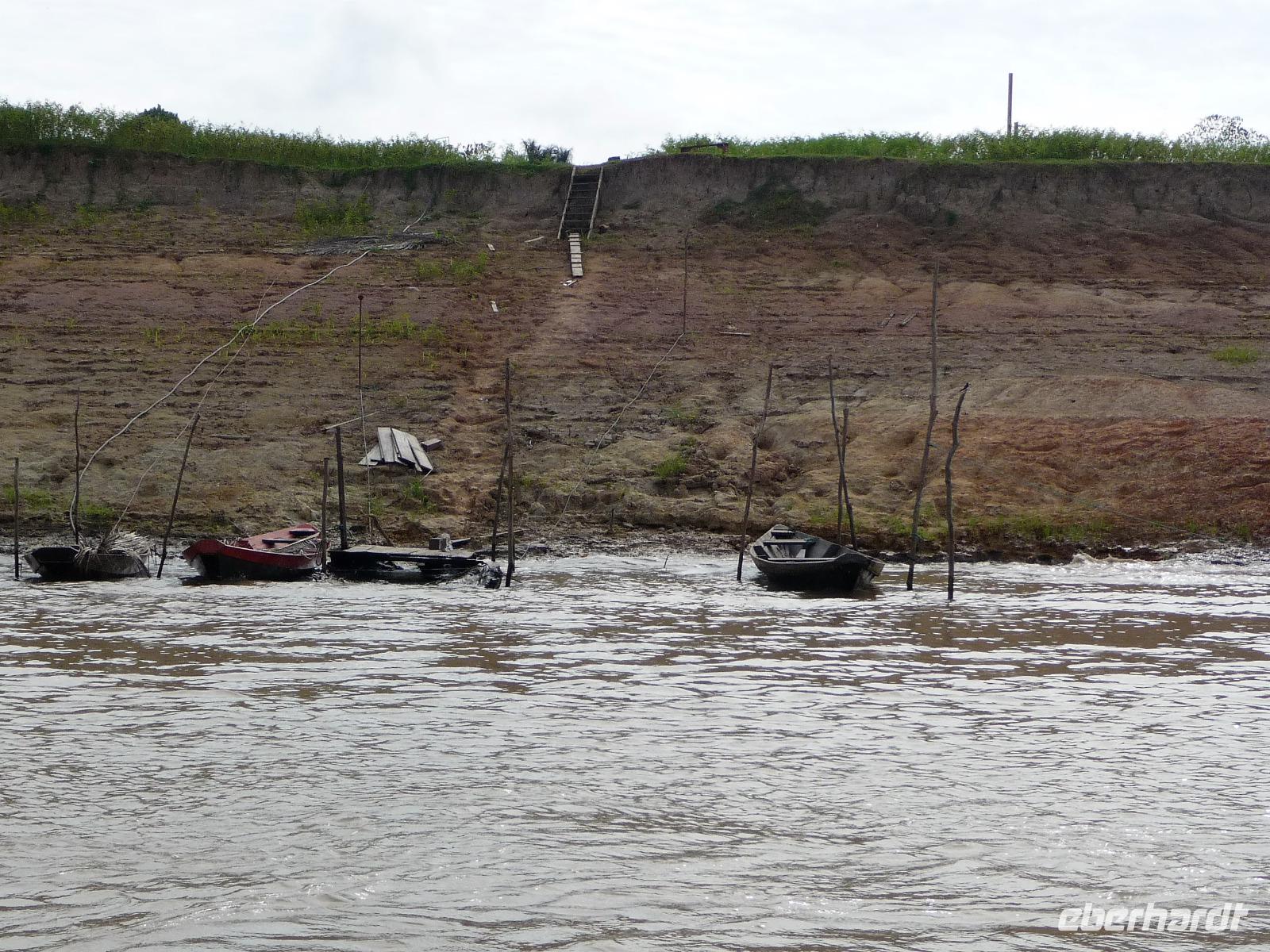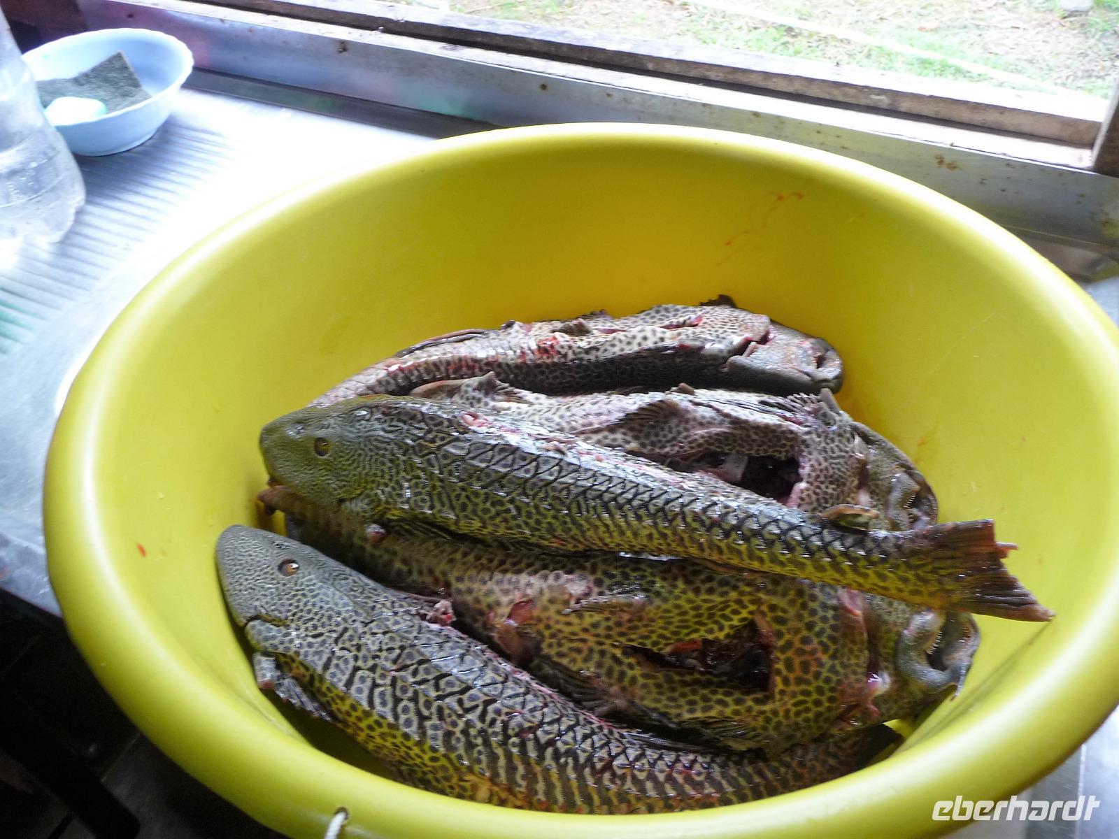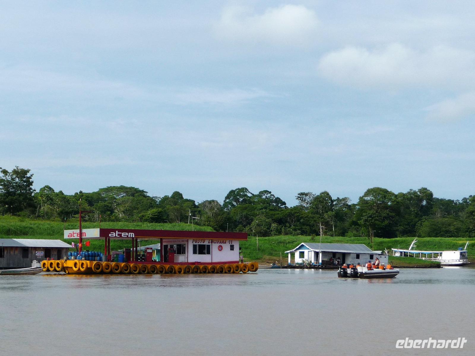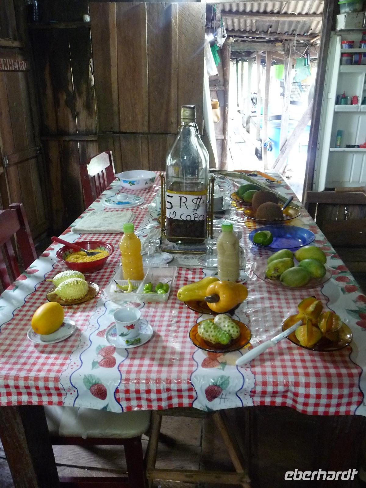 Über Nacht waren wir fast 75 km den Rio Negro und weiter der Rio Solimaos hinaufgefahren. Nach dem ausgezeichneten Frühstücksbüffet starteten wir um 8.00 Uhr zu unserem ersten Ausflug. Gemeinsam mit unserem Guide Jefferson sollte es auf eine einheimische Farm gehen. Herrlich war es den Fahrtwind mitten auf dem Amazonas zu spüren. Eigentlich hatten wir gehofft, am Flussufer einige Tiere zu entdecken, aber dazu ist der Amazonas viel zu breit und die Tiere sind viel zu scheu. Aber auch so war die Fahrt interessant. Bereits auf dem Weg sahen wir die Hausboote der Fischer, die ihre ersten riesigen Fische gefangen hatten und mit der Verarbeitung begannen. Sogar an einem Dorf mit einer kleinen Werft, auf der die Boote repariert wurden, kamen wir vorbei. Hier gab es auch eine Schule, in die die Kinder der Umgebung jeden Tag per Boot fuhren. Auf dem Weg zur am hohen Ufer gelegenen Farm mussten wir zunächst einen schmalen Steg entlang balancieren. Die Farm gehörte der Familie laut Grundbuch und aufgrund ihrer erhöhten Lage war sie auch bei Hochwasser gut geschützt. Wie wir erfuhren bringen hier andere Bewohner in der Regenzeit ihre Tiere her, um sie gegen eine Pacht weiden zu lassen. In einer kleinen offenen Scheune konnten wir eine Yukapresse sehen und bei einem Rundgang entdeckten wir so manche für uns kuriose Frucht. Am Ende des Rundgangs konnten wir sogar verschiedene Früchte probieren. Mittags legten wir eine gemütliche Pause auf dem Schiff ein, um uns fürs Piranha-Angeln am Nachmittag zu rüsten. Mit unserem kleinen "Schnellboot" ging es in ruhigeres Gewässer, um auch wirklich Erfolg beim Angeln zu haben. Alle waren wir mit an Bord und jeder, der die Angel ins Wasser warf, fing - wenn auch mit etwas Geduld - seinen Piranha. Einige von uns waren sogar richtig erfolgreich und es kam fast zu einem Wettangeln, wer die meisten Piranhas an den Haken bekam. Ein lustiges Erlebnis für uns alle! Auf dem Rückweg zum Schiff sahen wir sogar noch einige Flussdelphine und fuhren in die Abenddämmerung hinein. Am Abend hatte sich das Animationsteam etwas besonderes einfallen lassen. Bei herrlicher Panflötenmusik, natürlich live präsentiert, gingen wir auf eine Bilder- und Geschichtenreise entlang des Amazonas. Bei einem Cocktail auf dem Oberdeck ließen wir den Tag gemütlich alle zusammen ausklingen.