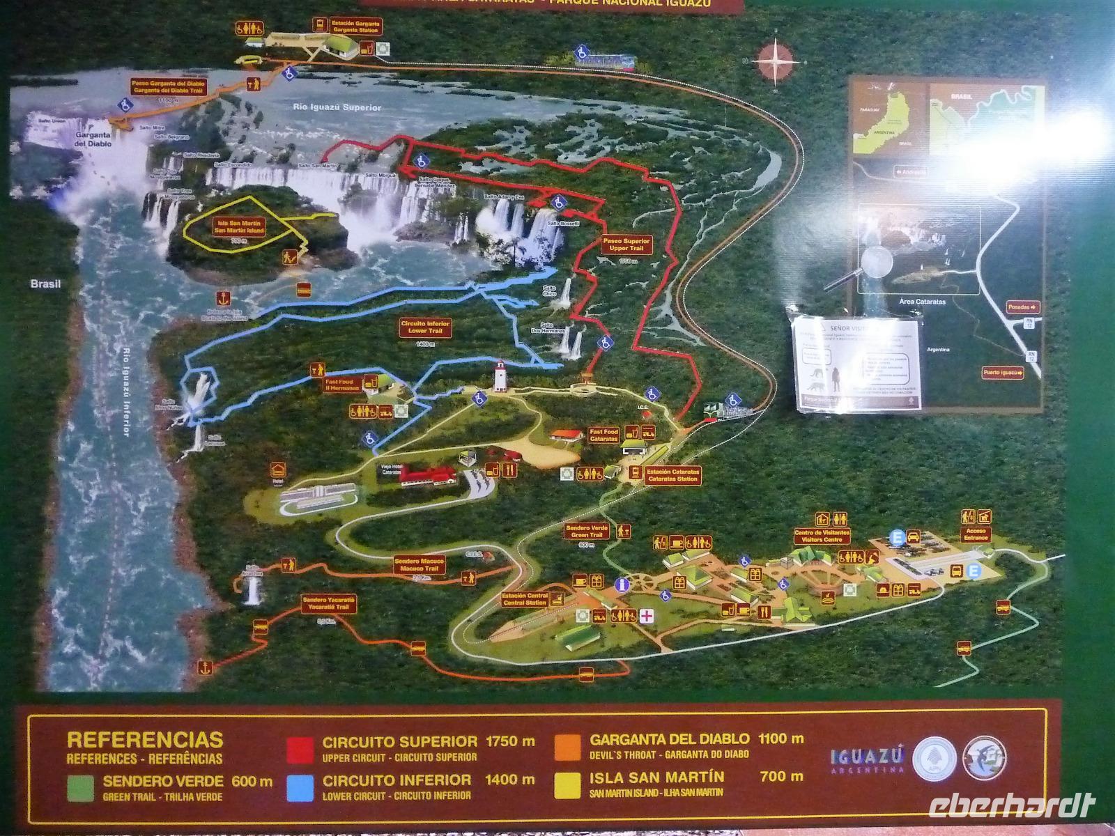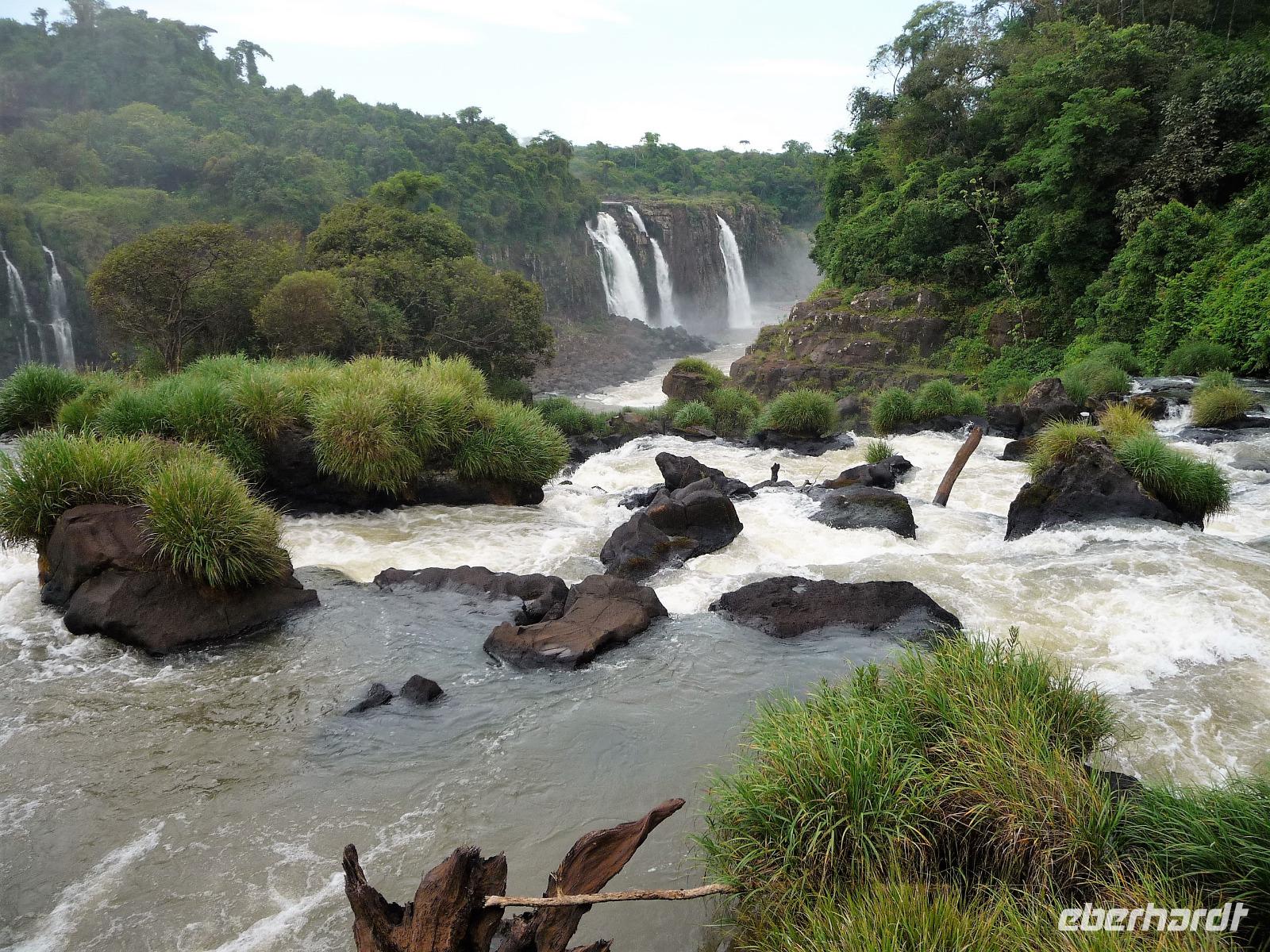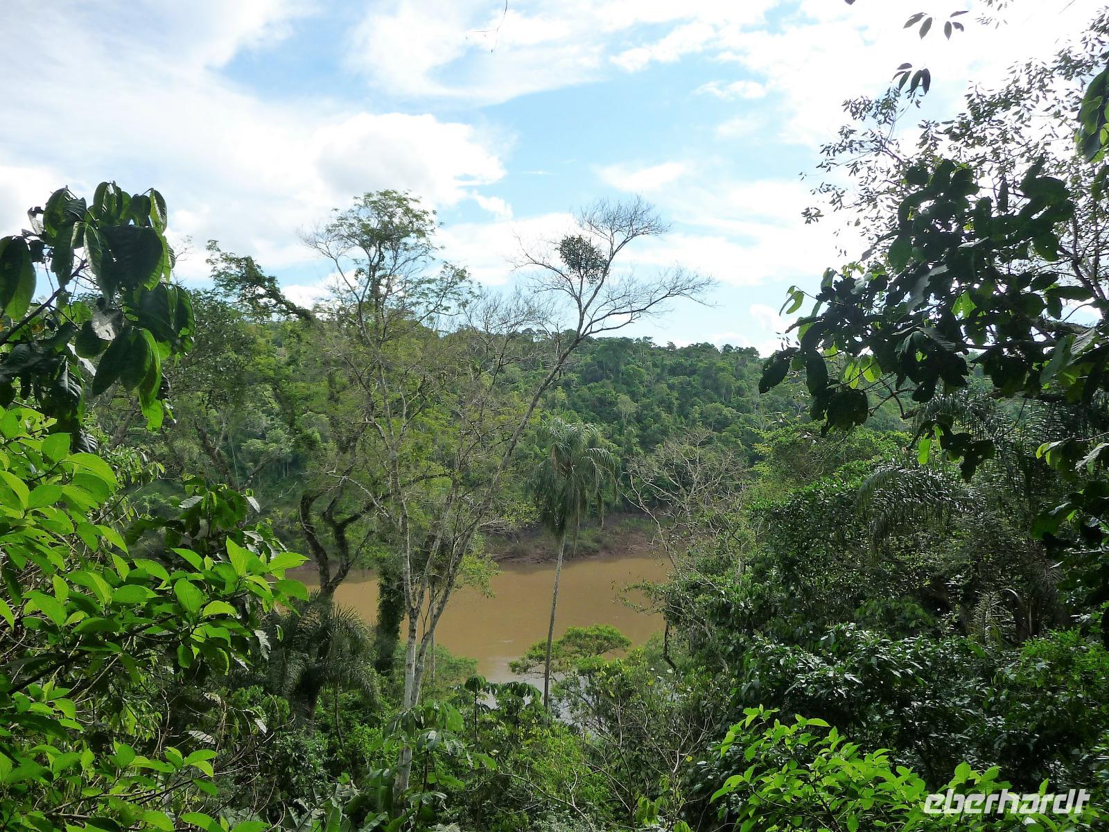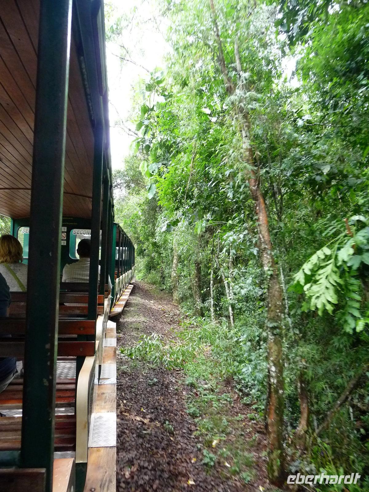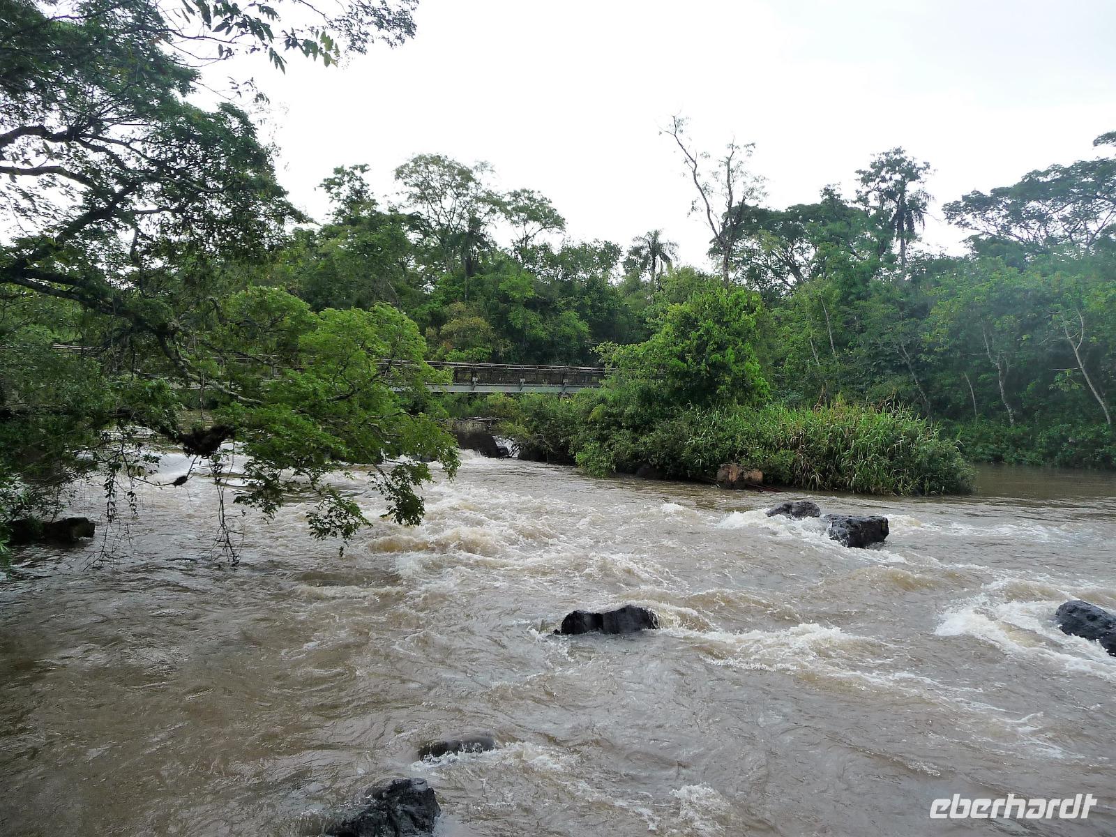 Da es am Vortag so heiß war, hatten wir unseren Ausflug auf die argentinische Seite der Wasserfälle vorverlegt und starteten bereits zeitig, um die Mittagshitze und die eventuellen Warteschlagen an der Grenze möglichst zu umgehen. Bereits in der Nacht gab es heftige Regenfälle und Hitzegewitter und der Regen sollte uns auch noch einen Teil des Tages begleiten. Aber wir waren gespannt, welche der Seite - die brasilianische oder die argentinische Seite - denn nun die schönere sein sollte. Unproblematisch konnten wir ohne viel Wartezeit die Grenze überqueren und waren schon einige Minuten vor der Öffnung des Parks am Eingang. Immer wieder bekräftigten wir unsere Zuversicht, dass es bestimmt ganz bald mit dem Regen aufhören würde. Man muss einfach nur Geduld haben! Mit dem kleinen Bummelzug fuhren wir bis zur Endstation und machten uns auf den Weg zum "Garganta del Diablo", dem "Teufelsschlund". Welch ein Tosen hörten wir bereits von der Ferne. Noch konnten wir uns nicht vorstellen, vor welchen Wassermassen wir gleich stehen würden. Immer näher kam das Donnern des Wassers und dann eröffnete sich ein gigantischer Ausblick. Durch den vielen Regen in den letzten Stunden, war der Iguazufluss schnell angeschwollen und entsprechend hoch war die Wassermenge, die sich über die Fälle ergoß. Fasziniert rückte man immer näher an die Absperrungen und vergaß regelrecht, dass man - wenn es denn möglich war - durch die Gischt noch nasser wurde. Aber egal, ein gigantisches Erlebnis, dass man so schnell nicht wieder haben sollte. Ein ganz anderes Erlebnis war dann der Rundweg. Hier sahen wir die Iguazu-Fälle nochmal in ganz anderen Perspektiven und endlich lichteten sich auch die dunklen Wolken und die ersten Sonnenstrahlen des Tages durchbrachen den Regen. Gleich machte es doppelt so viel Freude, die immer neuen Aussichtspunkte zu genießen. Wir waren uns einig: der richtige und passende Abschluss unserer Reise! Am Nachmittag plünderten wir nochmal das Büffet des kleinen Restaurants vom Vortag, kauften ein paar letzte Souvenirs, spazierten nochmal den kleinen Rundweg des Hotels bis zum Aussichtspunkt und trafen uns nochmal am Pool. Gemütlich ging der Tag nach dem Abendessen bei einem letzten Drink in der Bar des Hotels zu Ende.