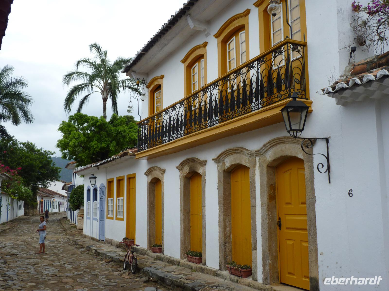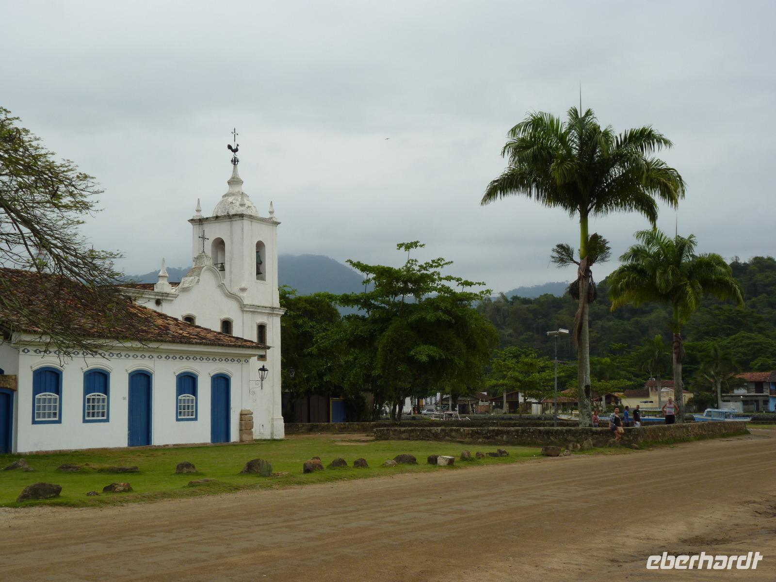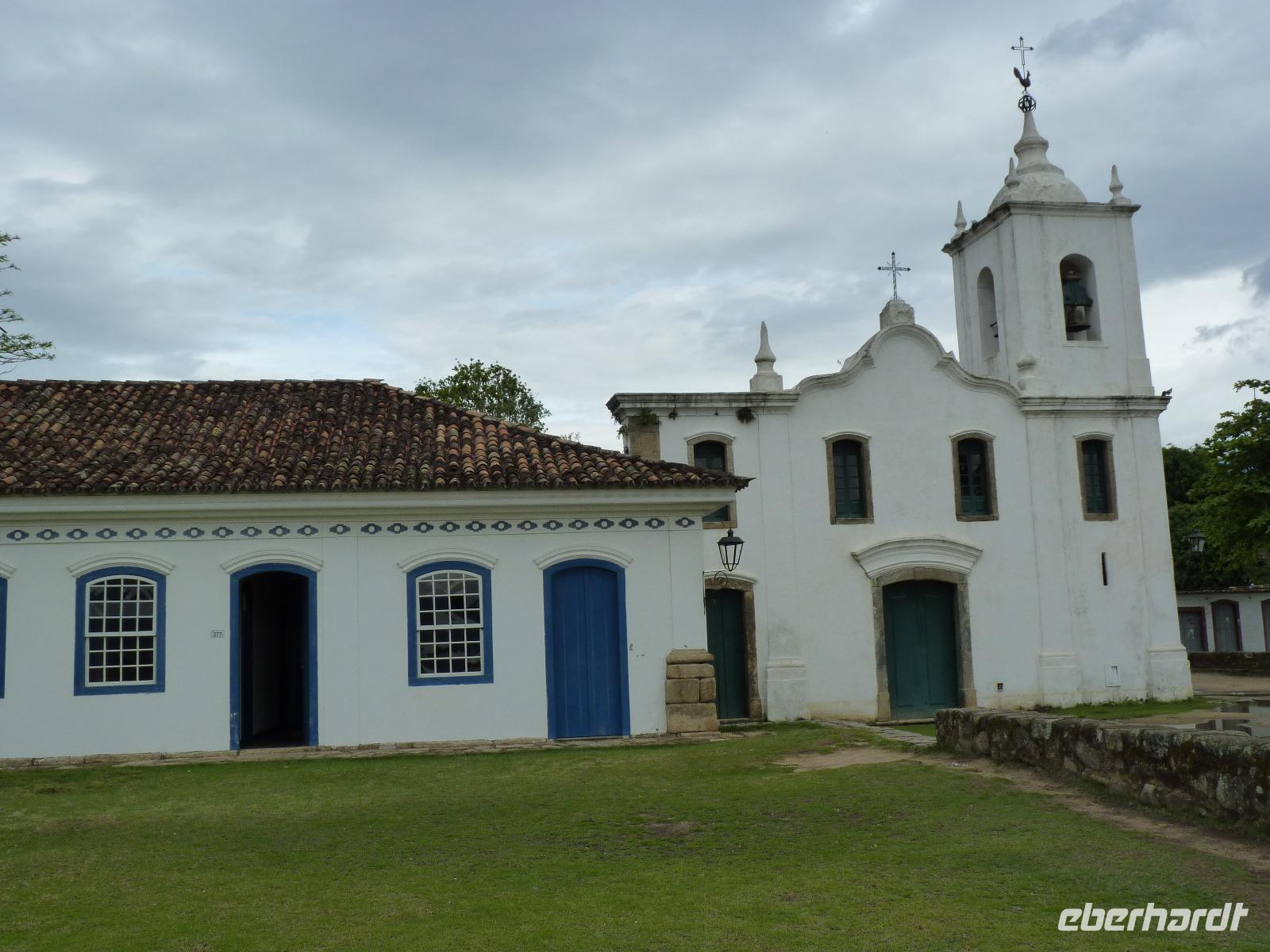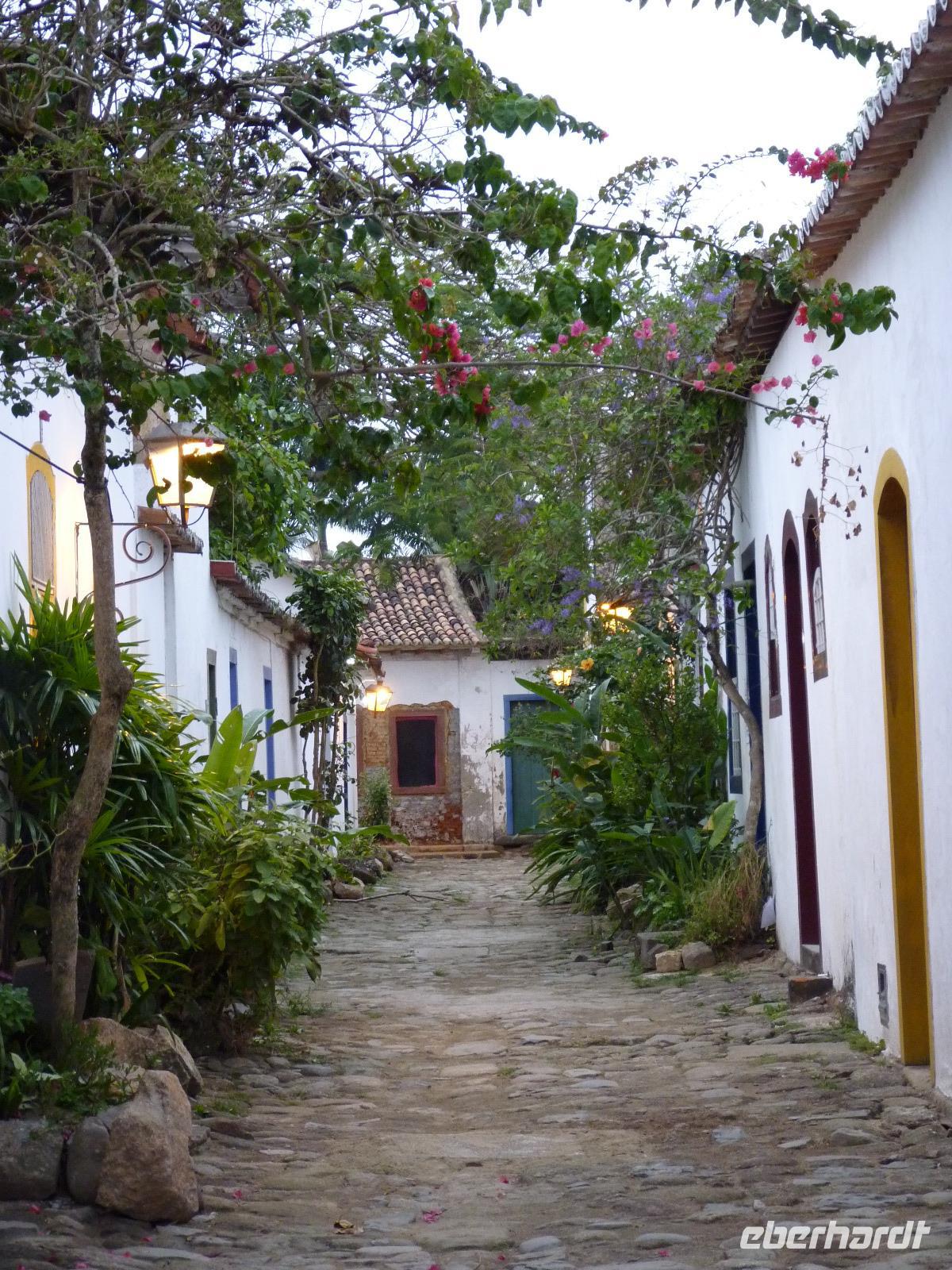 Fast auf die Minute pünktlich landete unser Flugzeug kurz vor 7:00 Uhr Ortszeit auf dem Antonio Carlos Jobim Flughafen in Rio de Janeiro. Innerhalb einer Stunde hatten wir dann alles hinter uns, Auschecken, Einreisekontrolle und Kofferempfang, so dass uns Natalina, unsere örtliche Reiseleiterin für die Tage in Paraty und Rio, in Empfang nehmen konnte. Kurz darauf stiegen wir in unseren Kleinbus und los ging es nach Paraty, unserem ersten Reiseziel. Während der knapp 4-stündigen Busfahrt, einem großen Teil davon immer an der schönen Küste entlang, machte uns Natalina mit ihrem Land bekannt. So erfuhren wir bereits viel über die Einwohner Rios und die „berüchtigten" Favelas, über die Geschichte des Landes, die Wirtschaft und natürlich über Paraty, welches durch die Goldfunde Mitte des 18. Jahrhunderts einen wesentlichen Aufschwung nahm, dann aber fast wieder in Vergessenheit geriet und erst in den letzten Jahrzehnten als touristisches Kleinod wieder entdeckt und die Altstadt komplett unter Schutz gestellt wurde. Durch diese Altstadt führte uns dann Ramon am Nachmittag im Rahmen eines Stadtrundganges und erklärte uns die Geschichte der Stadt und der wesentlichen Bauwerke des Ortes. Für den Namen des Ortes gibt es zwei Erklärungen. Zum Einen stammt Paraty vom portugiesischen Para ty und heißt „Für Dich". Zum Anderen kommt der Name vom Wort Piraty und den gaben die Indianer einem kleinen Fisch in der Region und so soll auch der Ort bis zur Entdeckung des Ortes durch die Portugiesen im 16. Jahrhundert geheißen haben. Zum Abschluss des Rundganges lud uns Ramon noch zu einer kleinen Verkostung des Zuckerrohrschnapses ein, der auch in Paraty hergestellt wird und für dessen ausgezeichnete Qualität der Ort sehr bekannt ist. Nach unserem Abendessen im Restaurant Paraty 33, begleitet von Gewitter, Regen und Livemusik, machte sich bei Allen dann doch der wenige Schlaf der letzten beiden Tage und das schwül-warme Wetter bemerkbar und so waren wir froh, in unsere Betten der gemütlichen Pousada (Gasthaus) fallen zu können.