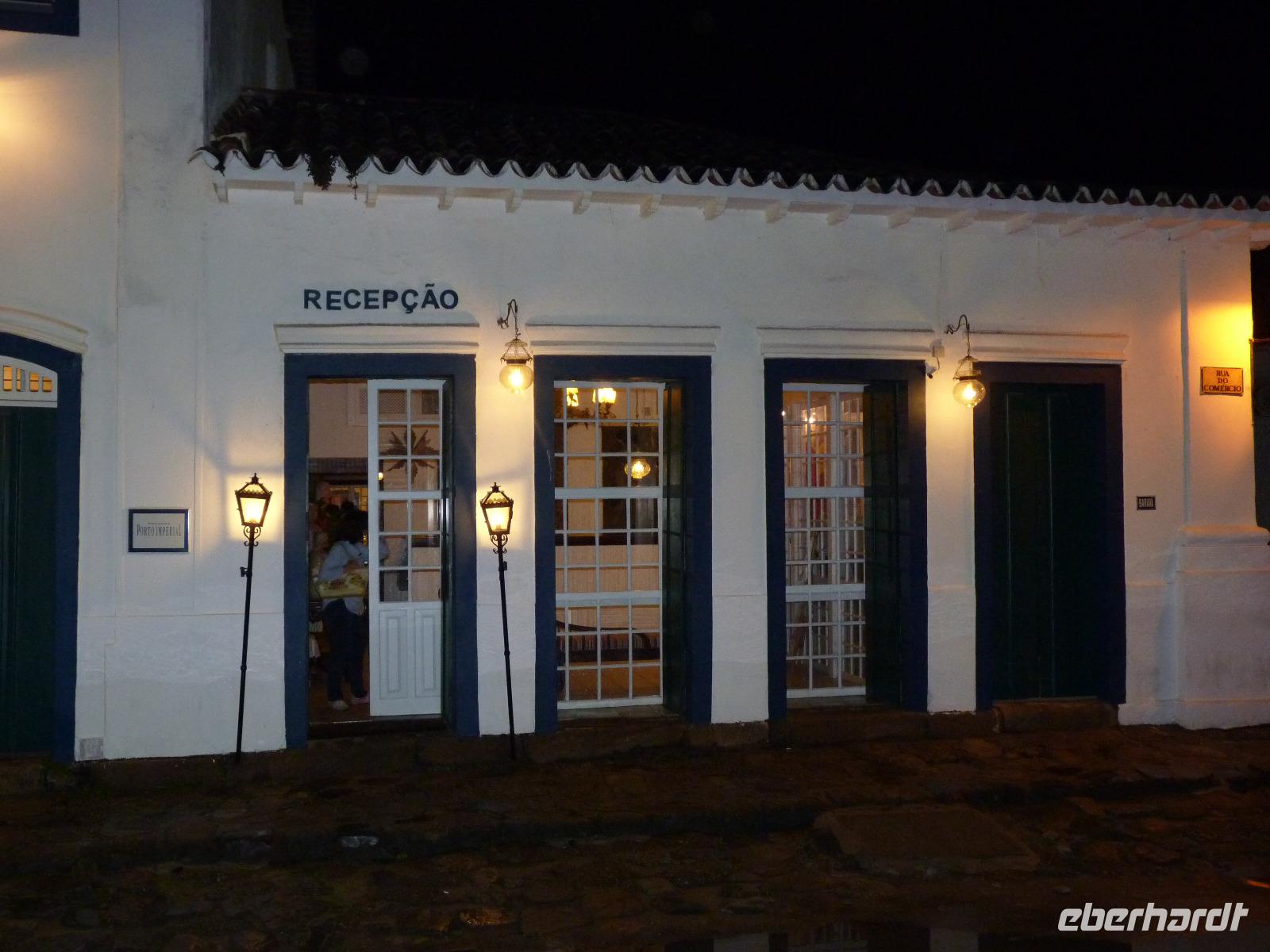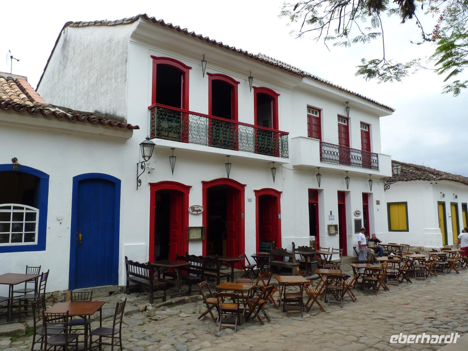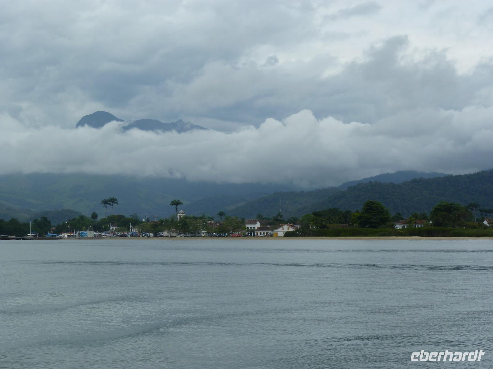Fast auf die Minute pünktlich landete unser Flugzeug kurz vor 7:00 Uhr Ortszeit auf dem Antonio Carlos Jobim Flughafen in Rio de Janeiro. Innerhalb einer Stunde hatten wir dann alles hinter uns, Auschecken, Einreisekontrolle und Kofferempfang, so dass uns Natalina, unsere örtliche Reiseleiterin für die Tage in Paraty und Rio, in Empfang nehmen konnte. Kurz darauf stiegen wir in unseren Kleinbus und los ging es nach Paraty, unserem ersten Reiseziel. Während der knapp 4-stündigen Busfahrt, einem großen Teil davon immer an der schönen Küste entlang, machte uns Natalina mit ihrem Land bekannt. So erfuhren wir bereits viel über die Einwohner Rios und die „berüchtigten" Favelas, über die Geschichte des Landes, die Wirtschaft und natürlich über Paraty, welches durch die Goldfunde Mitte des 18. Jahrhunderts einen wesentlichen Aufschwung nahm, dann aber fast wieder in Vergessenheit geriet und erst in den letzten Jahrzehnten als touristisches Kleinod wieder entdeckt und die Altstadt komplett unter Schutz gestellt wurde. Durch diese Altstadt führte uns dann Ramon am Nachmittag im Rahmen eines Stadtrundganges und erklärte uns die Geschichte der Stadt und der wesentlichen Bauwerke des Ortes. Für den Namen des Ortes gibt es zwei Erklärungen. Zum Einen stammt Paraty vom portugiesischen Para ty und heißt „Für Dich". Zum Anderen kommt der Name vom Wort Piraty und den gaben die Indianer einem kleinen Fisch in der Region und so soll auch der Ort bis zur Entdeckung des Ortes durch die Portugiesen im 16. Jahrhundert geheißen haben. Zum Abschluss des Rundganges lud uns Ramon noch zu einer kleinen Verkostung des Zuckerrohrschnapses ein, der auch in Paraty hergestellt wird und für dessen ausgezeichnete Qualität der Ort sehr bekannt ist. Nach unserem Abendessen im Restaurant Paraty 33, begleitet von Gewitter, Regen und Livemusik, machte sich bei Allen dann doch der wenige Schlaf der letzten beiden Tage und das schwül-warme Wetter bemerkbar und so waren wir froh, in unsere Betten der gemütlichen Pousada (Gasthaus) fallen zu können.