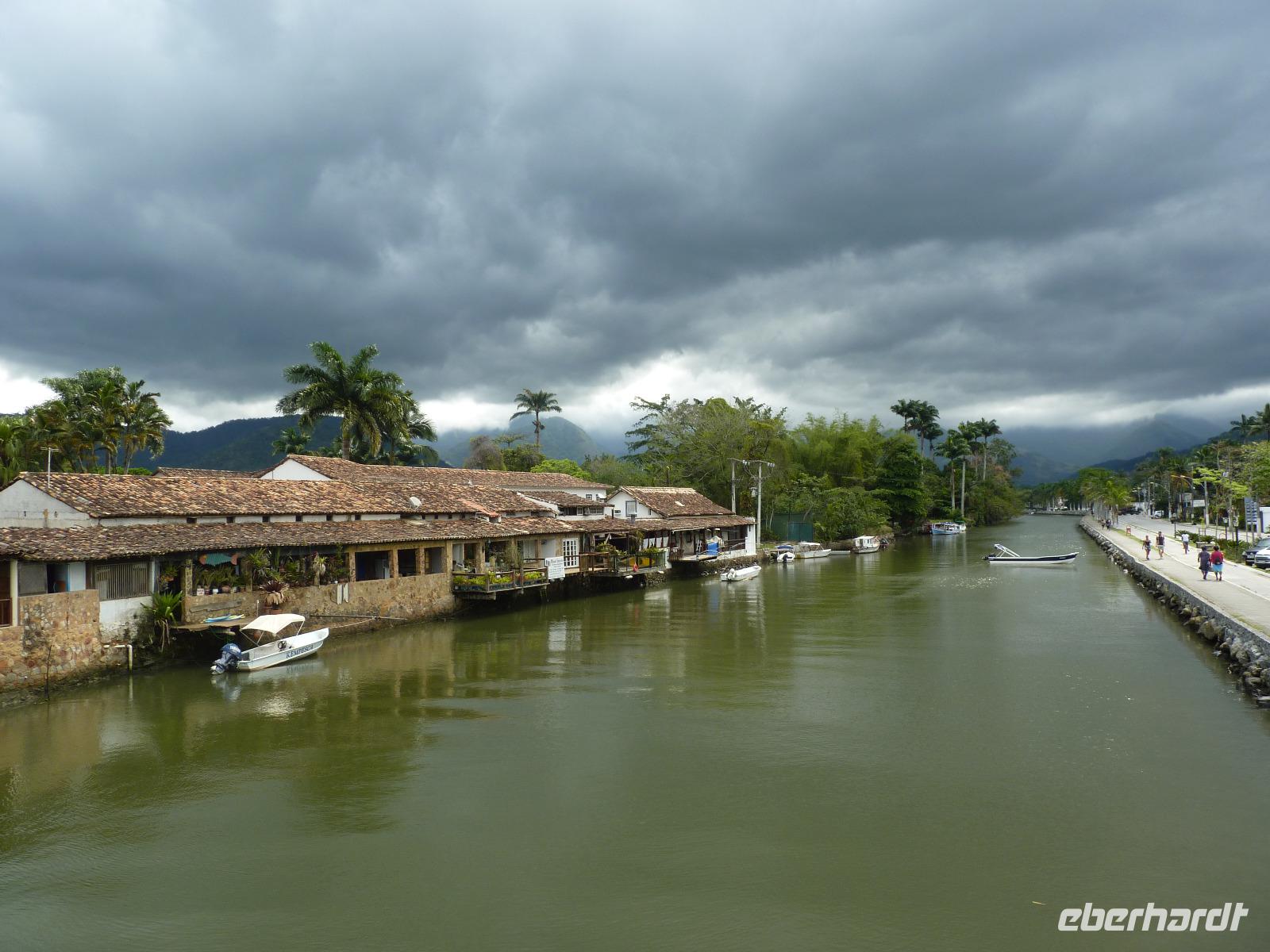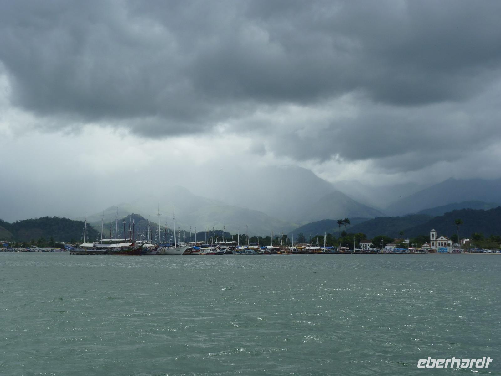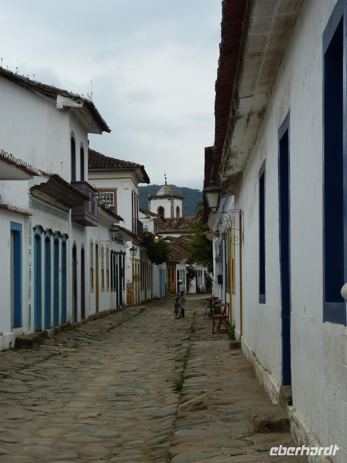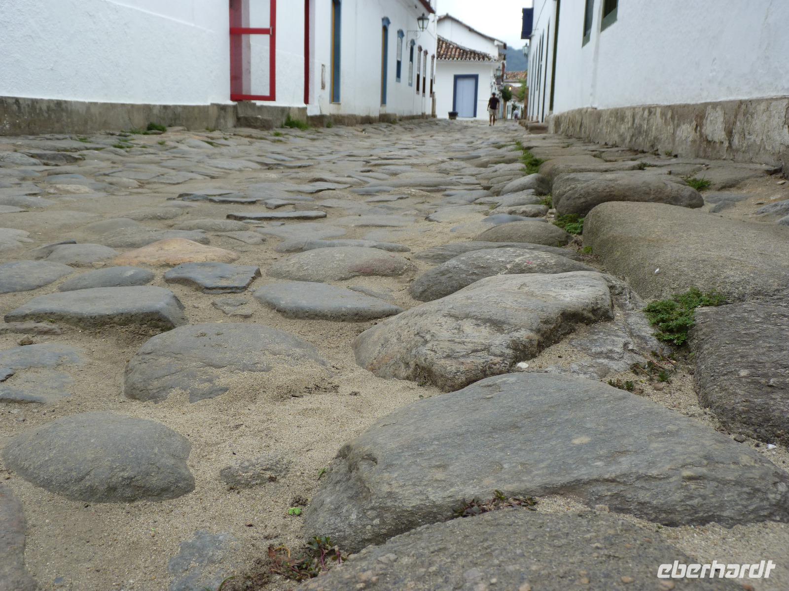 Fast auf die Minute pünktlich landete unser Flugzeug kurz vor 7:00 Uhr Ortszeit auf dem Antonio Carlos Jobim Flughafen in Rio de Janeiro. Innerhalb einer Stunde hatten wir dann alles hinter uns, Auschecken, Einreisekontrolle und Kofferempfang, so dass uns Natalina, unsere örtliche Reiseleiterin für die Tage in Paraty und Rio, in Empfang nehmen konnte. Kurz darauf stiegen wir in unseren Kleinbus und los ging es nach Paraty, unserem ersten Reiseziel. Während der knapp 4-stündigen Busfahrt, einem großen Teil davon immer an der schönen Küste entlang, machte uns Natalina mit ihrem Land bekannt. So erfuhren wir bereits viel über die Einwohner Rios und die „berüchtigten" Favelas, über die Geschichte des Landes, die Wirtschaft und natürlich über Paraty, welches durch die Goldfunde Mitte des 18. Jahrhunderts einen wesentlichen Aufschwung nahm, dann aber fast wieder in Vergessenheit geriet und erst in den letzten Jahrzehnten als touristisches Kleinod wieder entdeckt und die Altstadt komplett unter Schutz gestellt wurde. Durch diese Altstadt führte uns dann Ramon am Nachmittag im Rahmen eines Stadtrundganges und erklärte uns die Geschichte der Stadt und der wesentlichen Bauwerke des Ortes. Für den Namen des Ortes gibt es zwei Erklärungen. Zum Einen stammt Paraty vom portugiesischen Para ty und heißt „Für Dich". Zum Anderen kommt der Name vom Wort Piraty und den gaben die Indianer einem kleinen Fisch in der Region und so soll auch der Ort bis zur Entdeckung des Ortes durch die Portugiesen im 16. Jahrhundert geheißen haben. Zum Abschluss des Rundganges lud uns Ramon noch zu einer kleinen Verkostung des Zuckerrohrschnapses ein, der auch in Paraty hergestellt wird und für dessen ausgezeichnete Qualität der Ort sehr bekannt ist. Nach unserem Abendessen im Restaurant Paraty 33, begleitet von Gewitter, Regen und Livemusik, machte sich bei Allen dann doch der wenige Schlaf der letzten beiden Tage und das schwül-warme Wetter bemerkbar und so waren wir froh, in unsere Betten der gemütlichen Pousada (Gasthaus) fallen zu können.
