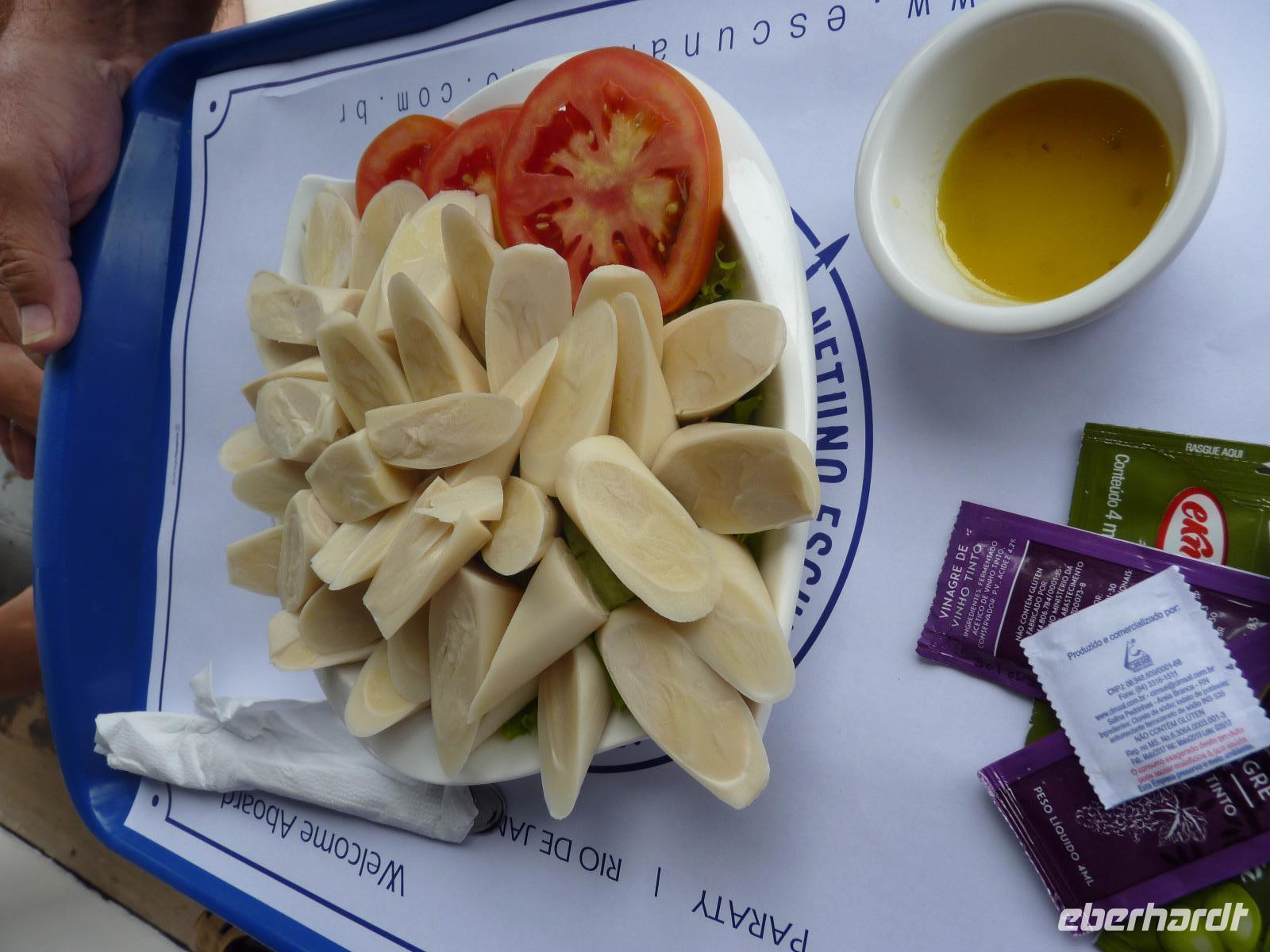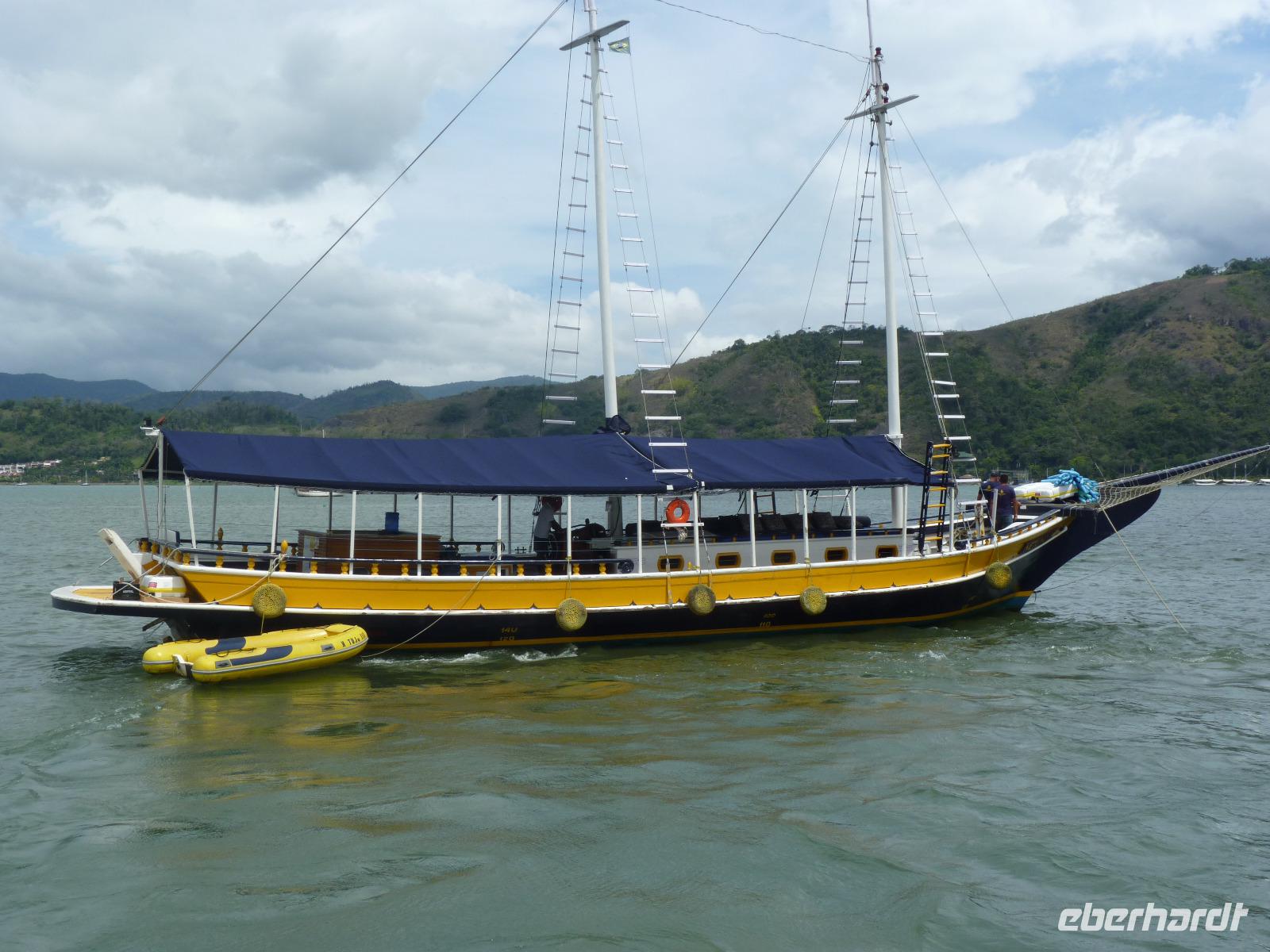 Heute stand die Entdeckung der Region vom Wasser aus auf dem Programm. Zuerst einmal konnten wir aber in aller Ruhe frühstücken, um dann nach einem kleinen Spaziergang zum Hafen auf unser Boot, der Neptuno IV zu steigen. Bei angenehmen Lufttemperaturen wagten dann bei der Insel Comprida viele Gäste den Sprung ins Wasser und hatten dabei die Möglichkeit, viele kleine bunte Fische zu beobachten. An der Lagoa Azul (blaue Lagune) hatten wir dann die Wahl, entweder ans feinsandige Ufer zu schwimmen, oder uns durch die Schiffscrew mit einem Paddelboot trocken an Land zu bringen. Die gleiche (Wahl)Möglichkeit gab es dann nach dem Mittagessen noch einmal an der Praia Vermelha, bevor es dann am Nachmittag wieder Richtung Paraty ging. Zurück im Hotel hatten dann unsere Gäste die Möglichkeit, am Pool zu entspannen, noch ein bisschen den Ort auf eigene Faust zu erkunden oder einfach nur zu entspannen. Um 18:00 Uhr trafen wir uns dann wieder zum ersten gemeinsamen Caipirinha, bevor es zu unserem Abendessen im Cafe Margarida ging. Auch hier erwartete uns wieder ein 3-Gang-Menü mit guter Gitarren-Livemusik.